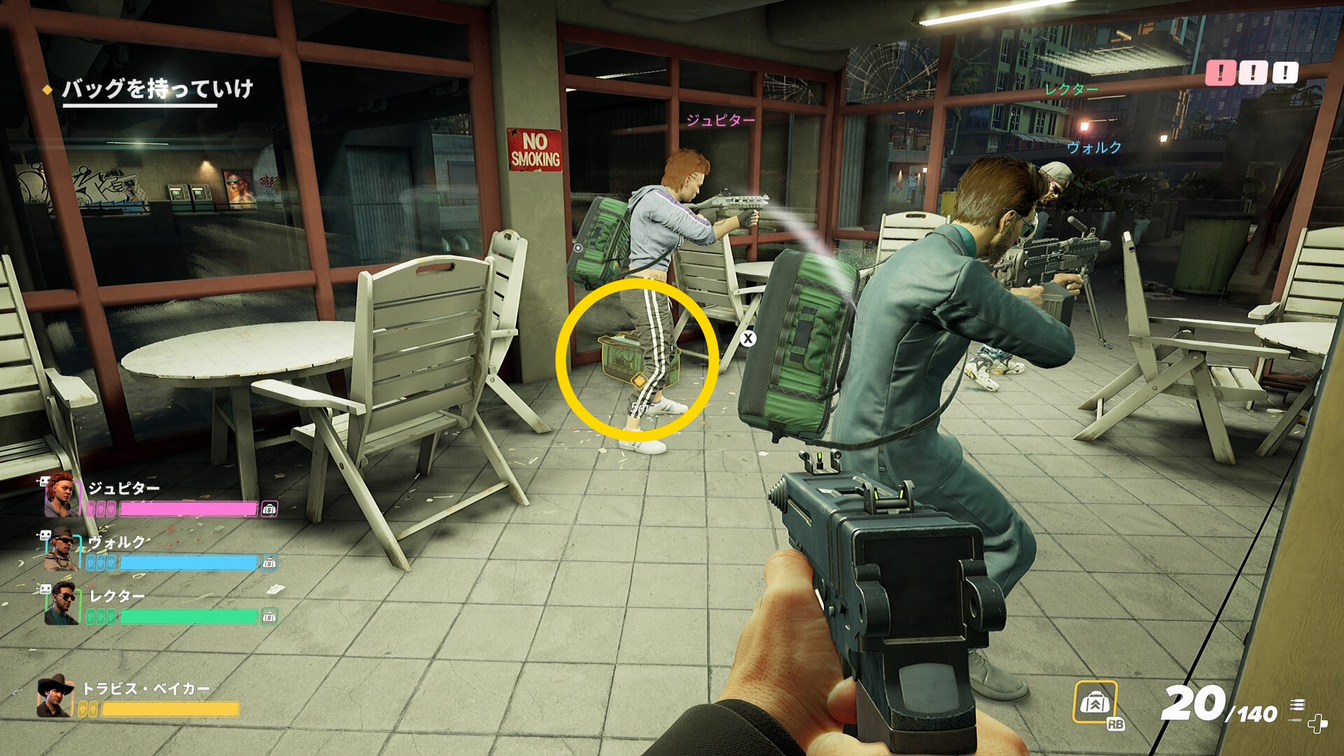 - 向かって右側の人間が持っていたバッグを回収
