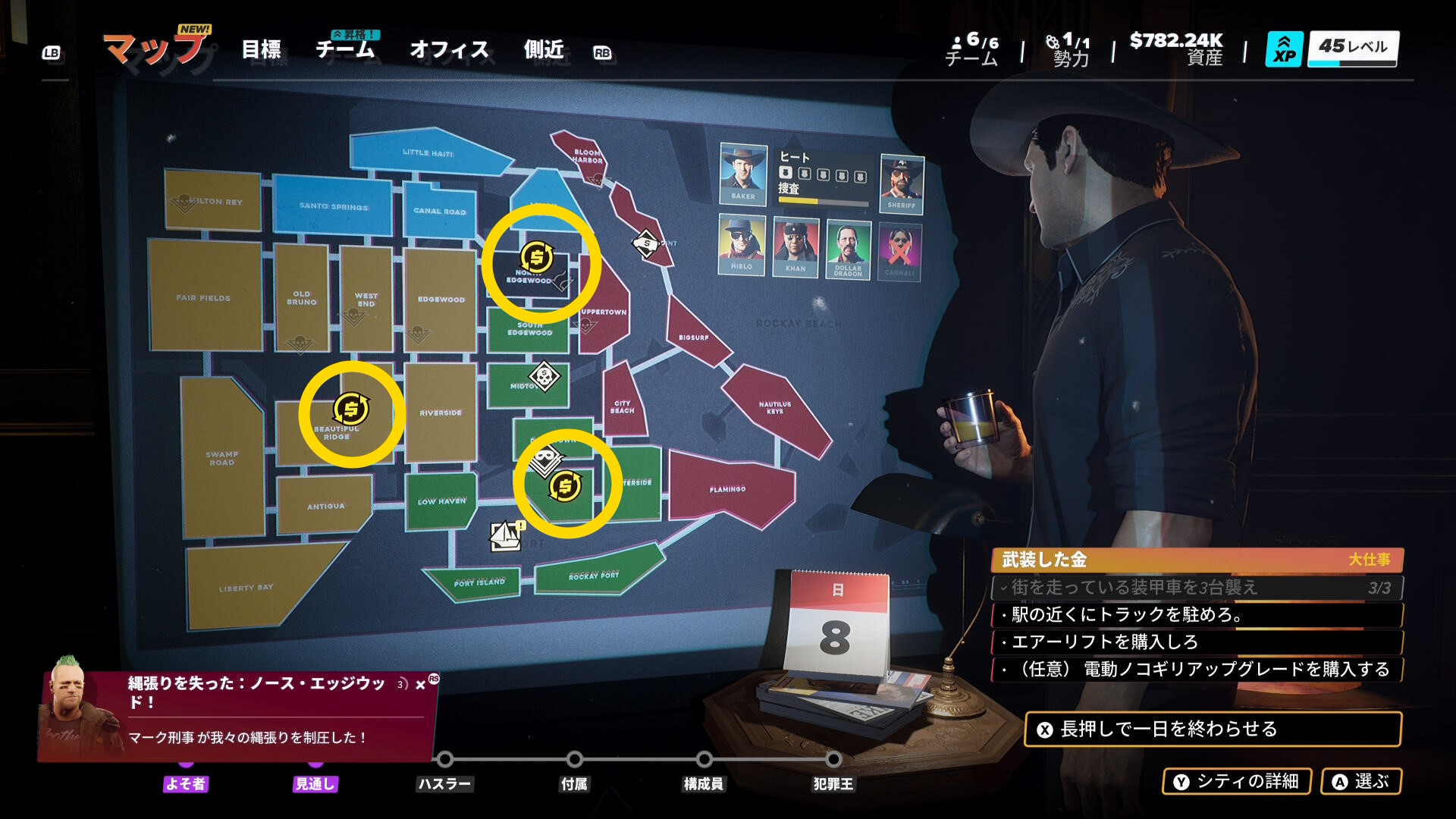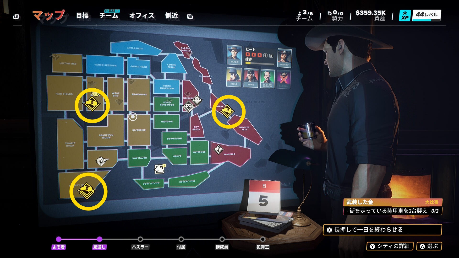 - カットシーン後、マップに ”現金輸送車アイコン” が3個出現する