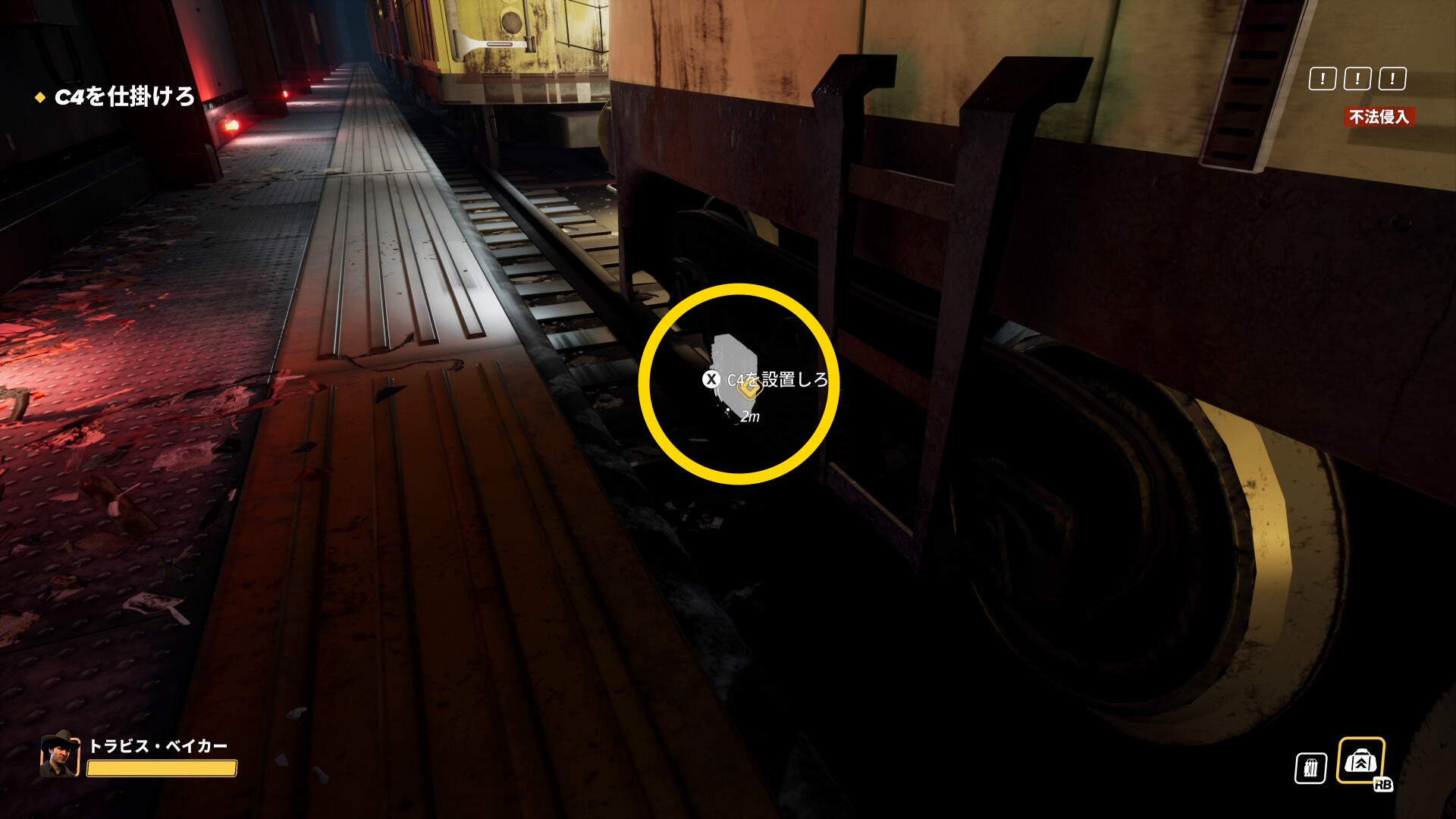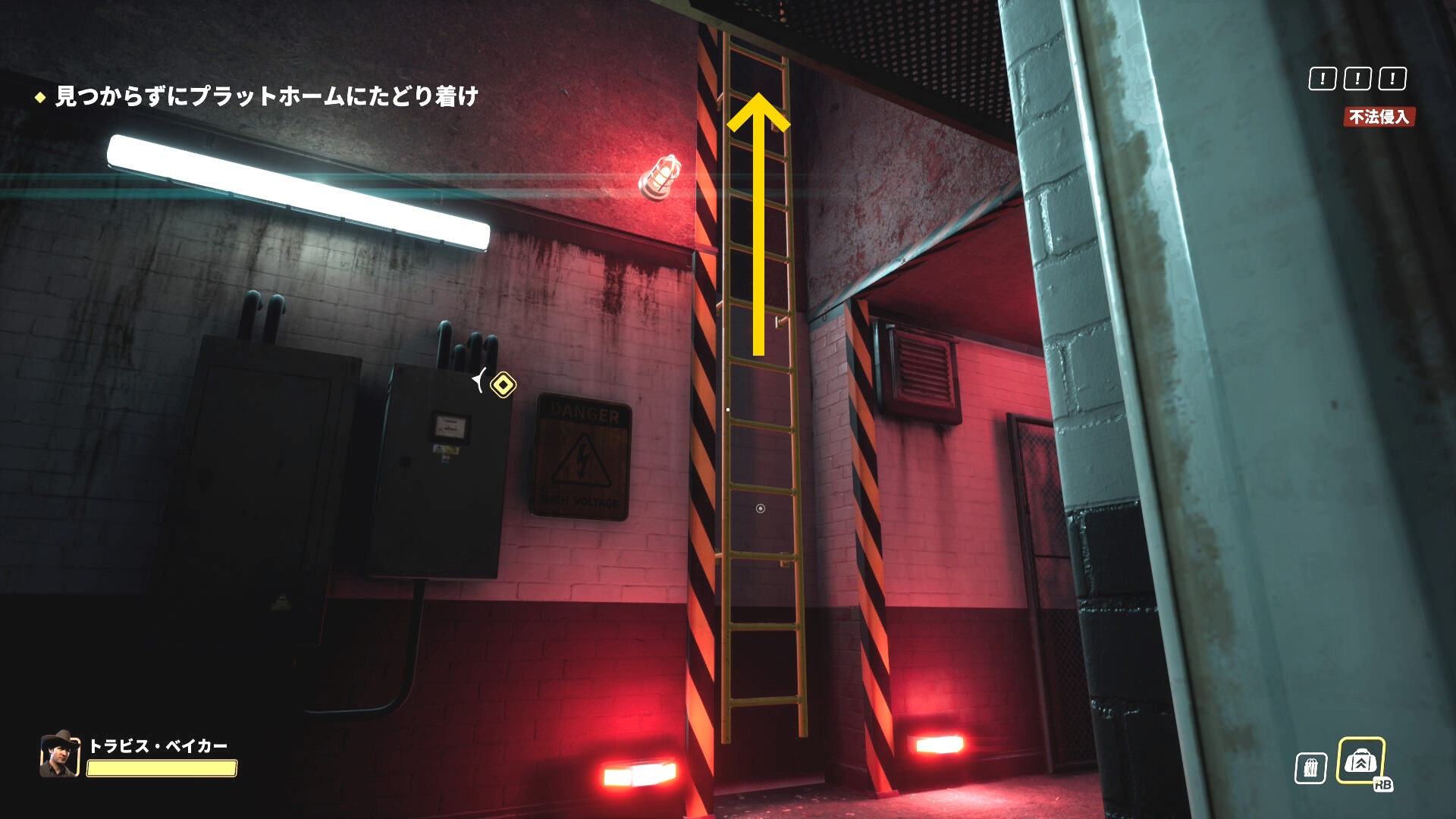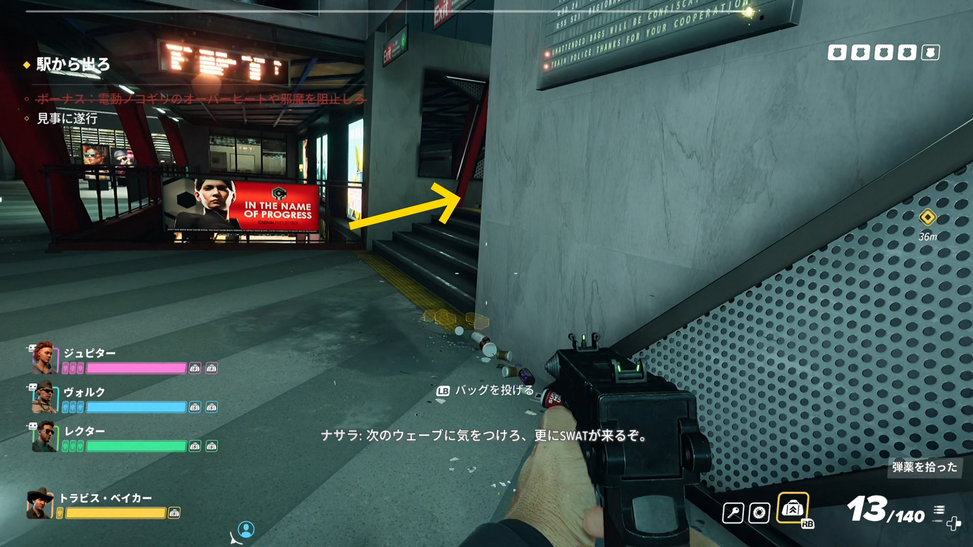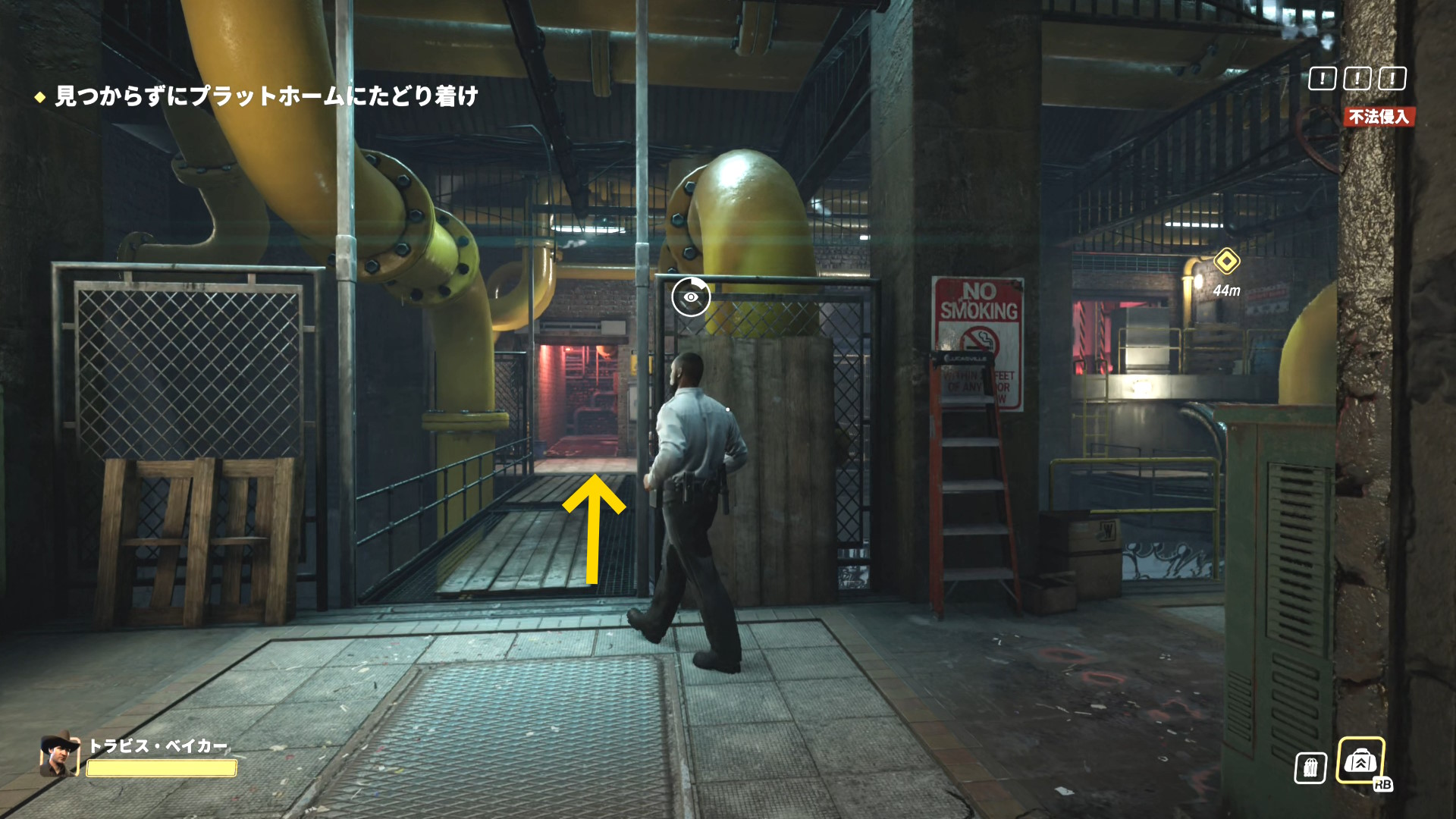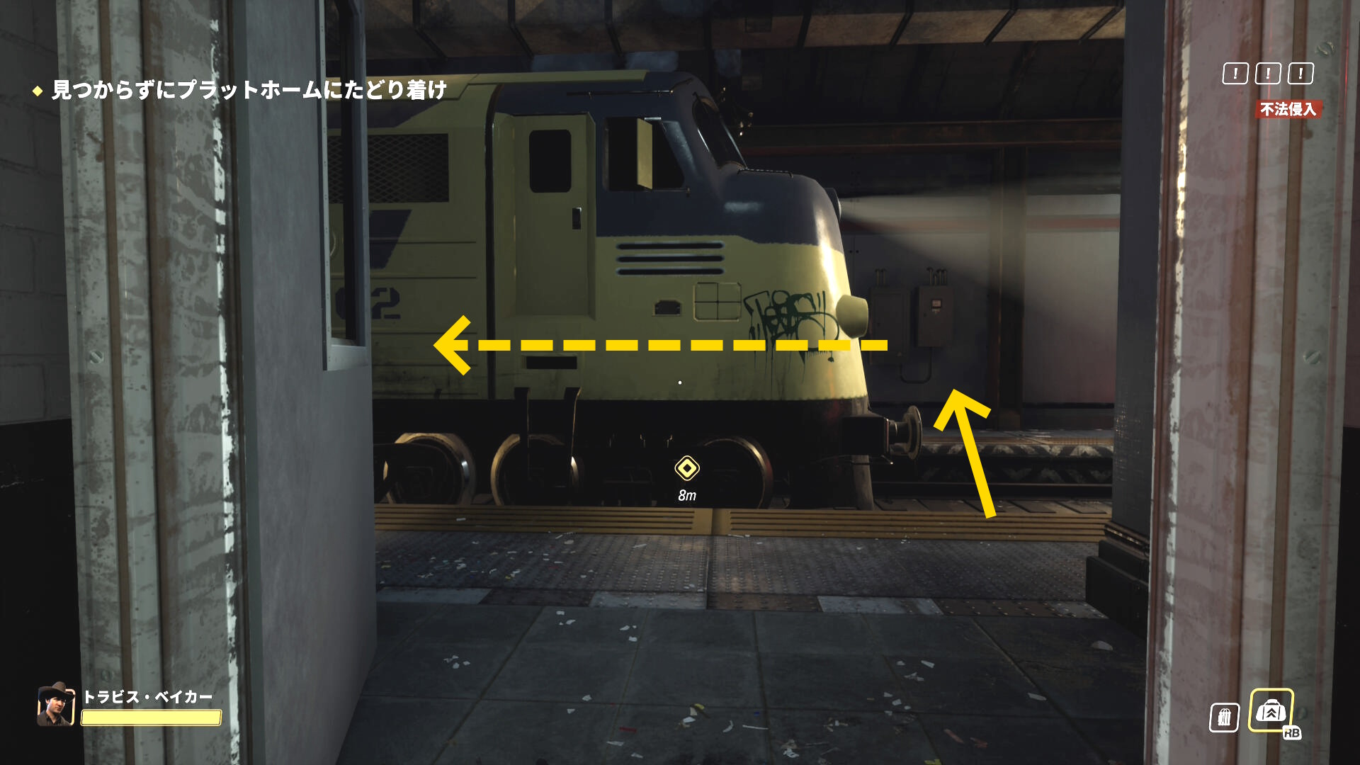 - 画面上部のバーが消え、スロープを登ってくる警察官などがいなくなったら、脱出地点への移動を開始する
