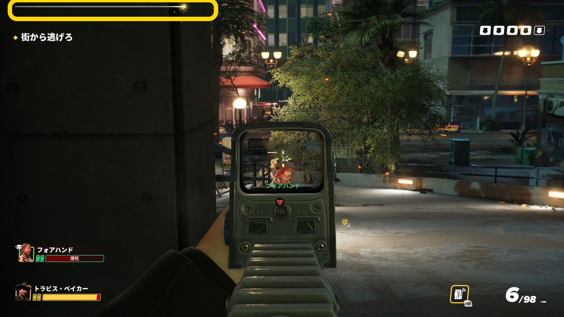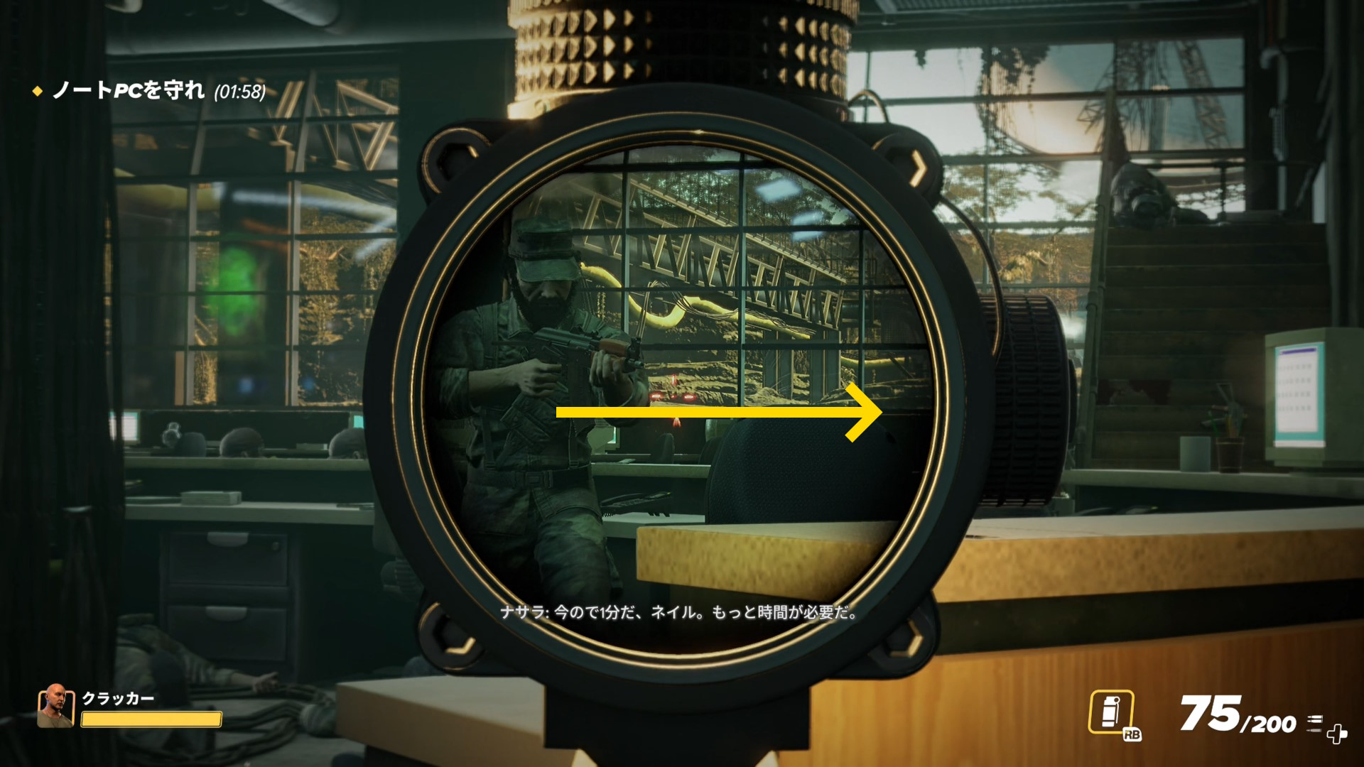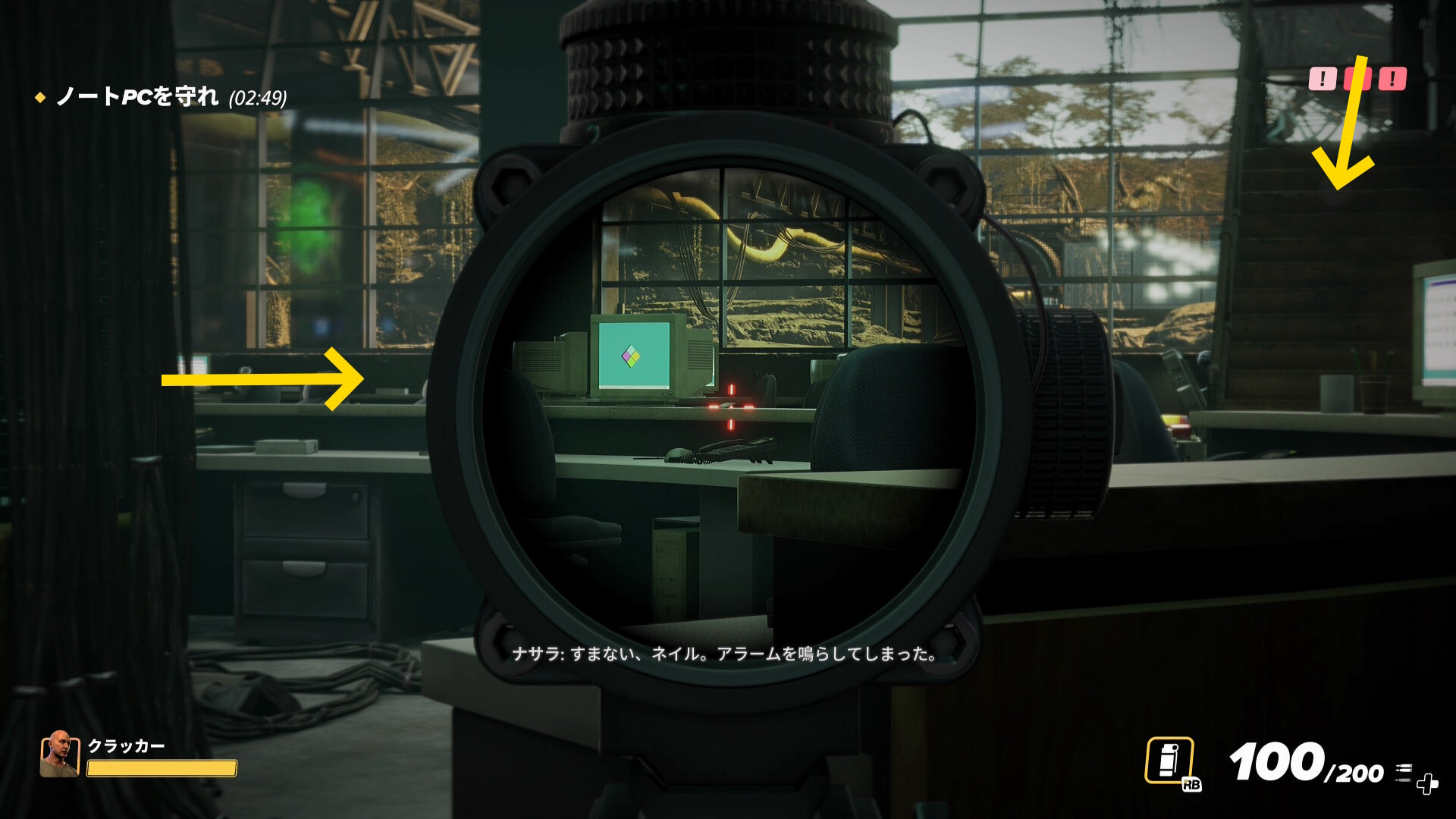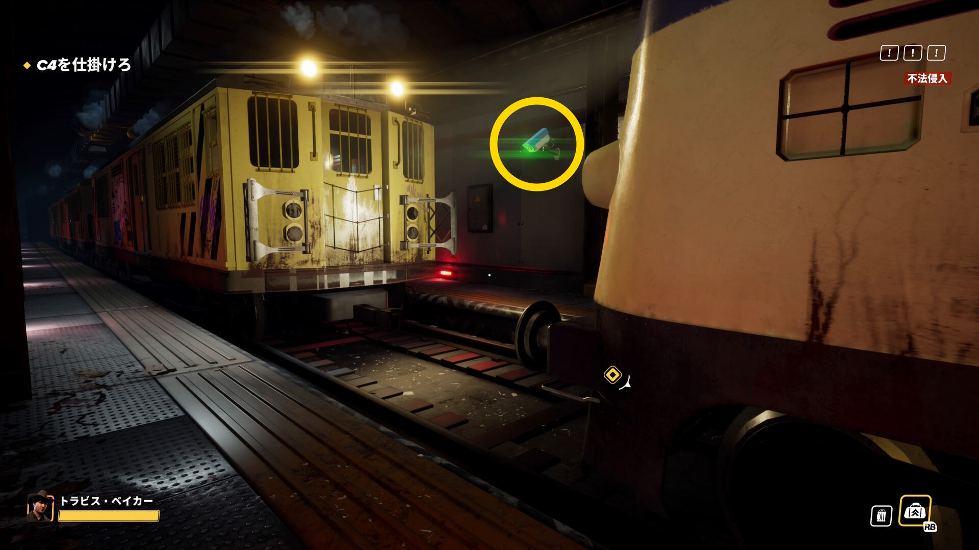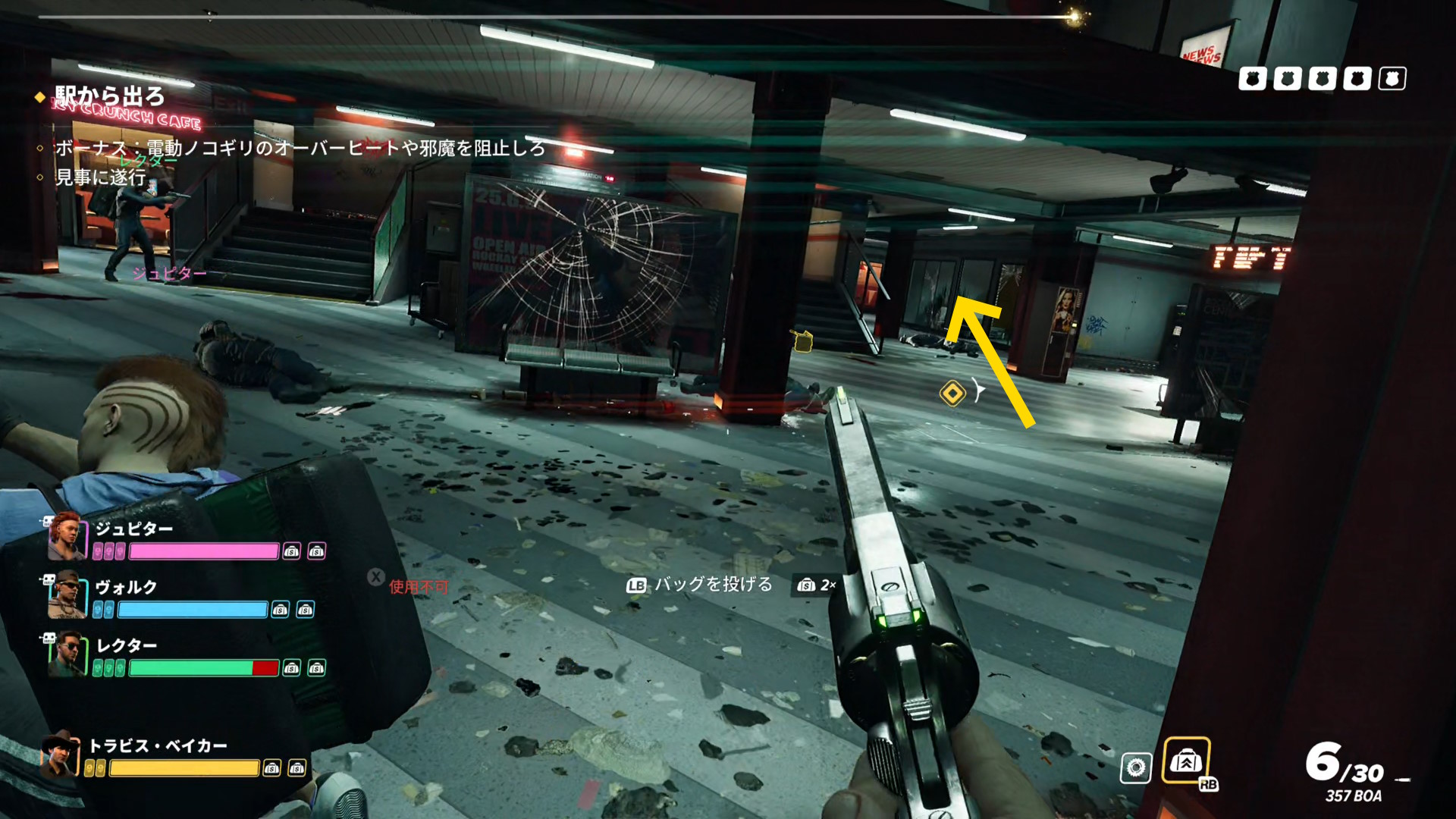 - 画面上部のバーが消え、スロープを登ってくる警察官などがいなくなったら、脱出地点への移動を開始する