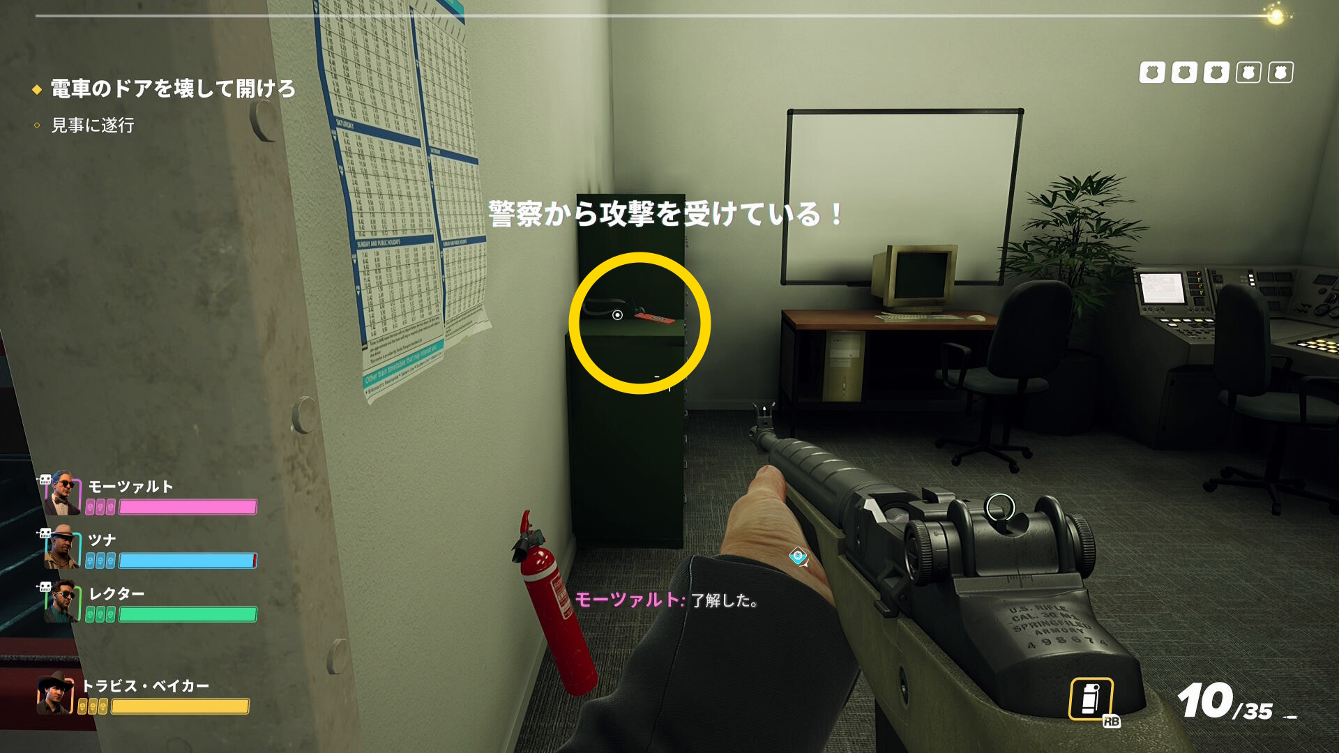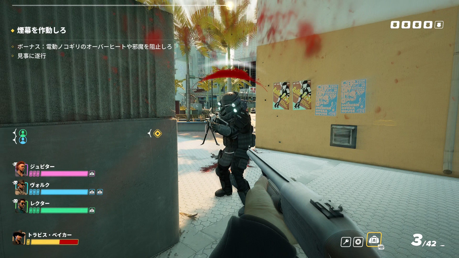- バーが消えると増援が来なくなるため、あとは開始時に配置された警察官らに注意しながらキルしていけばオーケー
