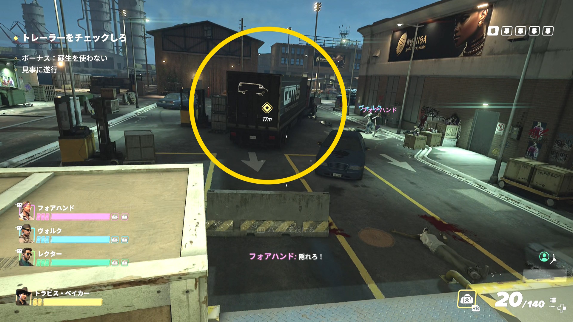 - トレーラーから出てきたボスらをキルしたら、荷台に乗り込む