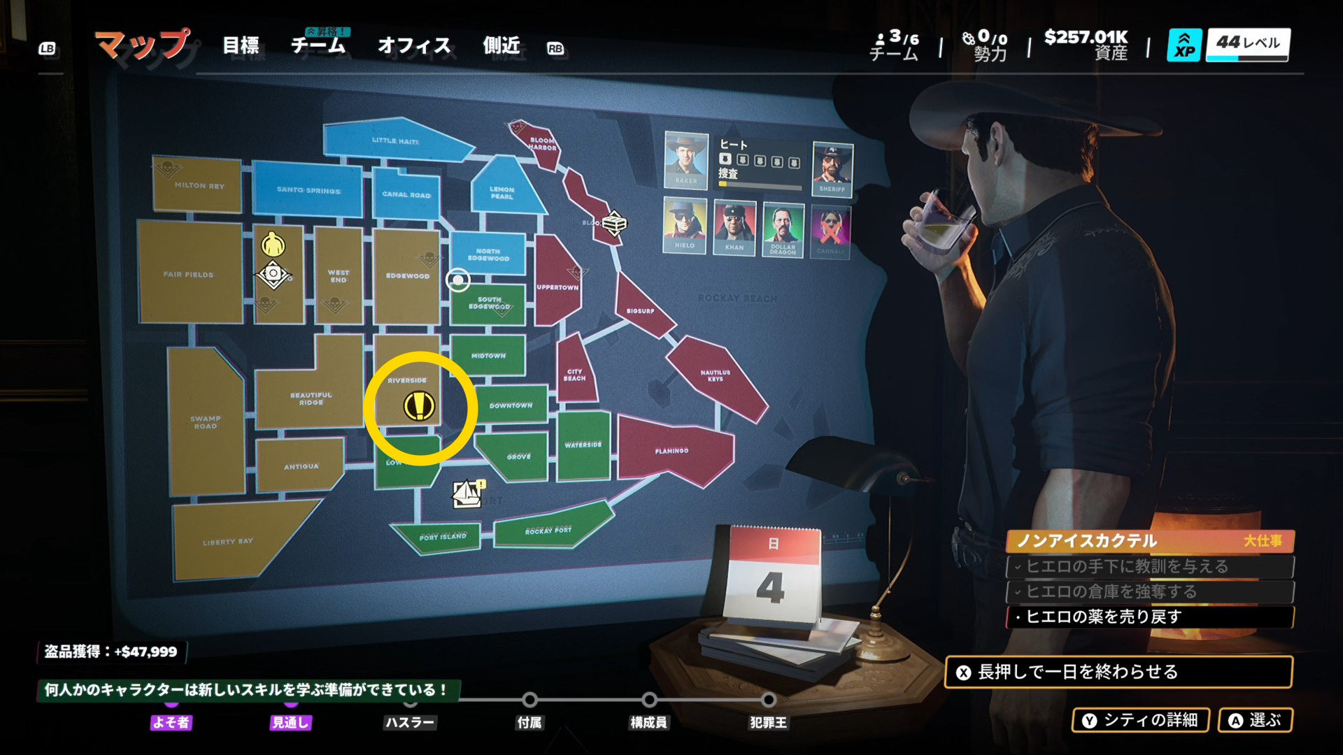 - マップに戻ったら、翌日にスキップ