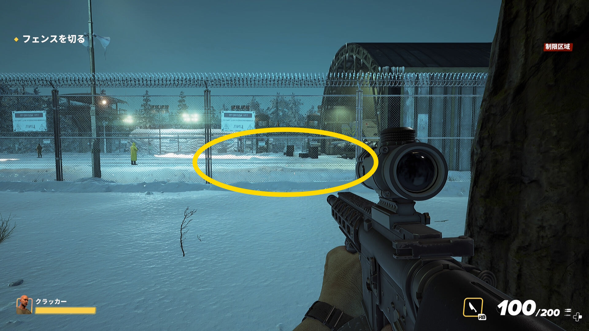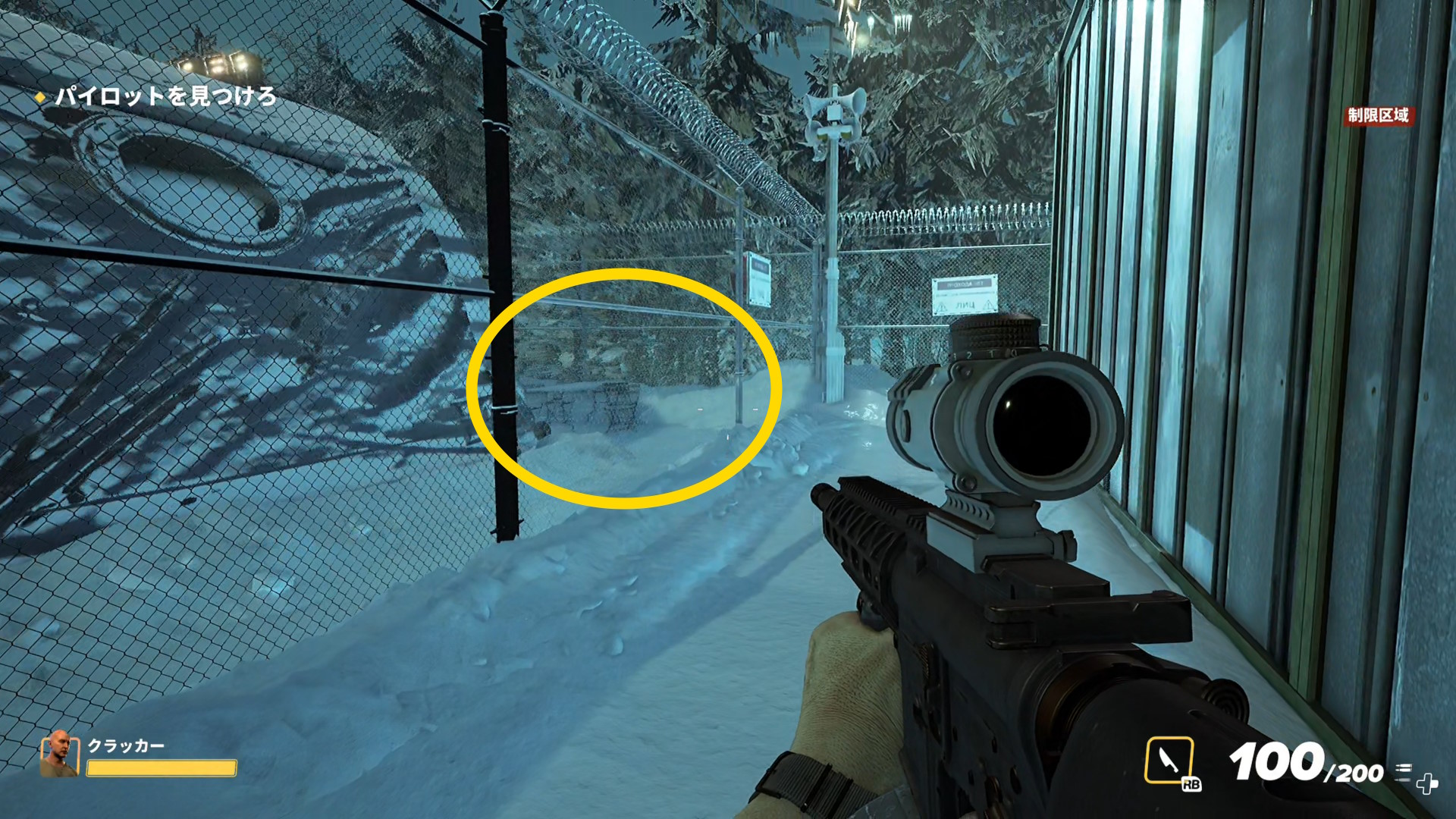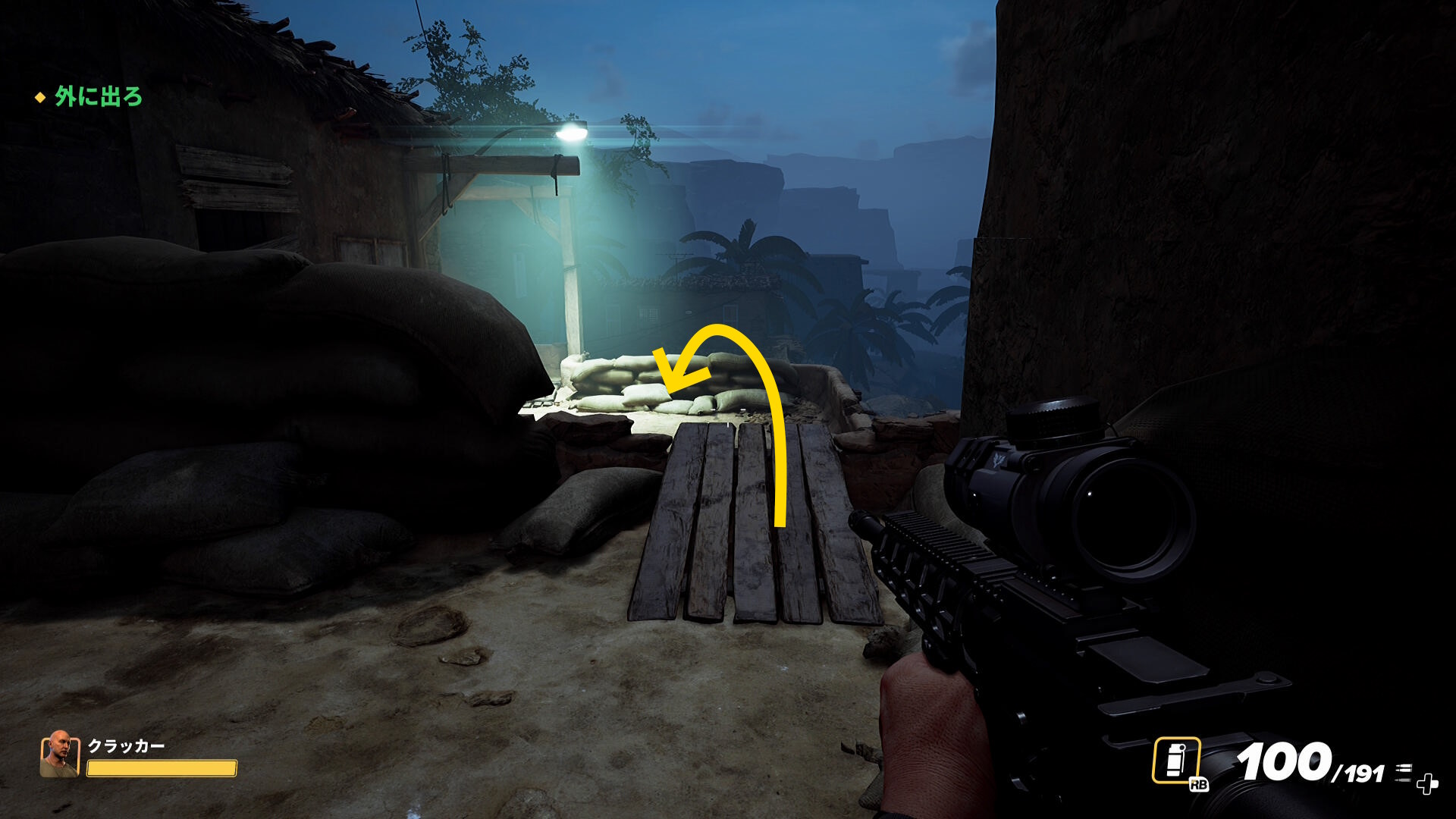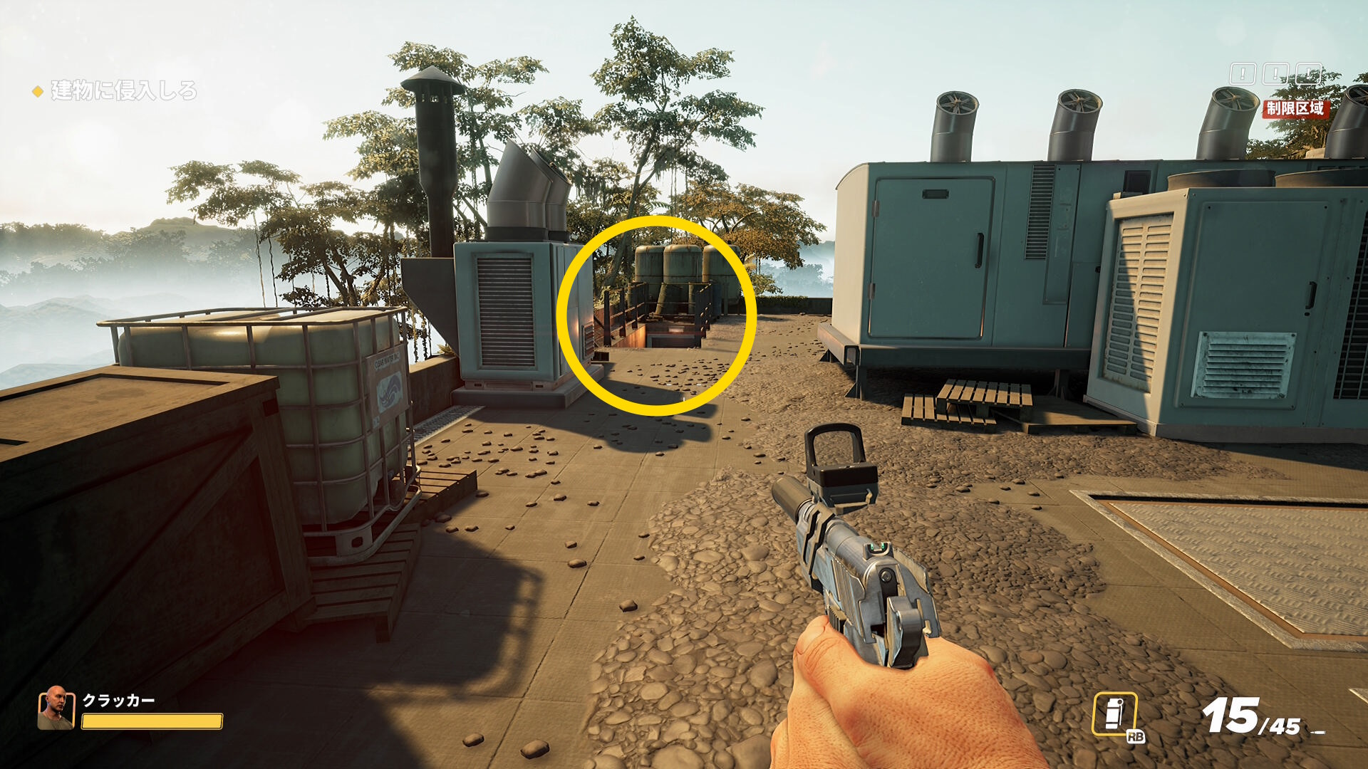 - 奥に進んでいくとフェンスの向こうの機銃から攻撃されるので注意