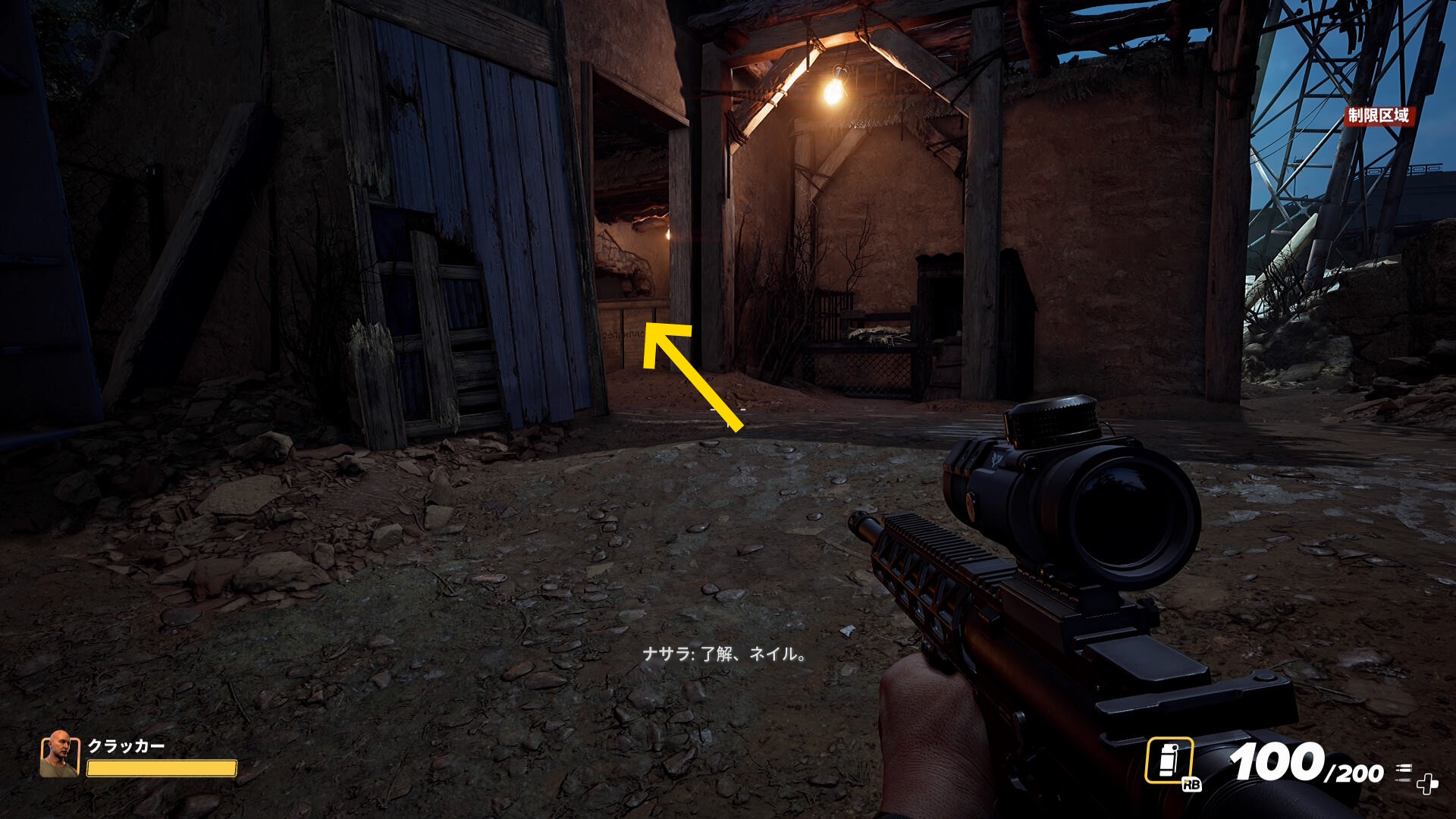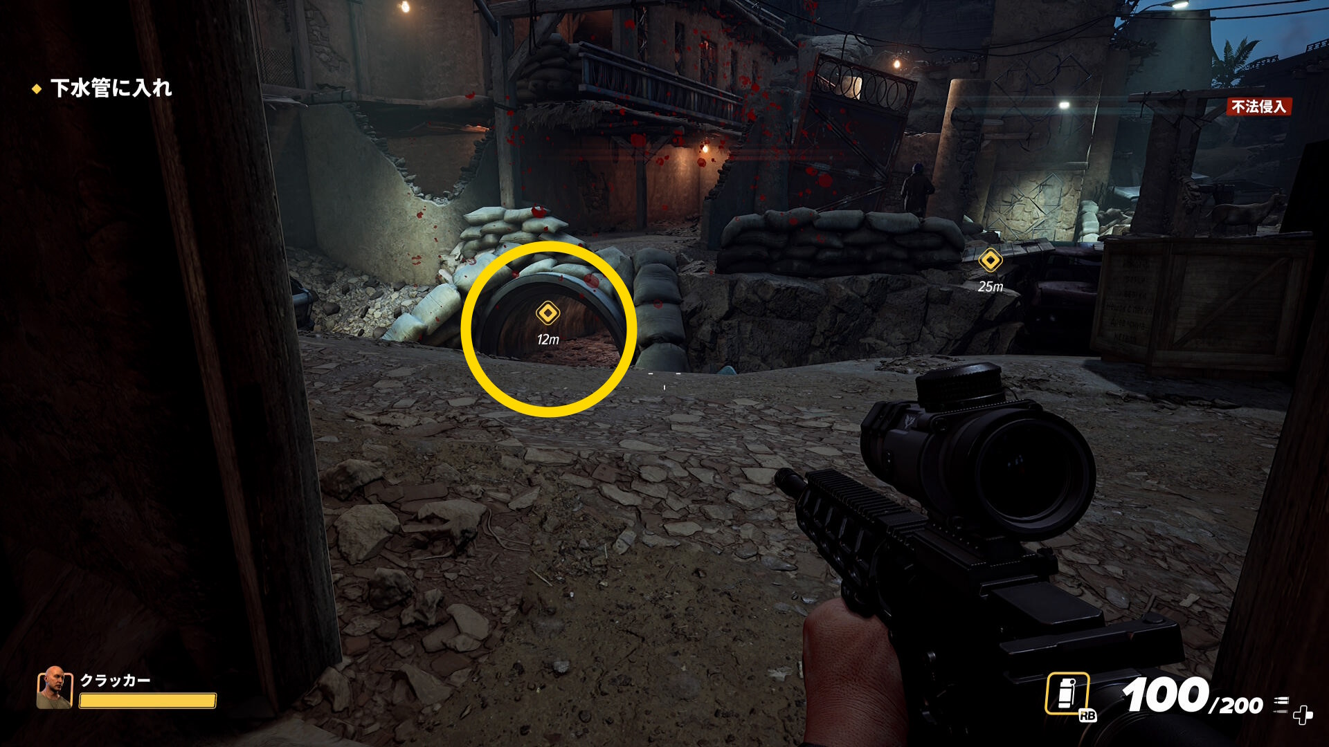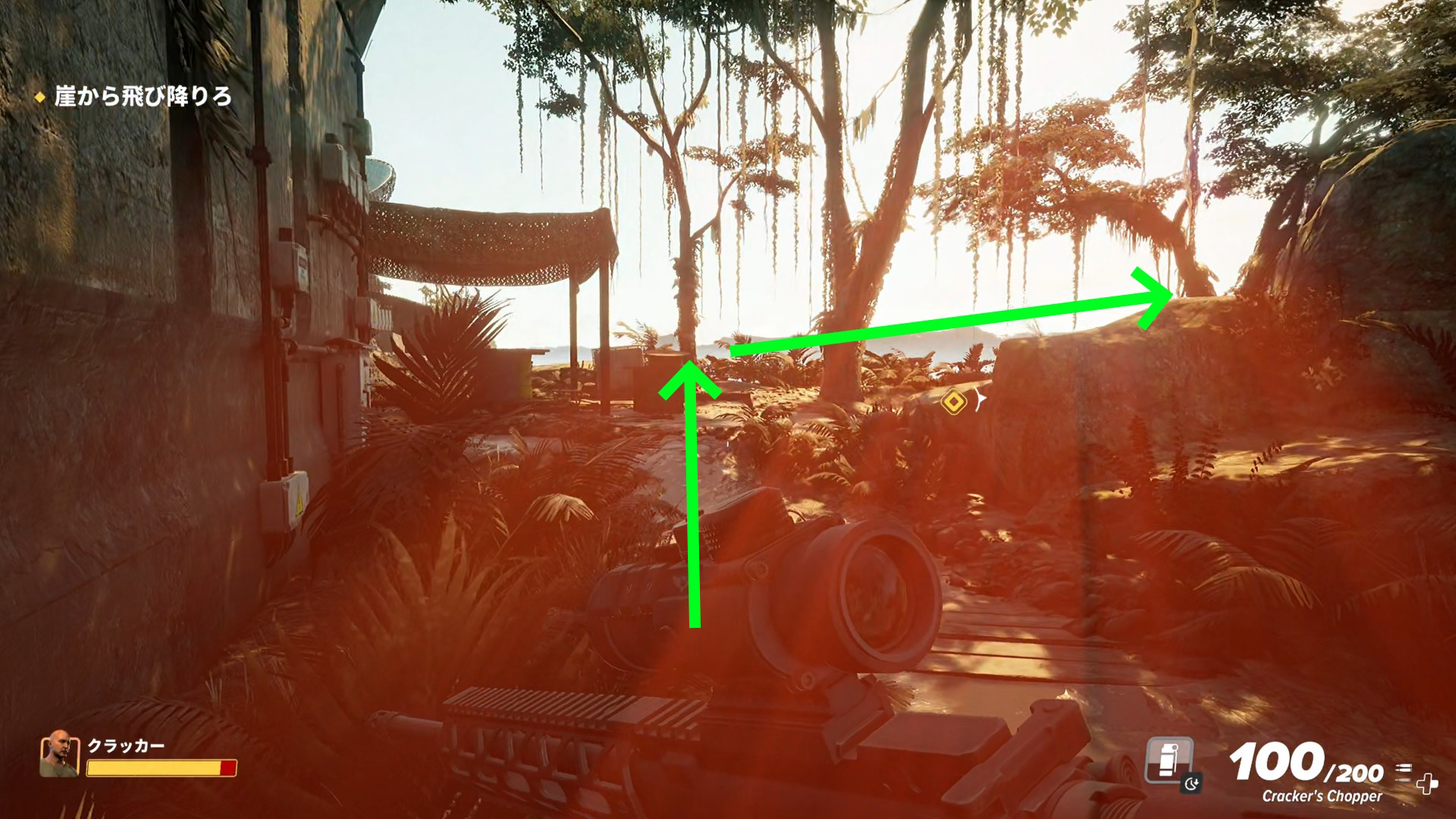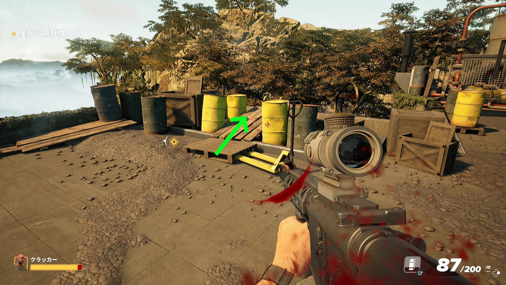 - 奥に進んでいくとフェンスの向こうの機銃から攻撃されるので注意