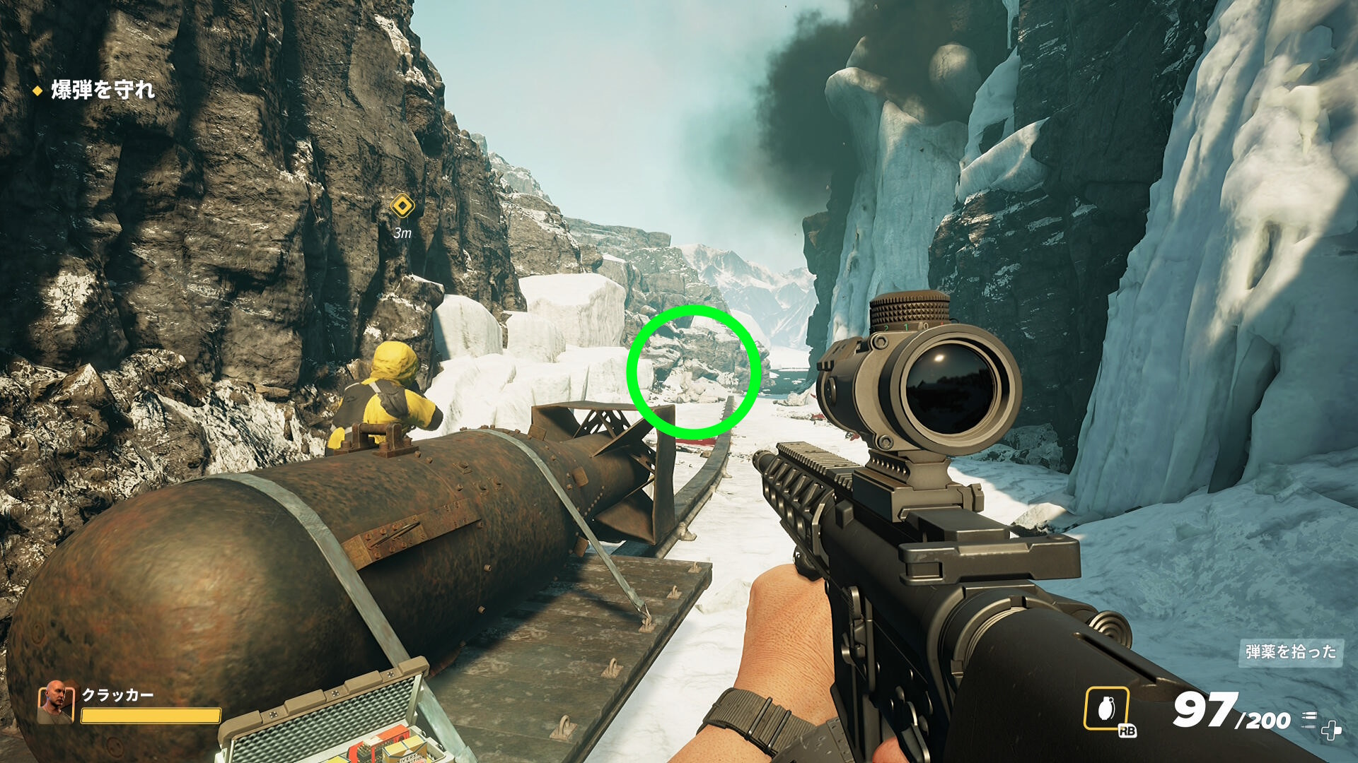 - 残り13メートルほどまで近づくとバンが爆発するので、ゆっくり近づく