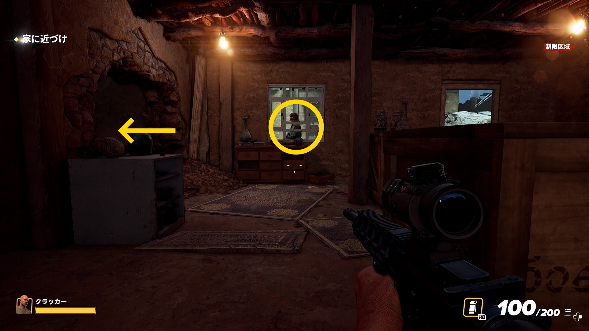 - 稀に2階の左側面から攻撃されることがあるが、頻度は高くないので落ち着いてキルすること(下画像)