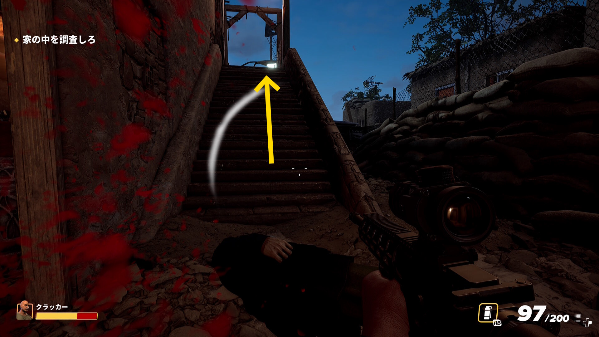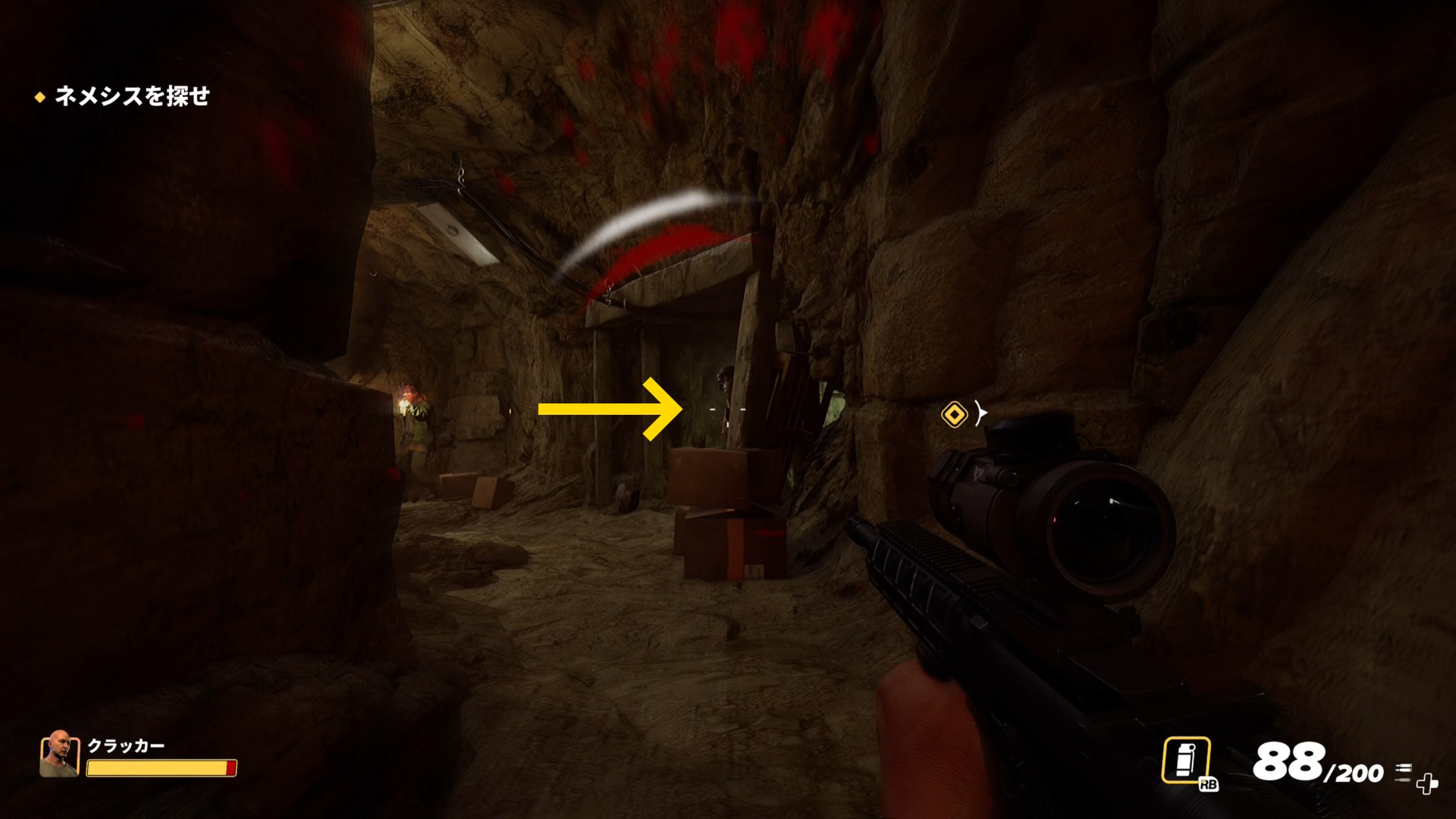- 不安な場合、閃光手榴弾を先に投げるとよい