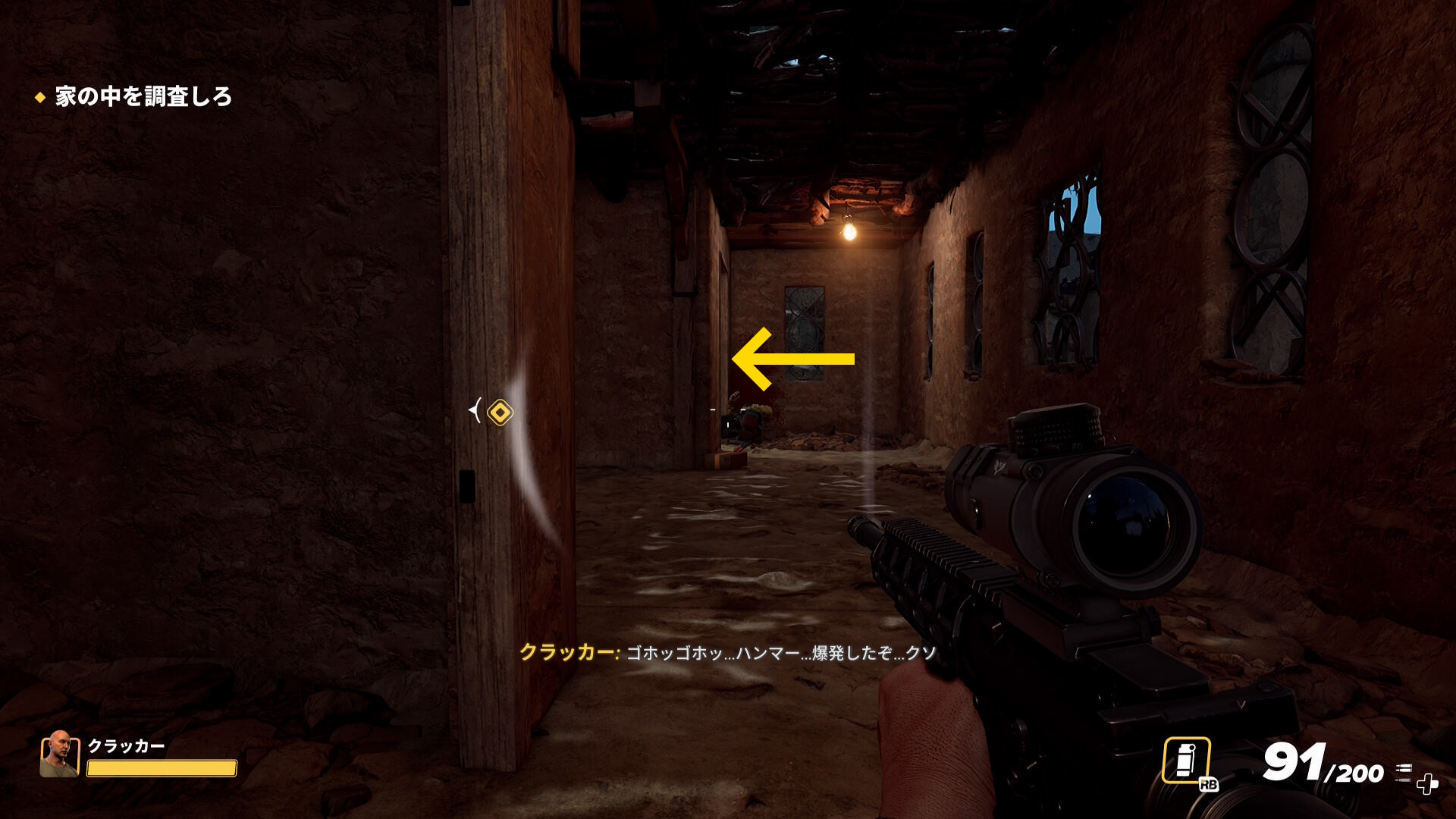 - 2階の部屋に入った時点でクラッカーが『起爆用コード!罠だ!』と言ったあと爆発するが気にしなくてオーケー