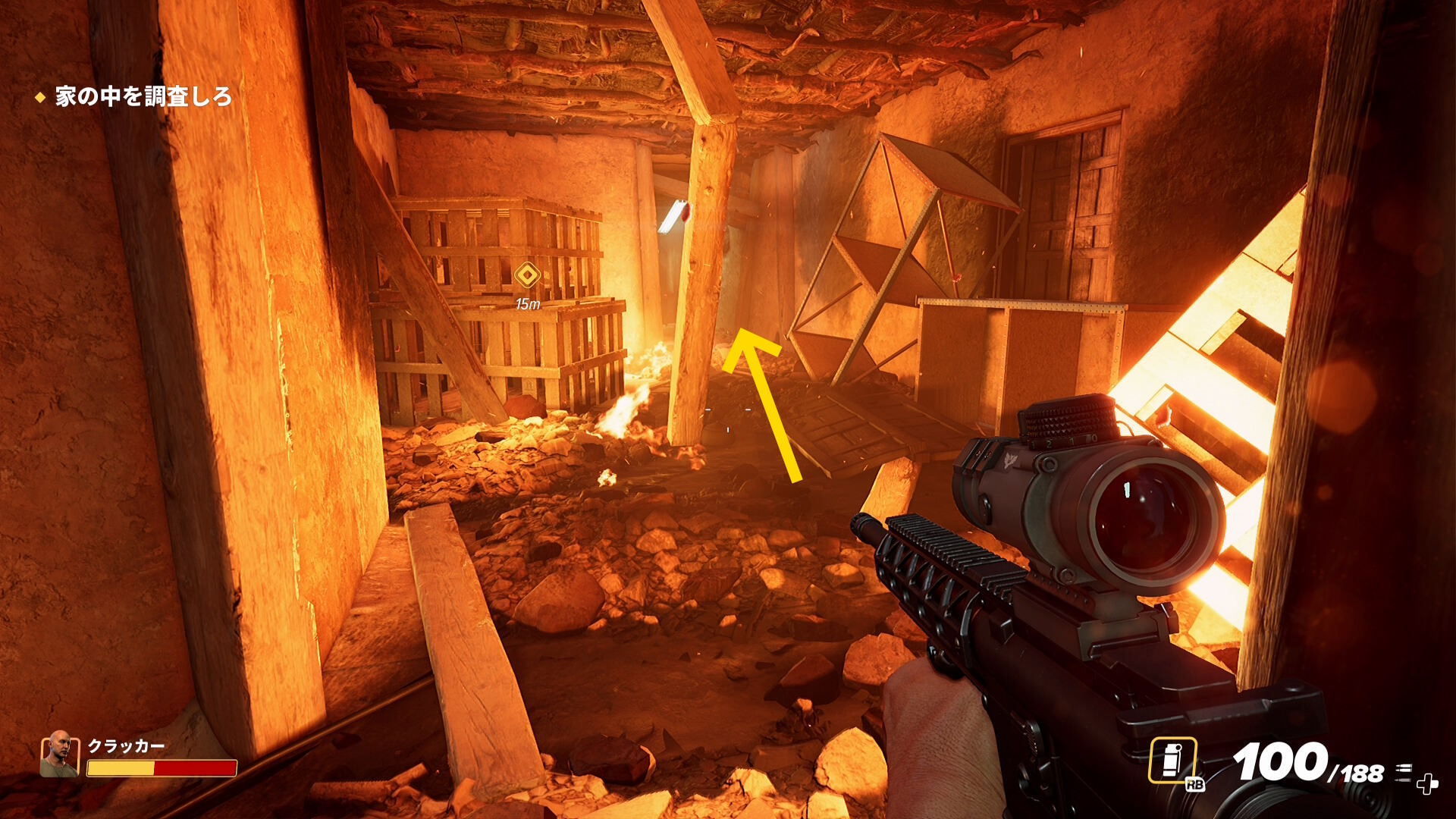 - 部屋に入ると燃えている(さっき爆発したのがこの部屋らしい)