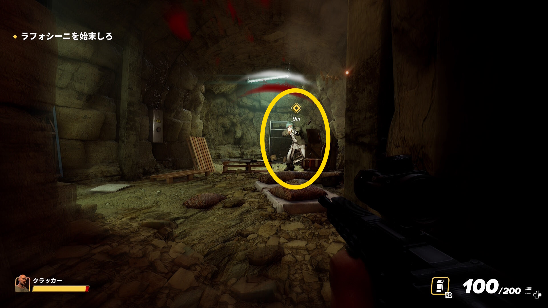 - あとは道なりに進み、マーカーのところにラフォシーニがいるのでキルする