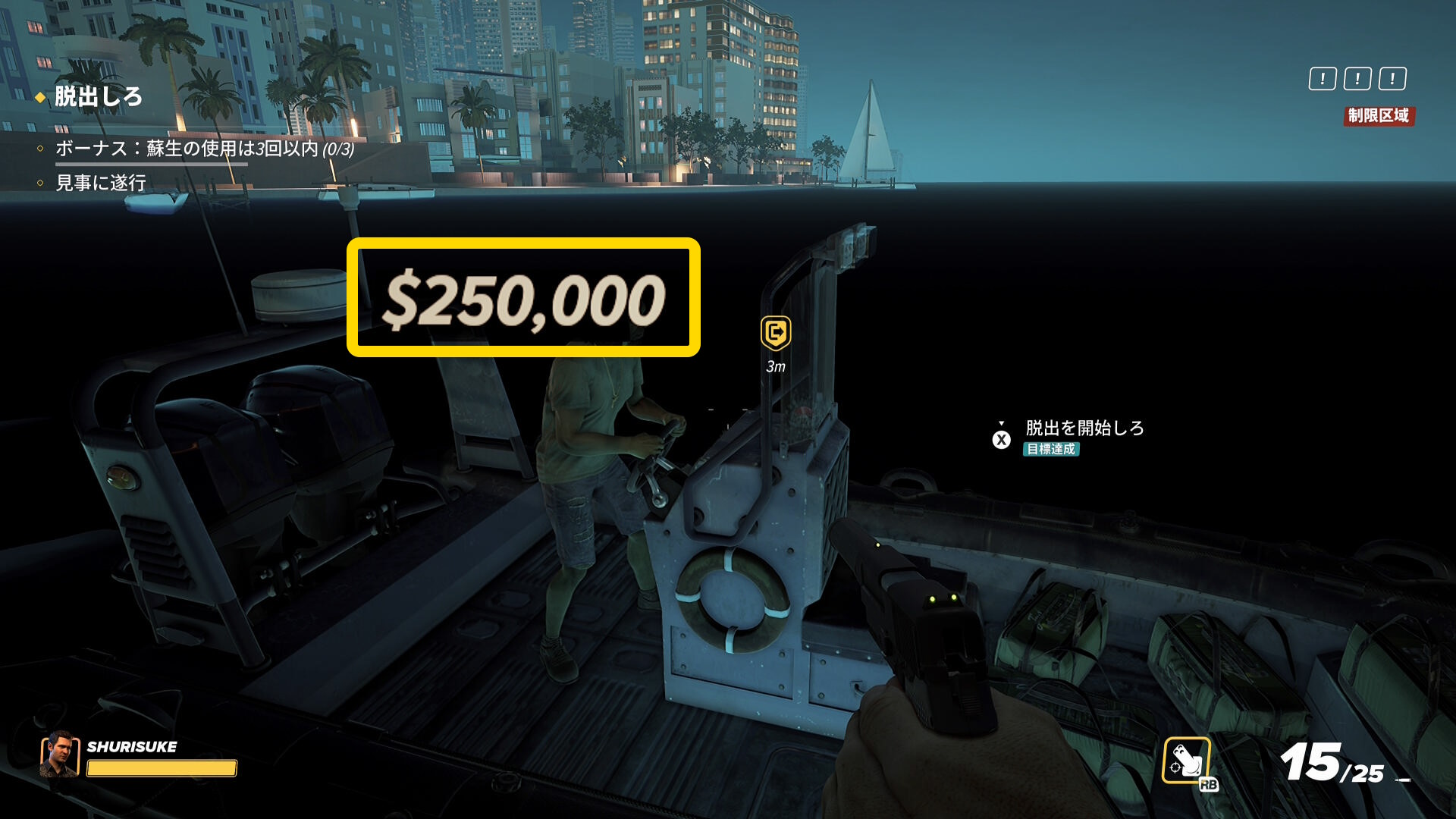 - 拘束する操作とボートで脱出する操作が同じなので注意(当サイトは何度か脱出してしまった)
