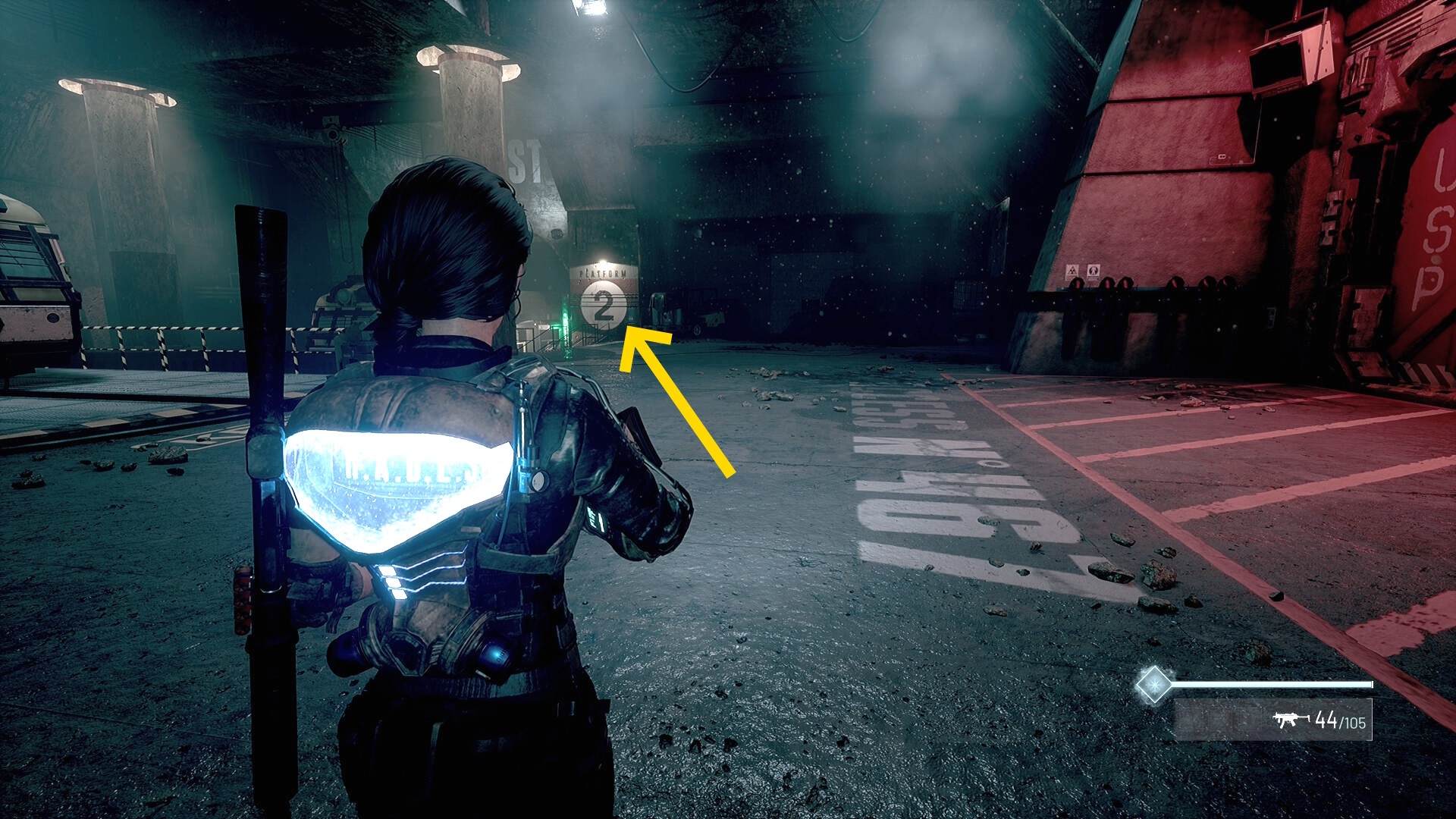 • カットシーン後、左前方奥に見える「 Platform 2 」へ