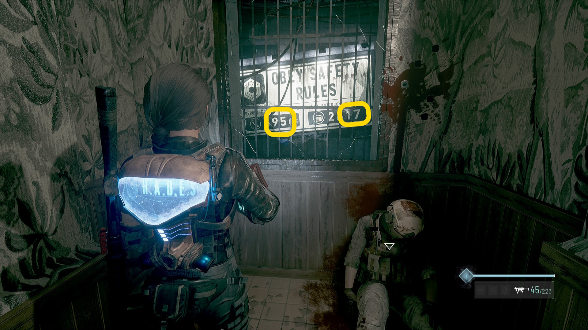 - なお、鉄格子の窓から見える番号の内、「奇数のみ(9517)」があとでロックされたドアを解錠する数字になる