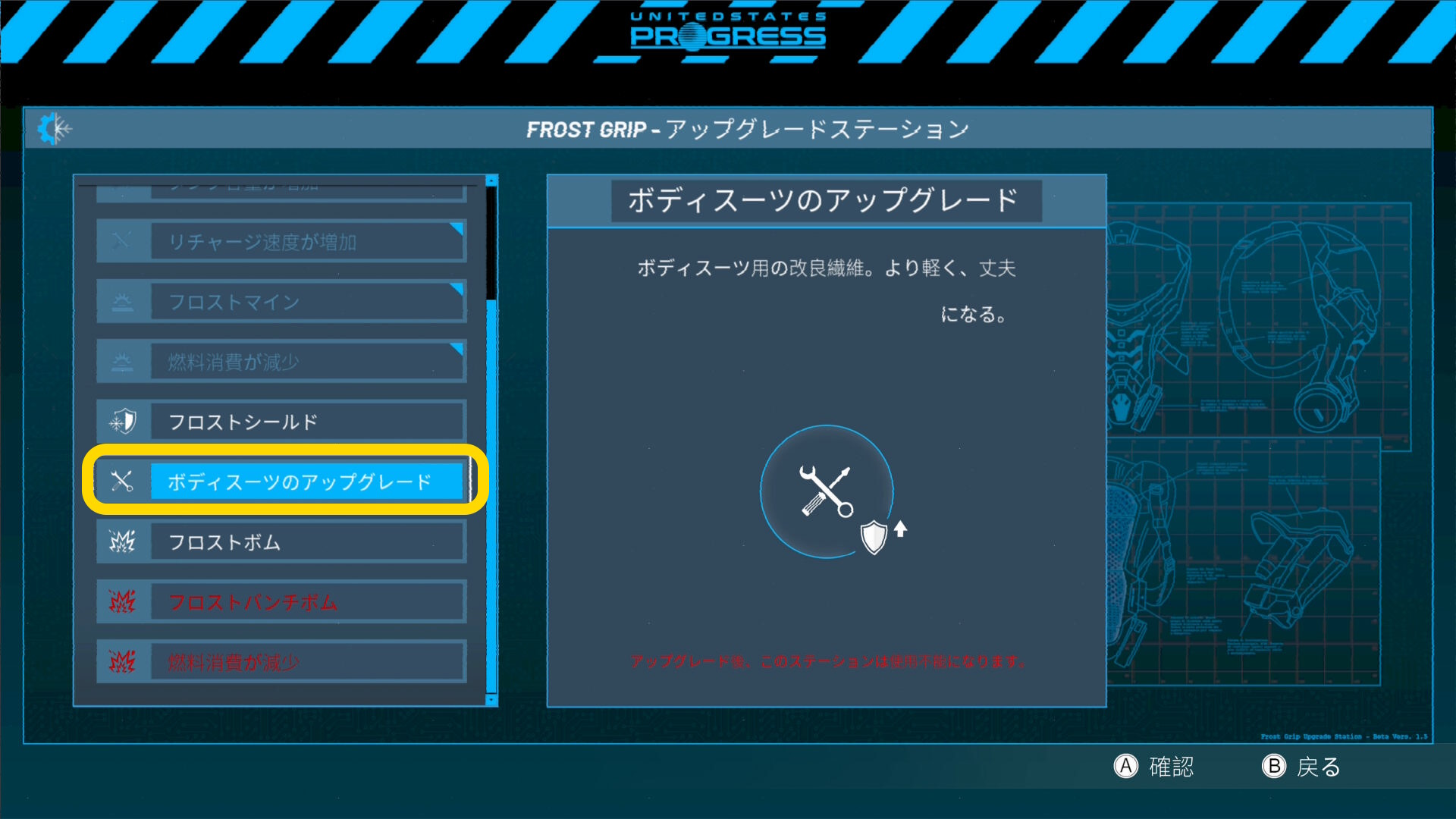 - 当サイトでは「ボディスーツのアップグレード」を選んだ