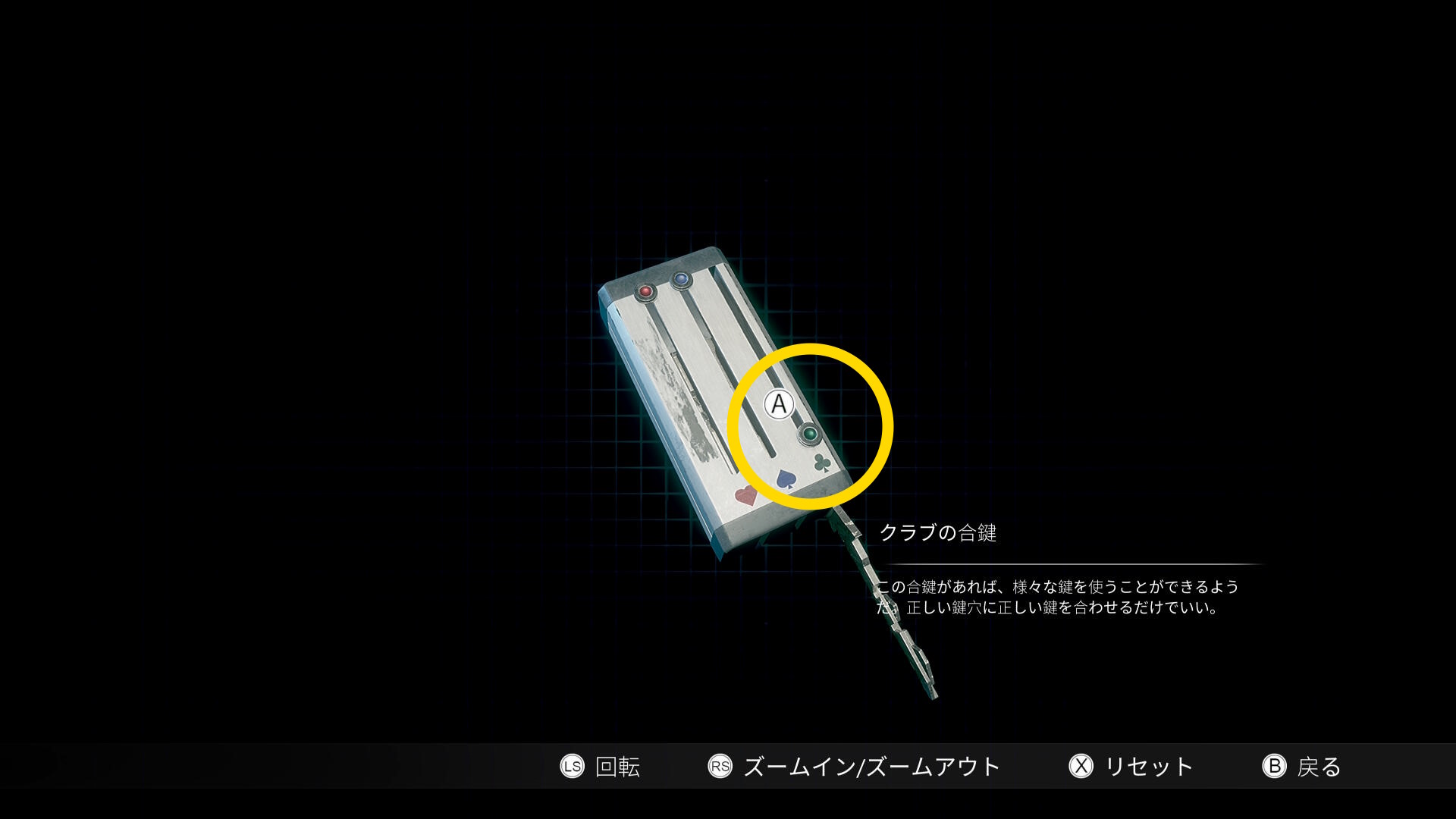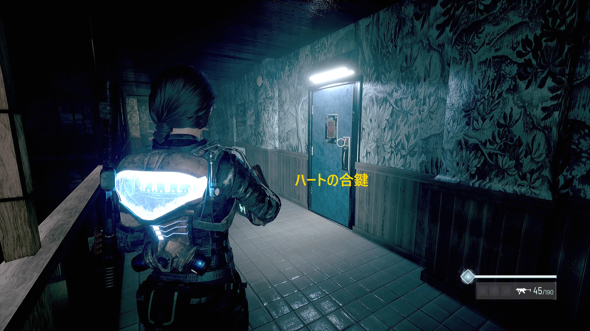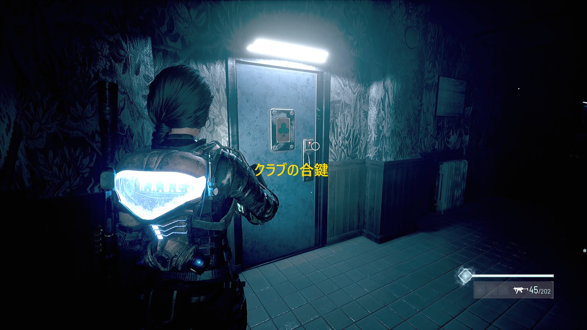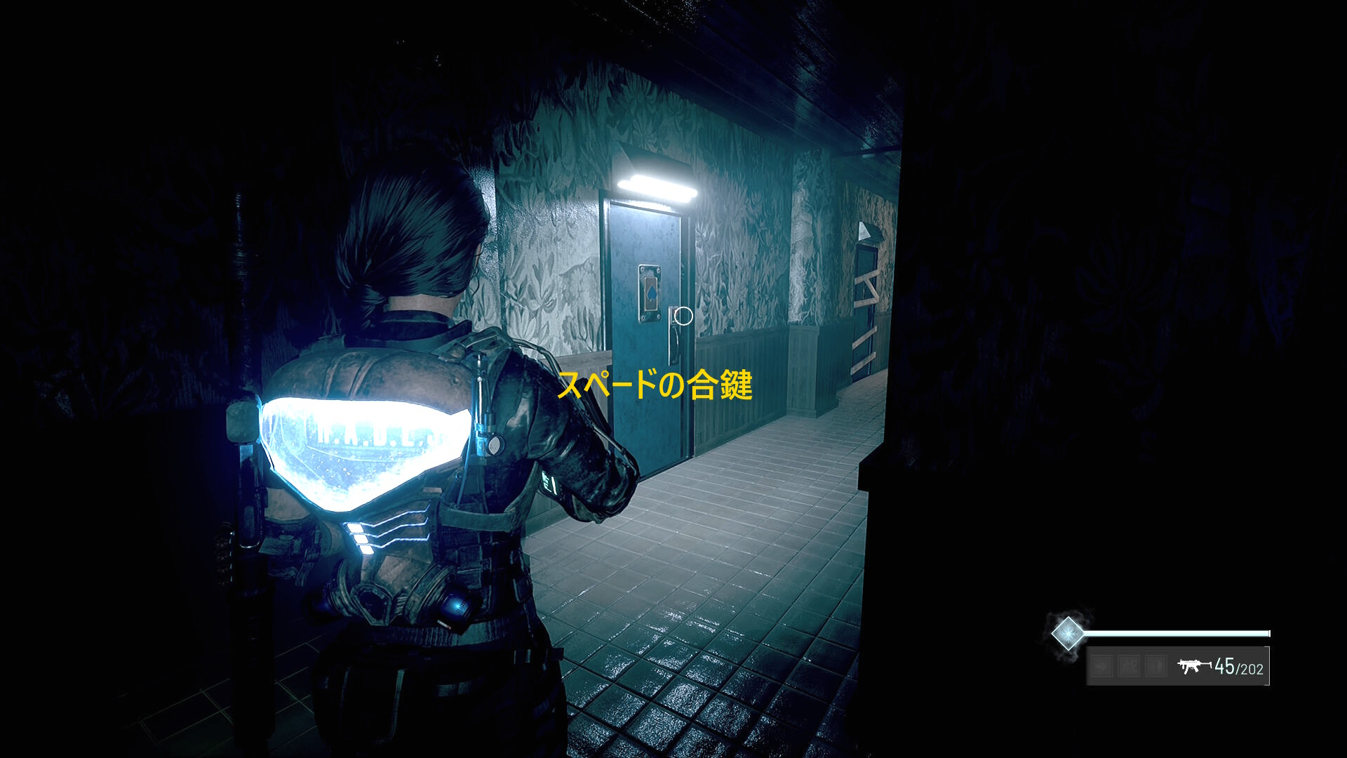 - 合鍵をスペードに合わせてドアを解錠するが、中には 応急処置キット しかないので不要であれば、このドアはスルーしてよい