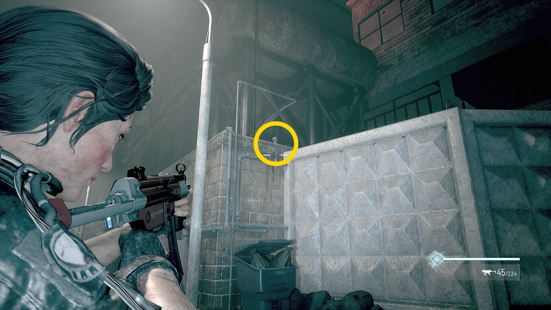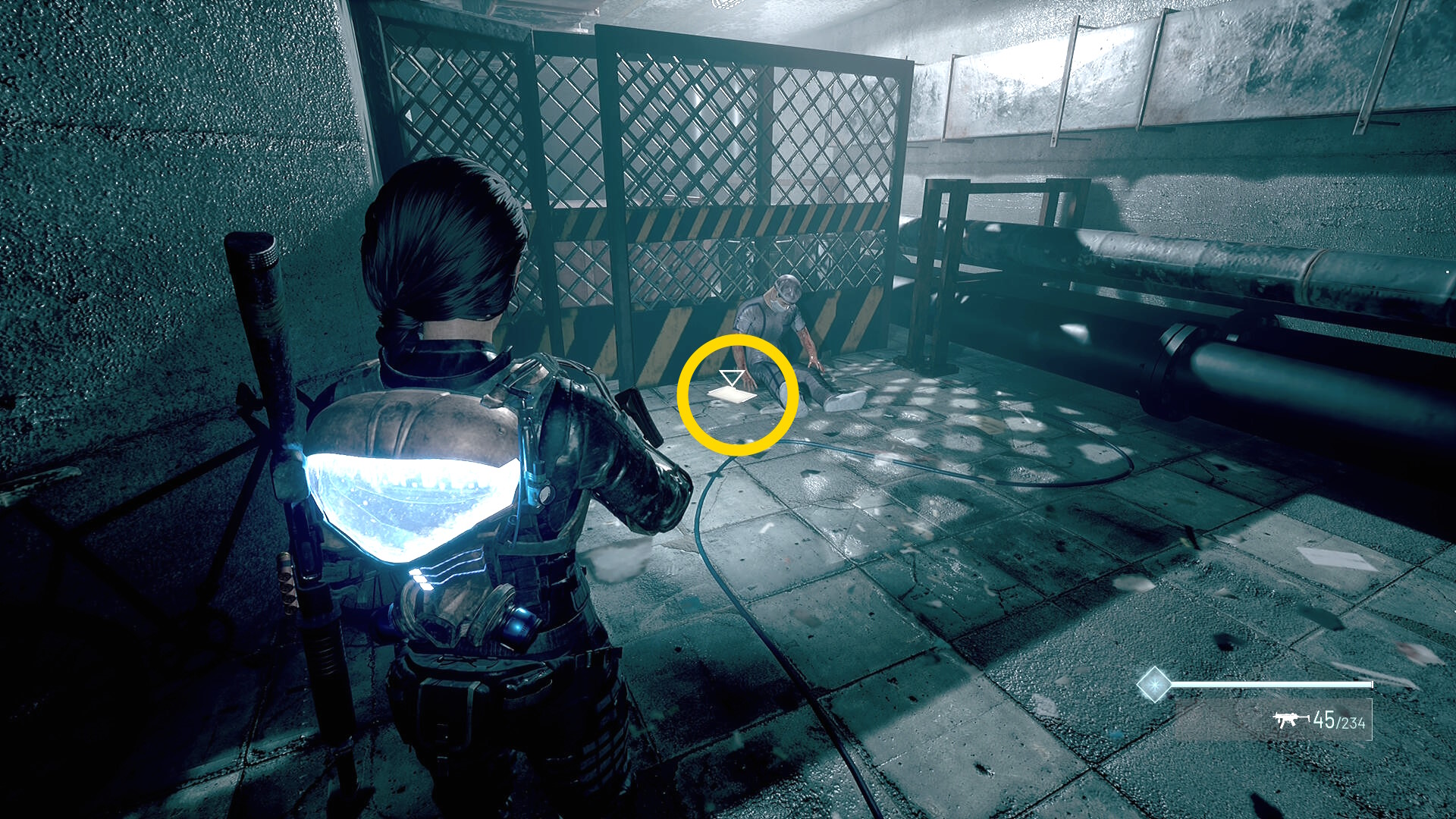 - 壁の穴を通過すると右の死体がデコイ化するのでキル