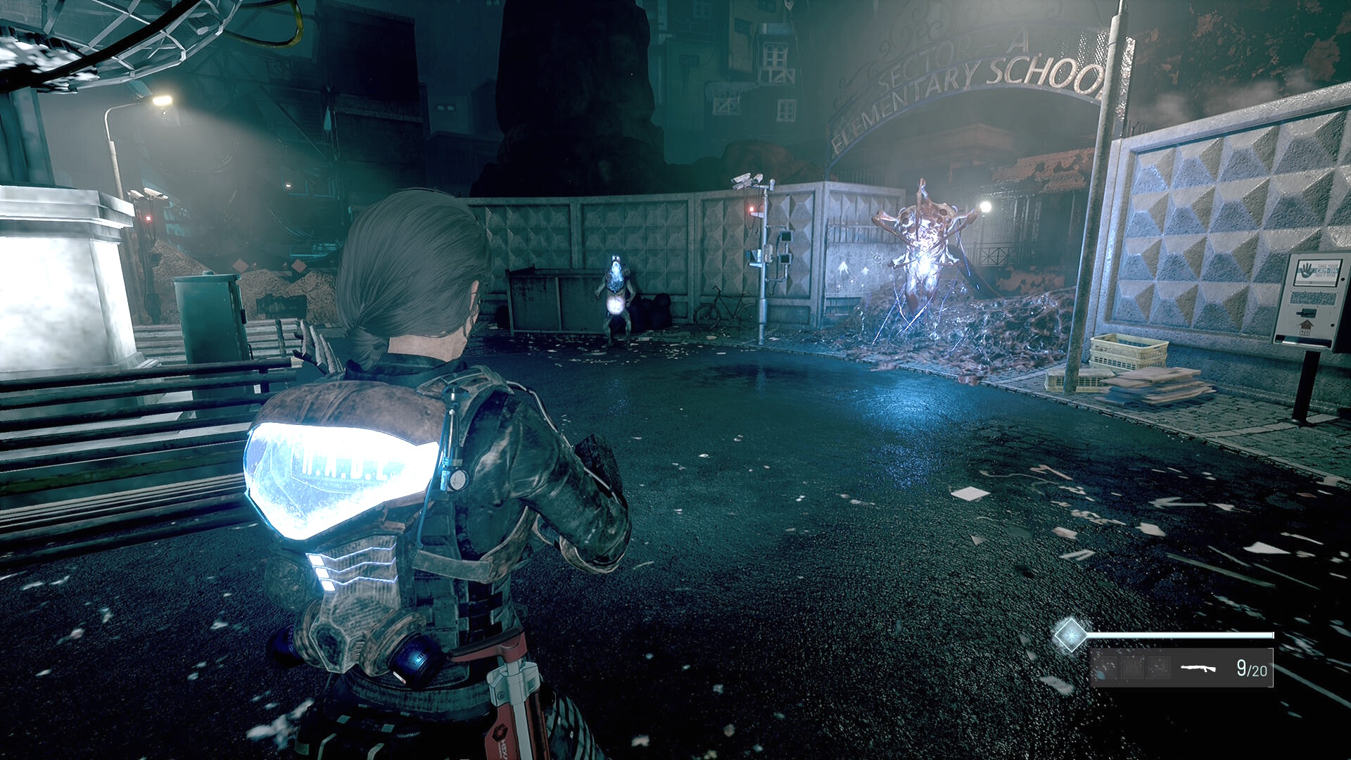 - セーブ後、右に進み、アパート敷地から出ようとするとデコイ、変異デコイが出現&障壁で塞がれる