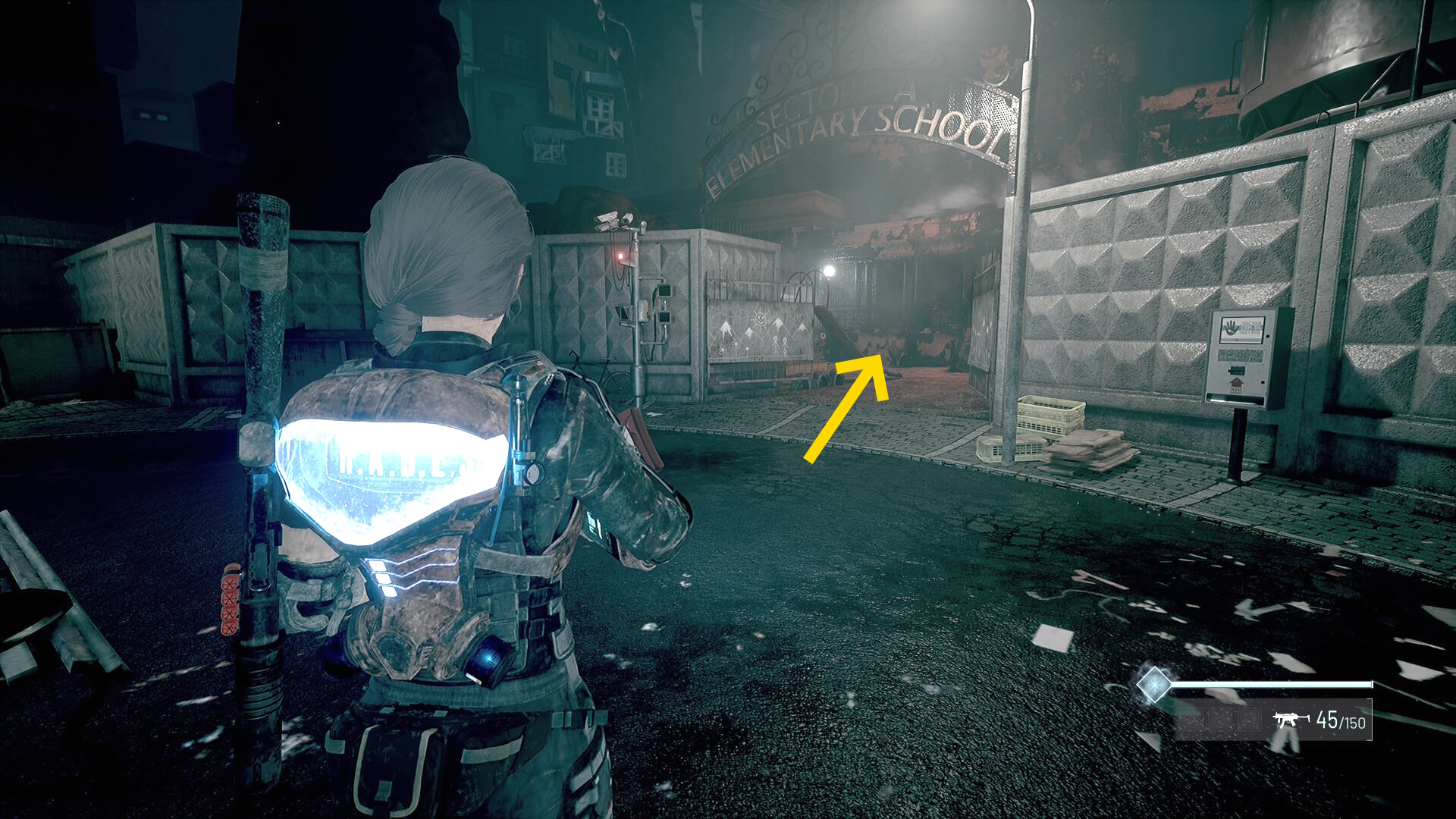 - そこから右を向く( Section A Elementary School の看板のほう)とスパーカーと変異デコイが出現