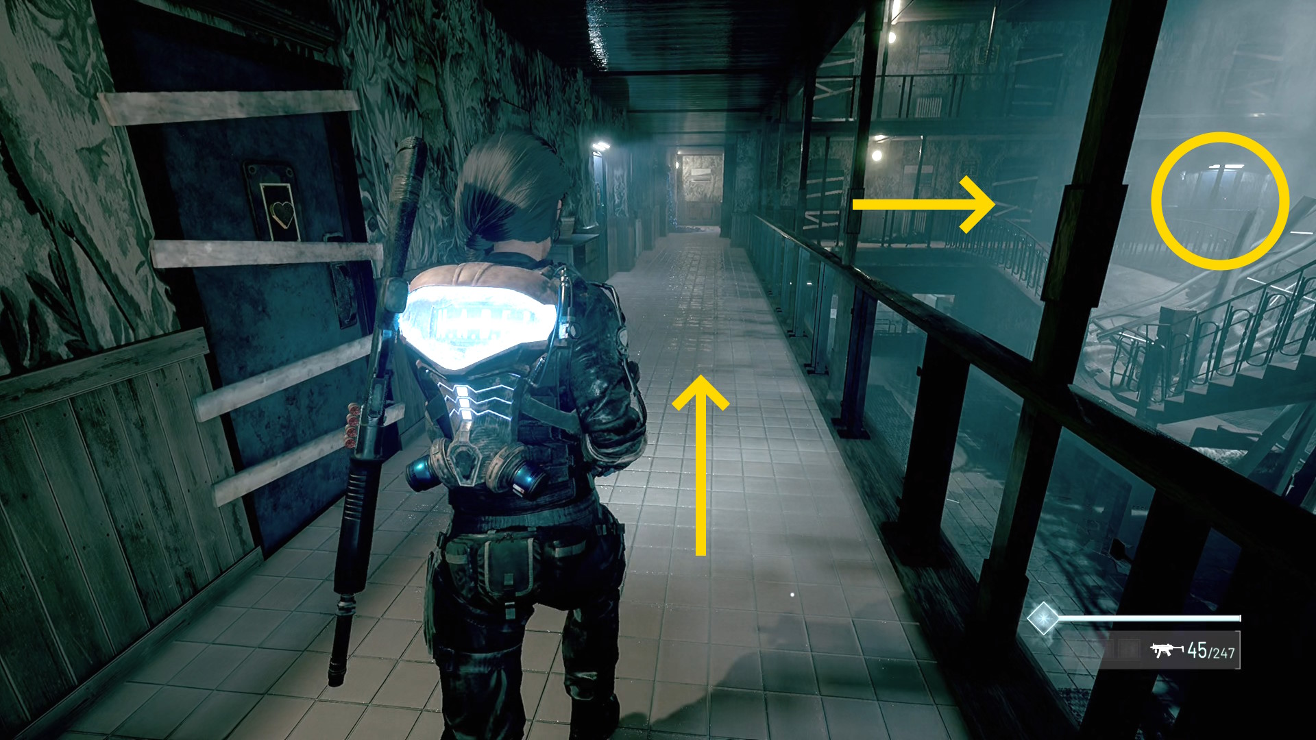 - 階段に向かう際、左にあるアパート敷地からの出口には近づかないこと!(近づくとデコイらが出現してしまう)
