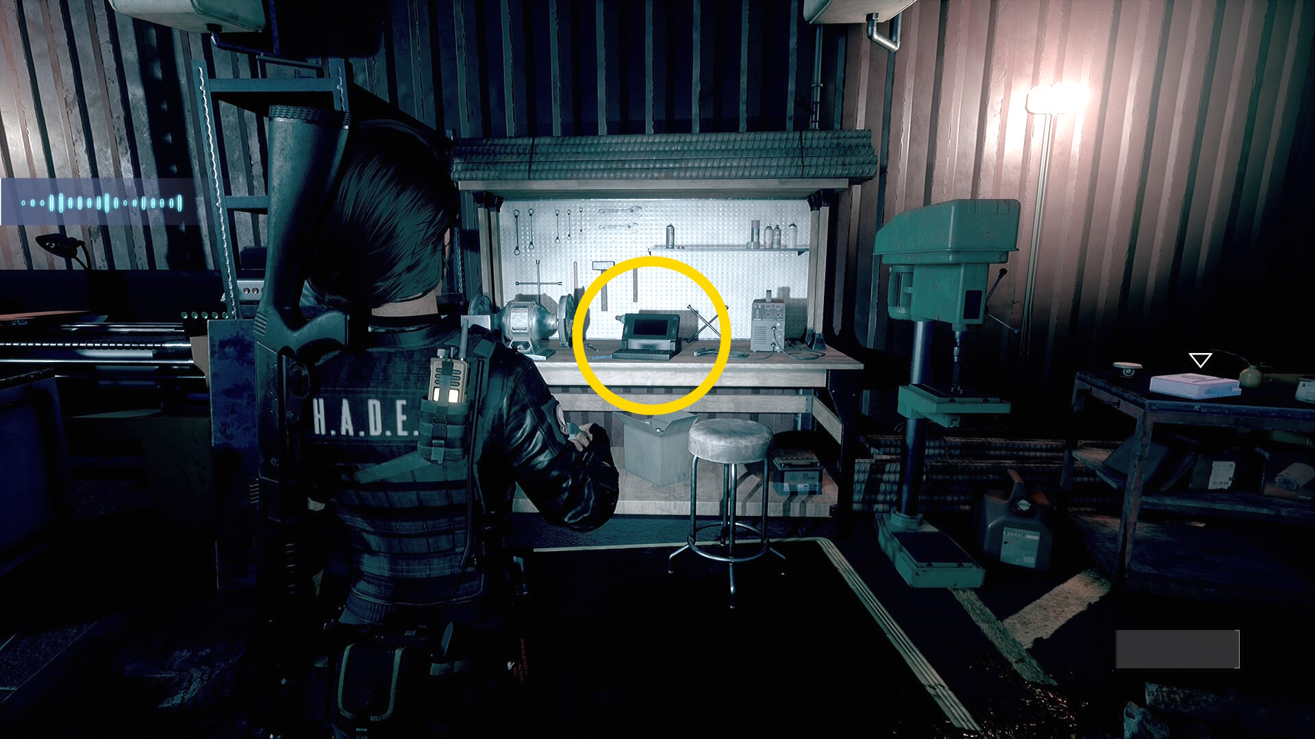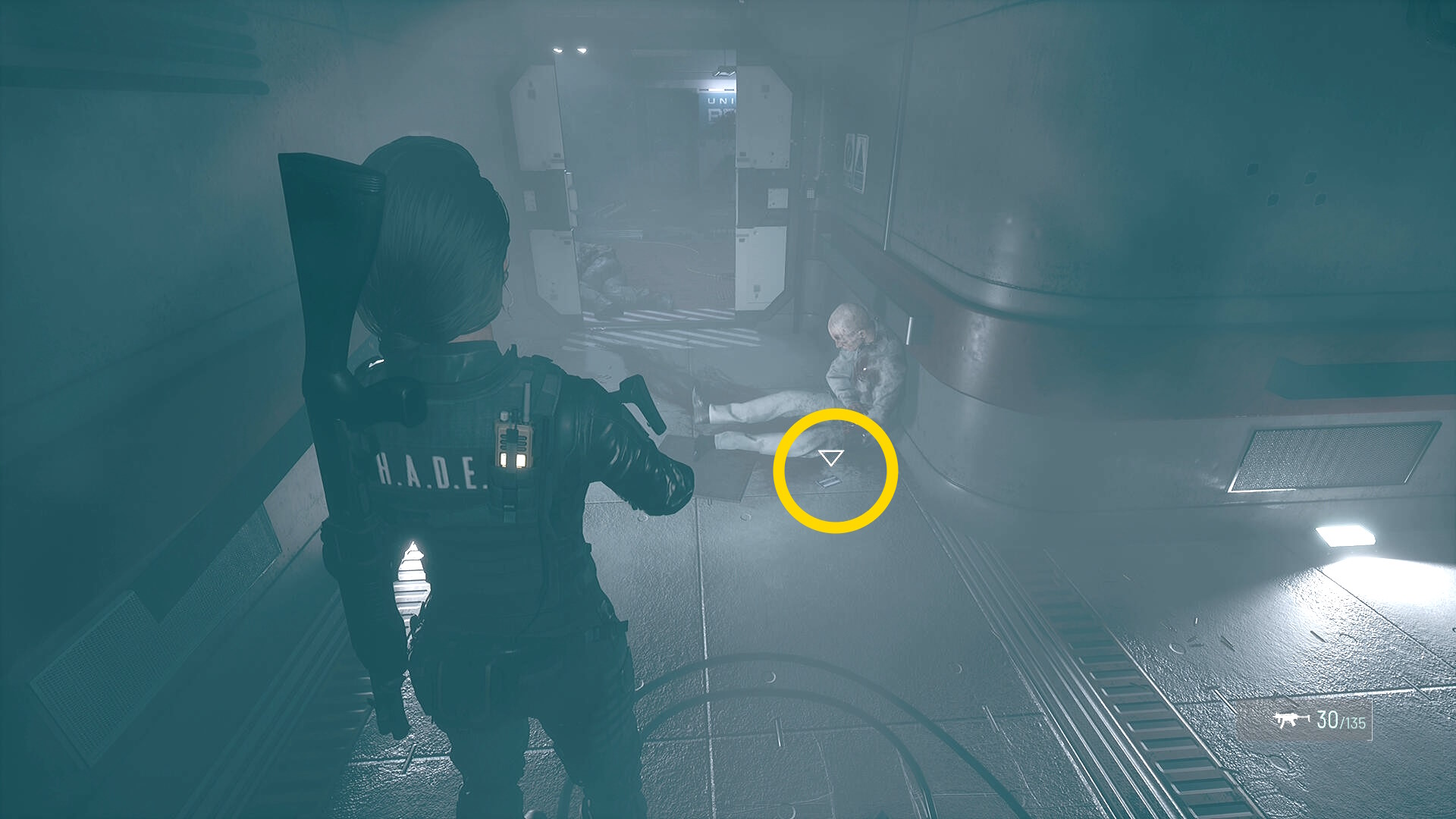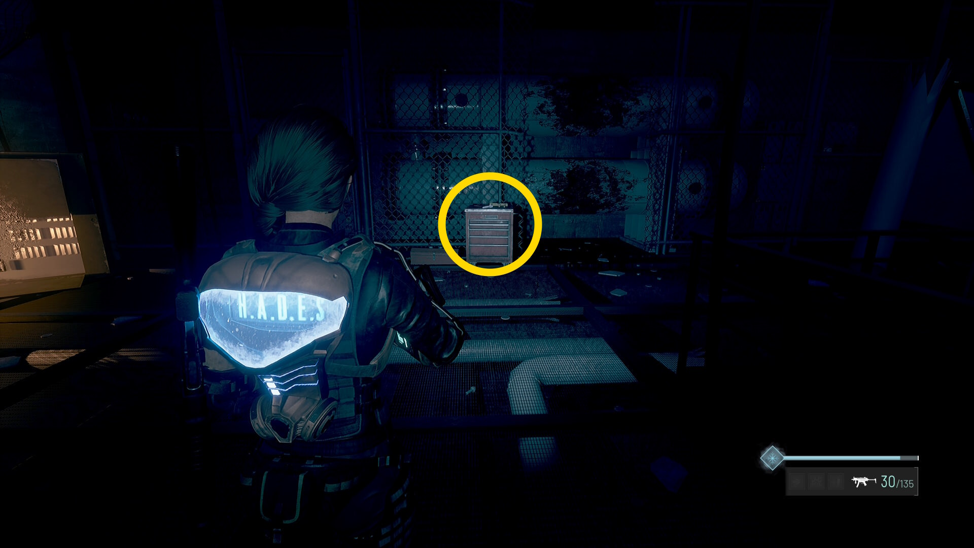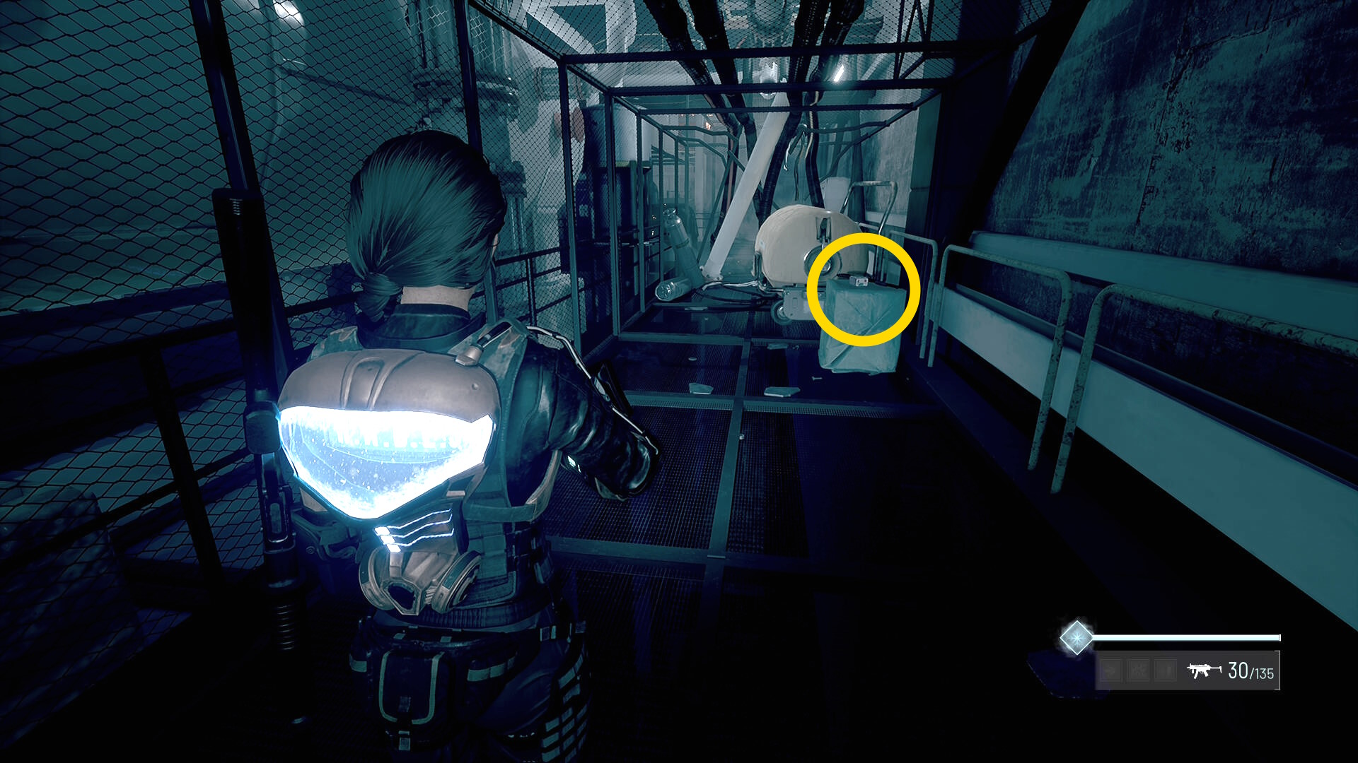 - クランクのような角を曲がったところ、座位で死亡している Section 8 隊員のそばに アンダーソンの音声記録(音声ログ:1/6)