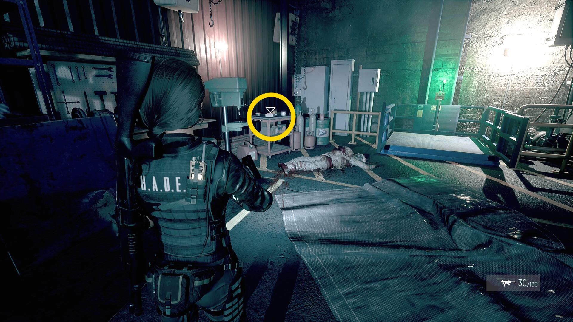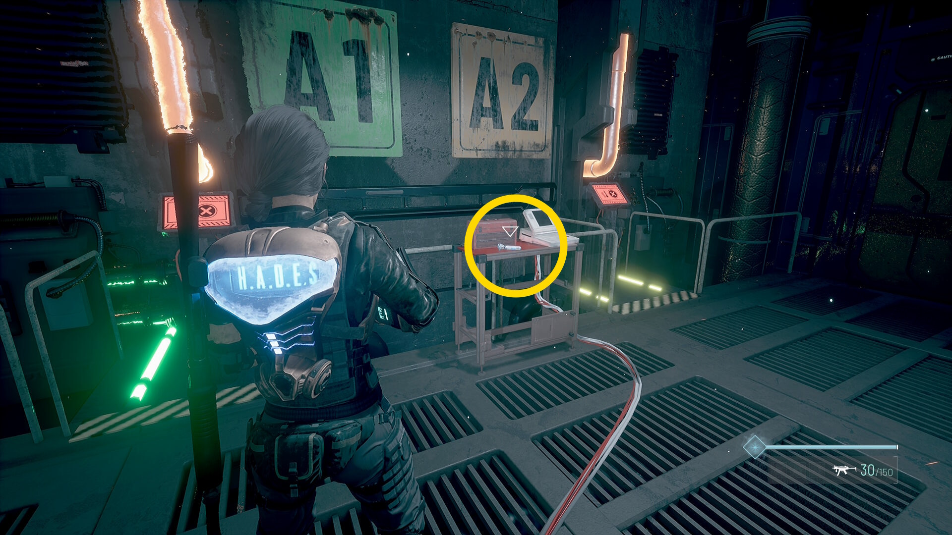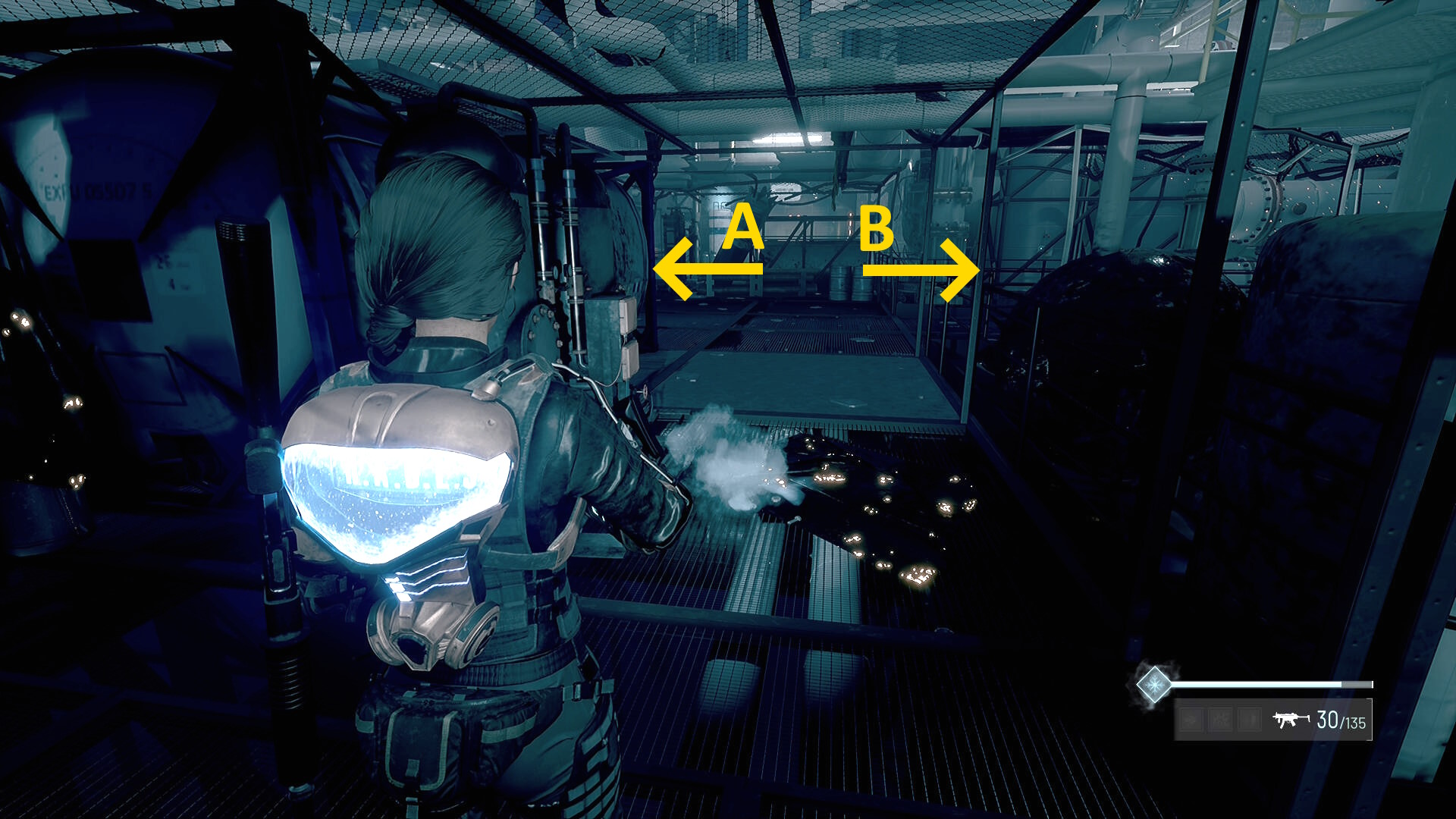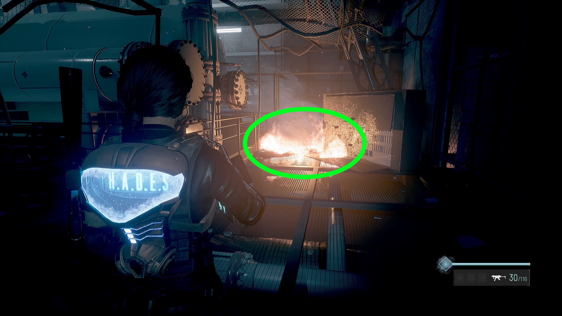 - クランクのような角を曲がったところ、座位で死亡している Section 8 隊員のそばに アンダーソンの音声記録(音声ログ:1/6)