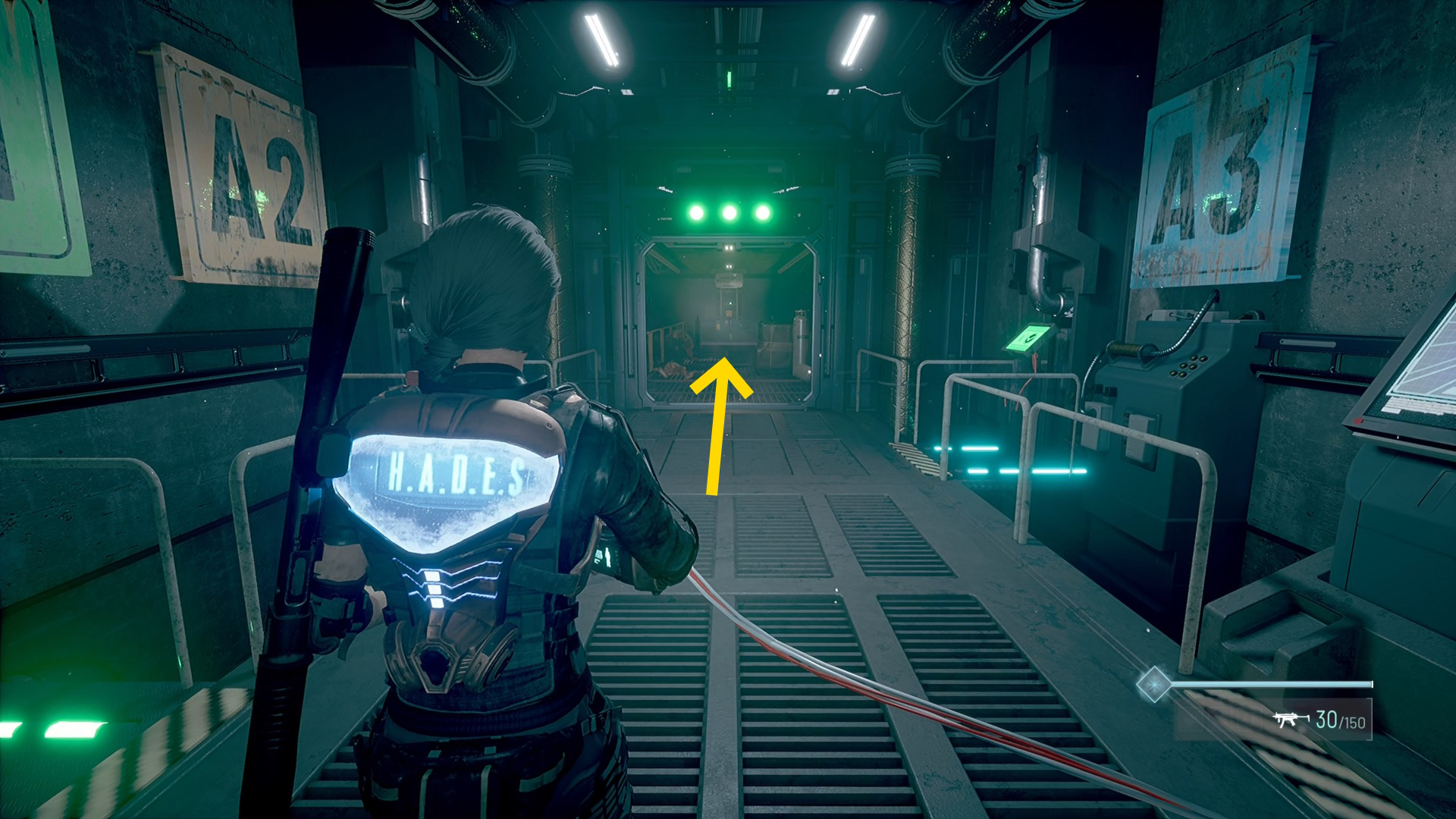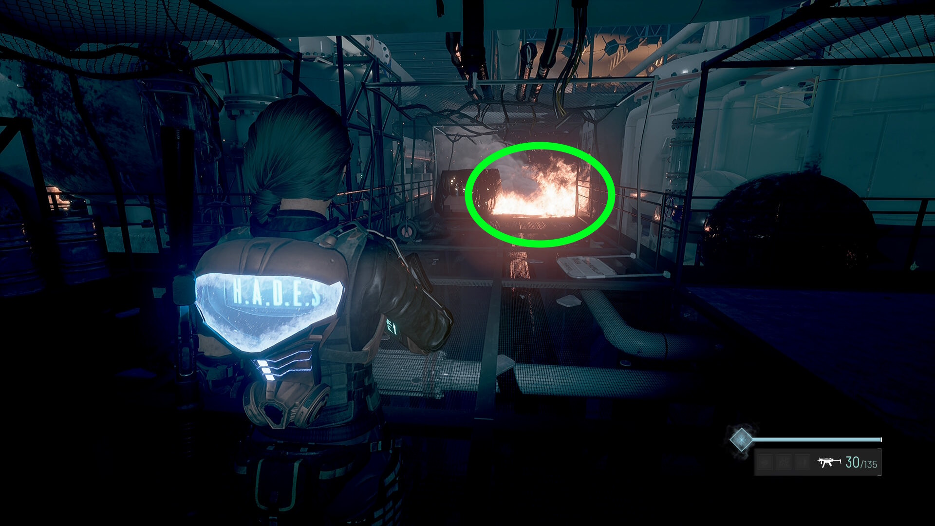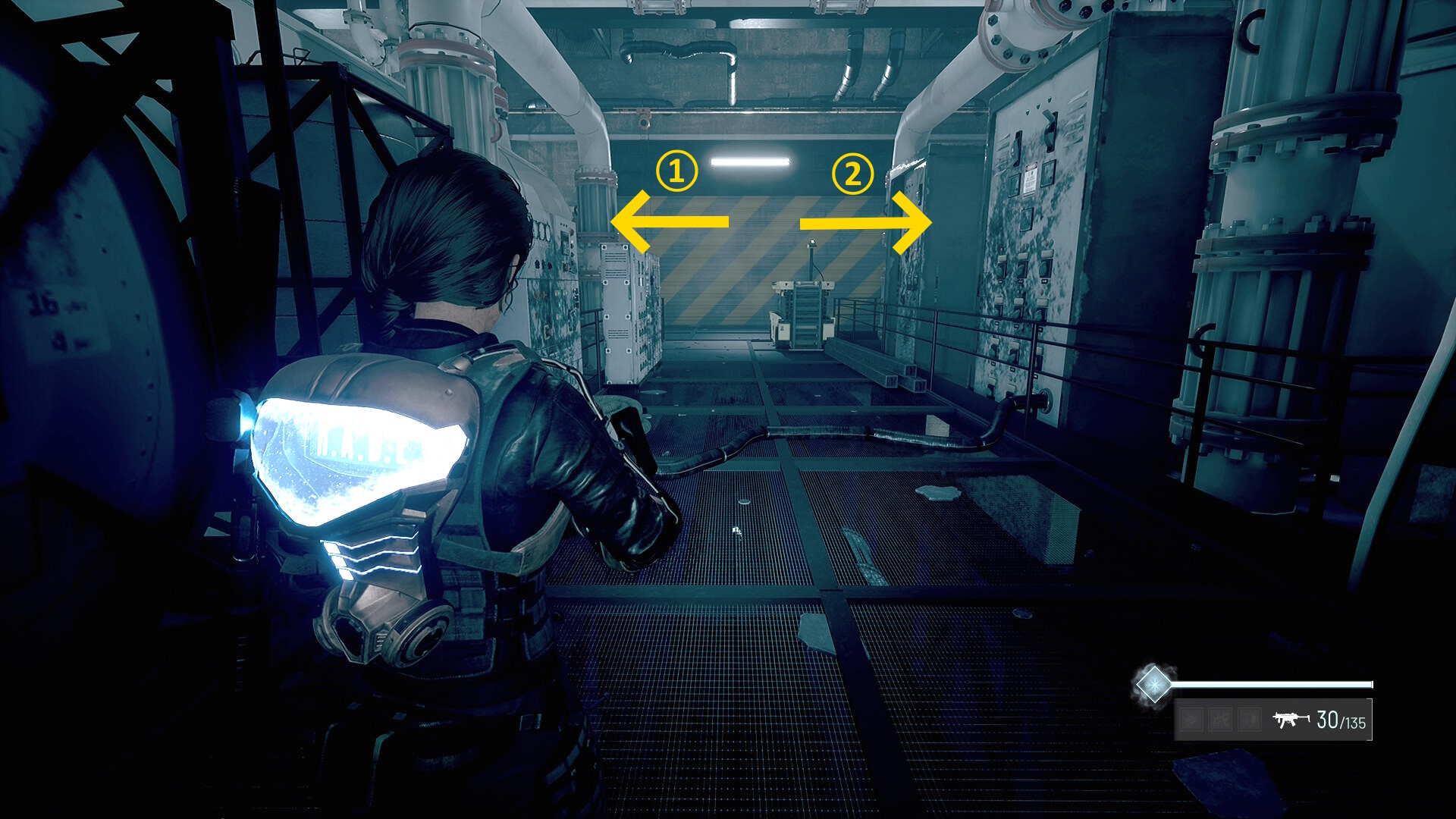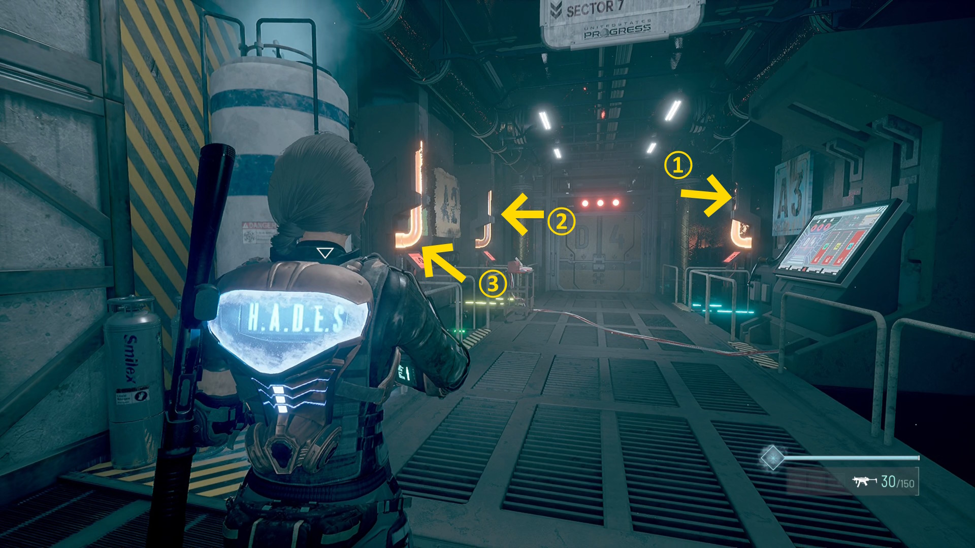 - クランクのような角を曲がったところ、座位で死亡している Section 8 隊員のそばに アンダーソンの音声記録(音声ログ:1/6)