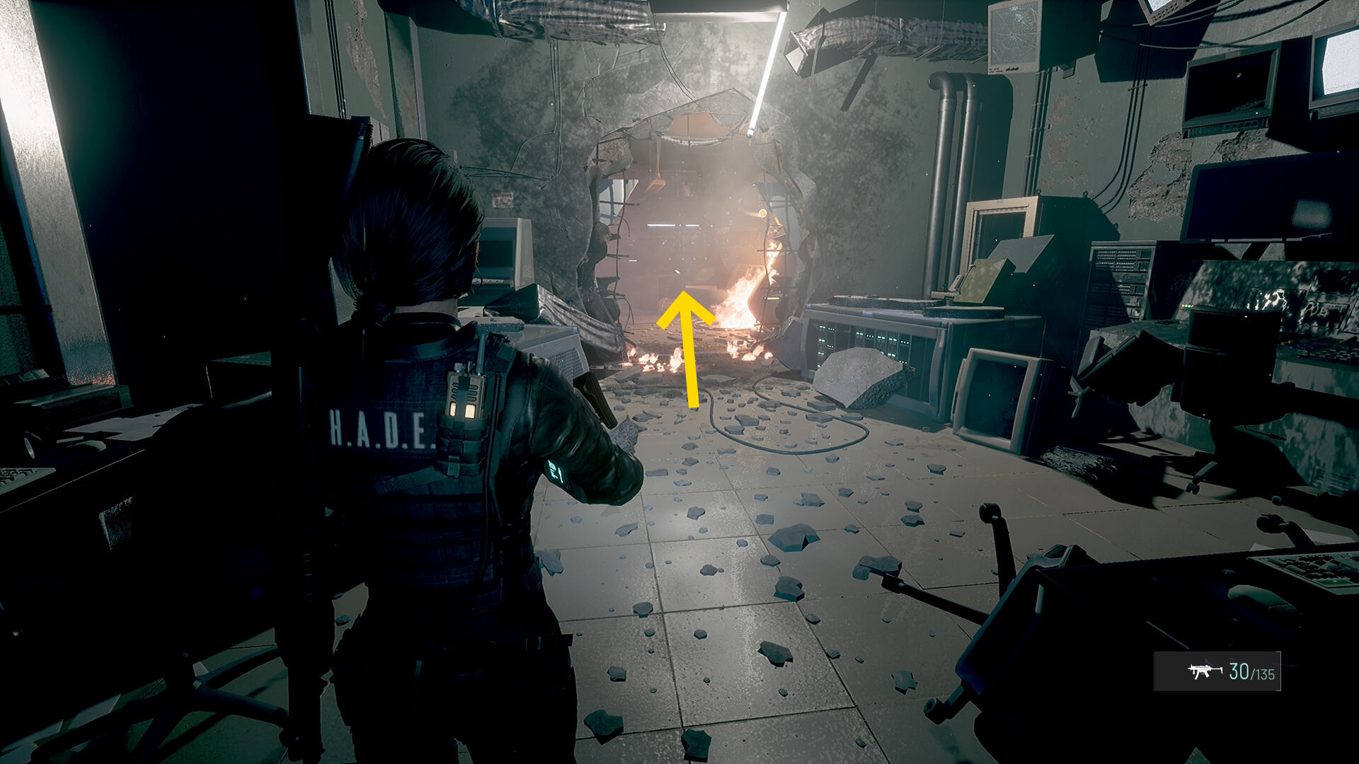- 燃えている部屋をぐるっと反時計回りに移動し、開口部へ