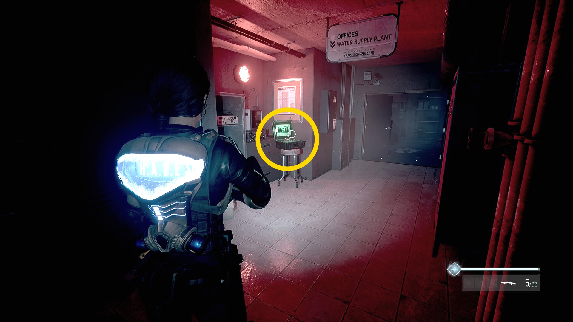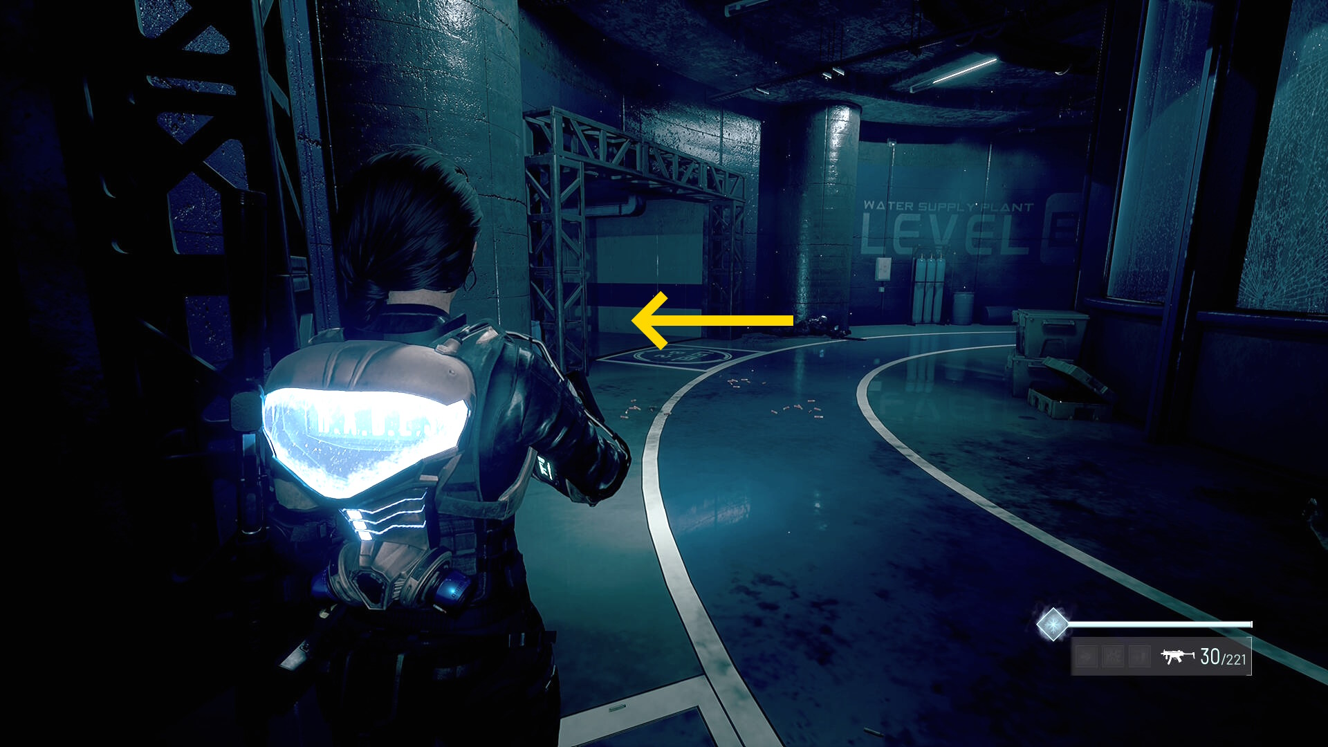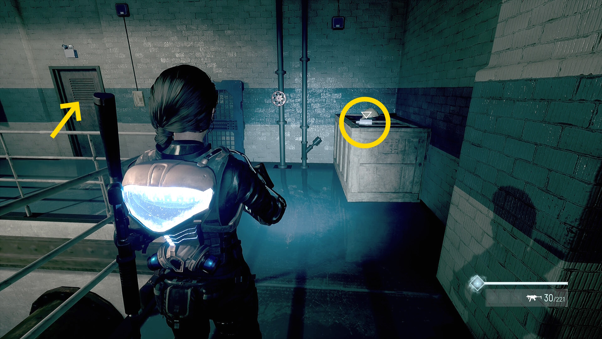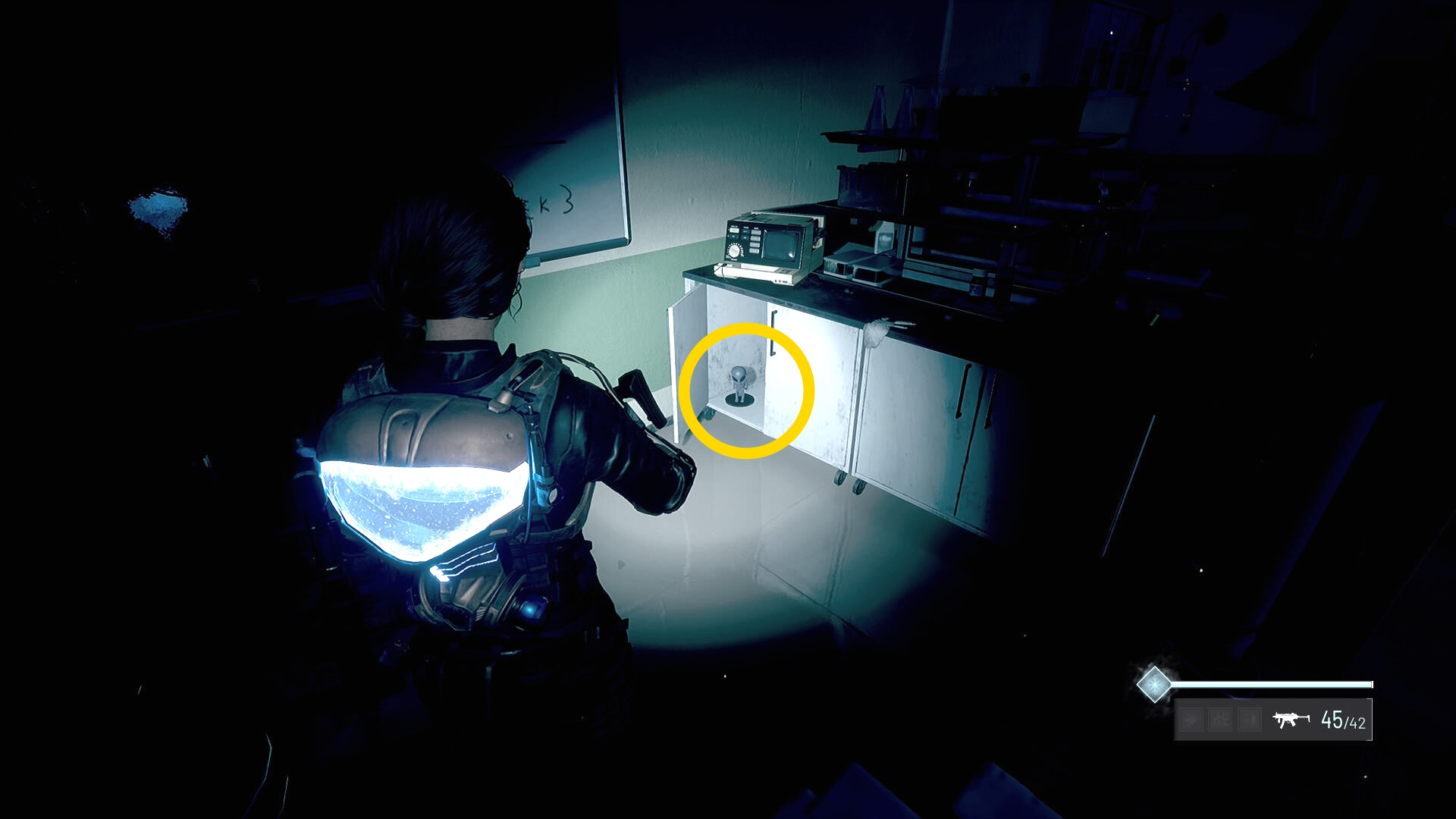 - コの字型の部屋を移動し突き当りのドアを開けるが、ドアを開けた右側面にデコイが隠れているので注意