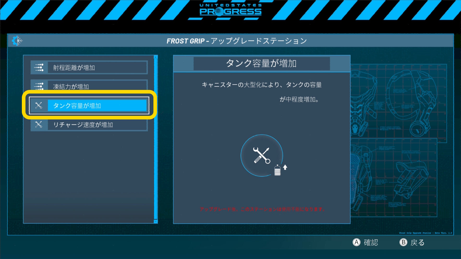- アップグレードするものは各位の任意だが、当サイトでは「タンク容量が増加」を選ぶ