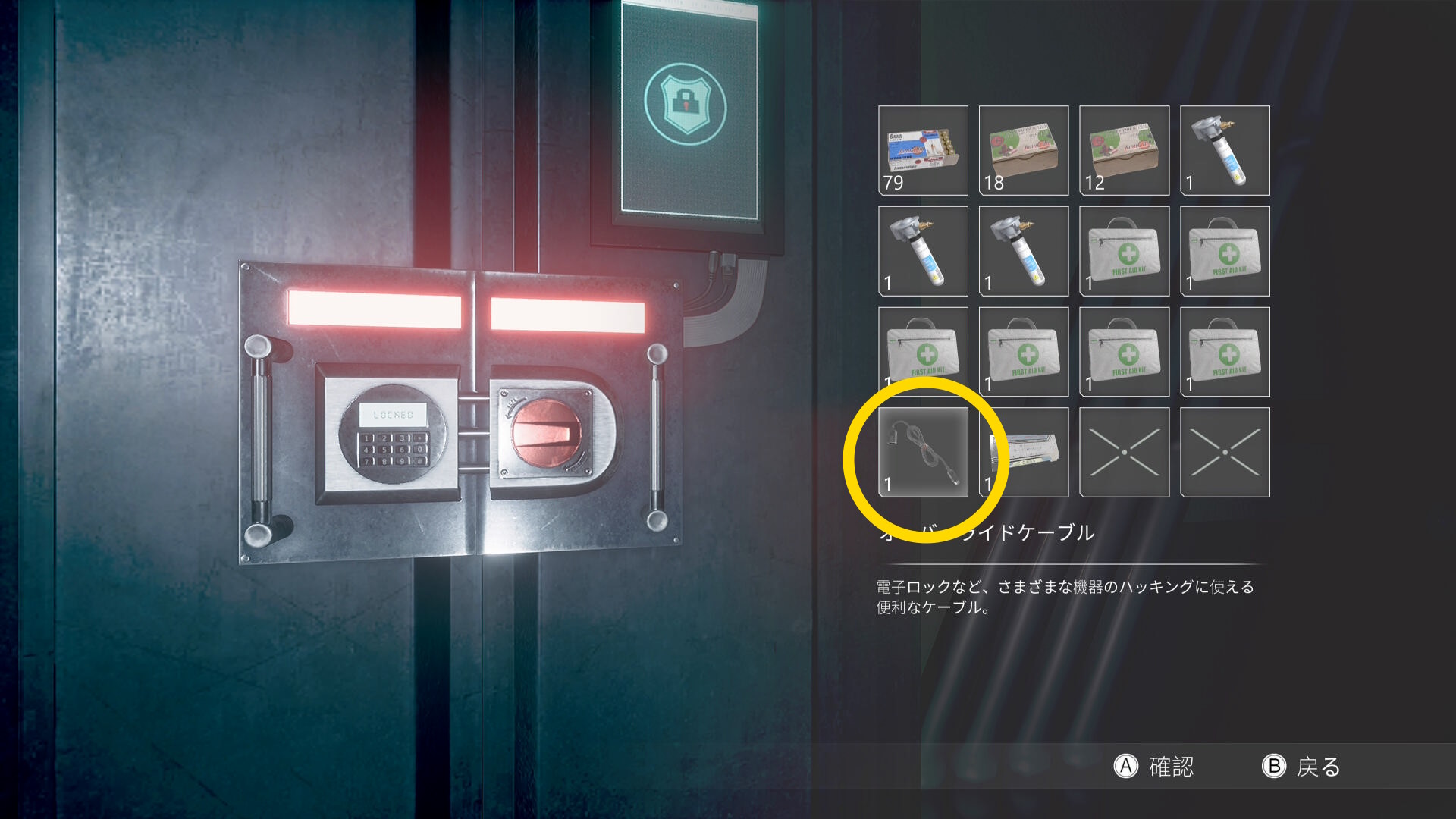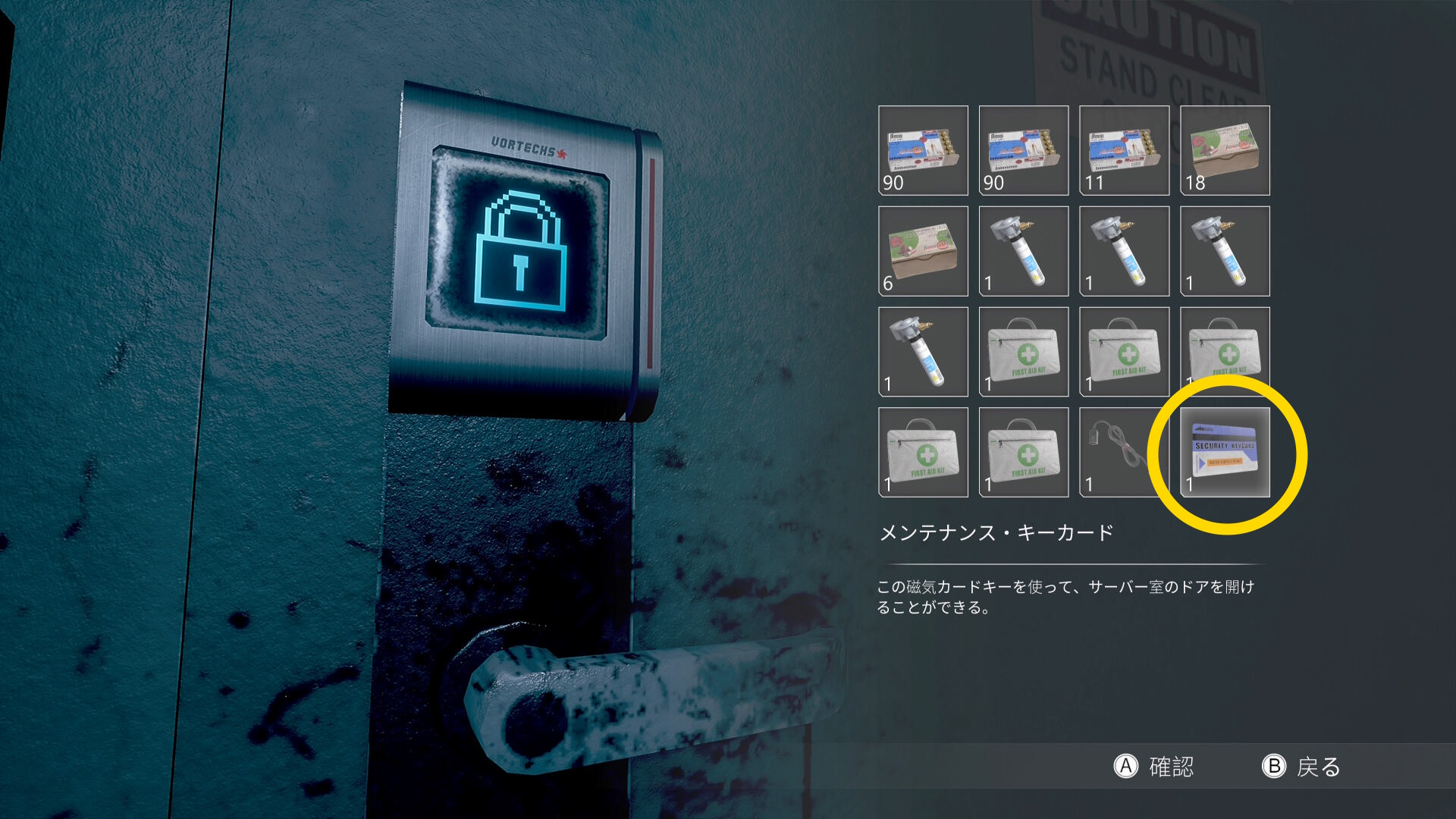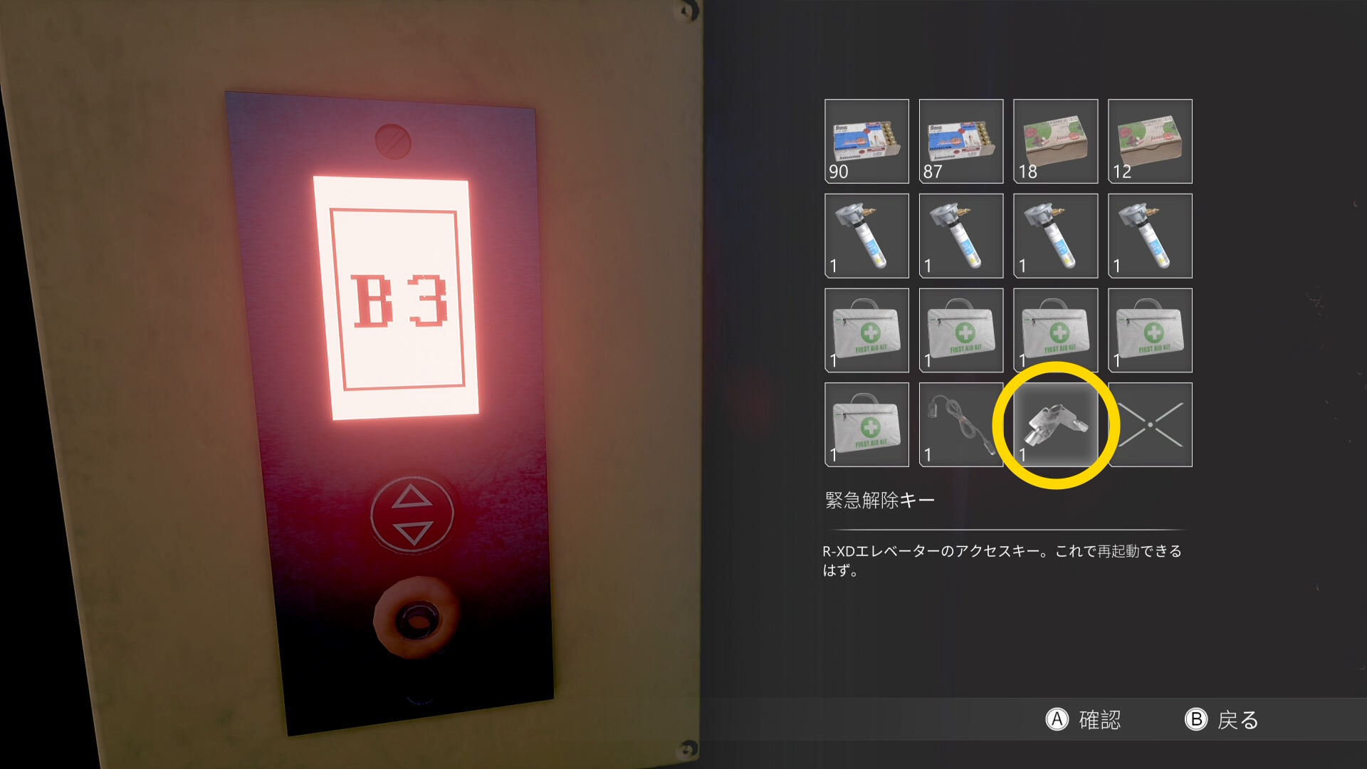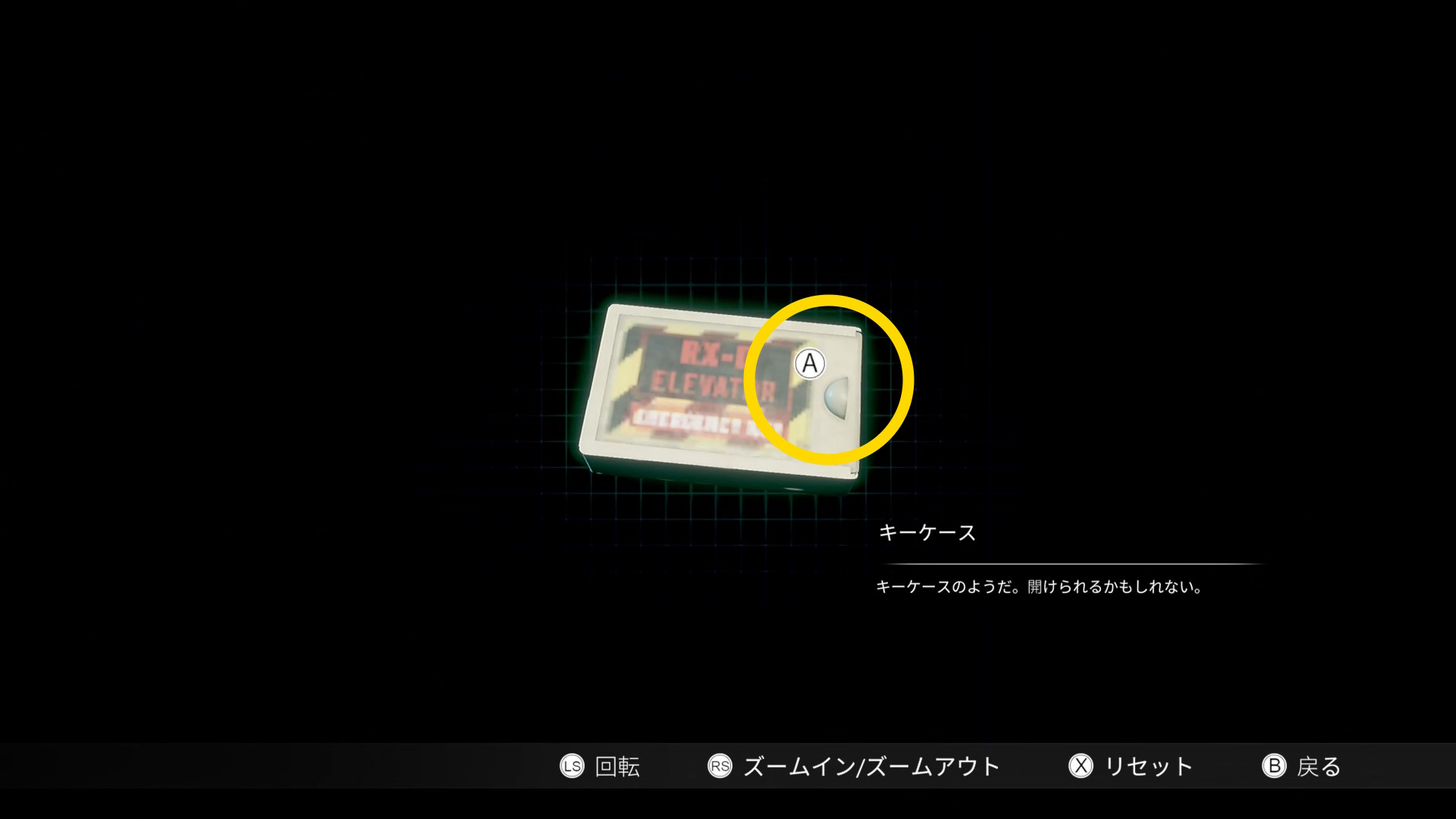 - 画面が拡大されたら A ボタンを押してキーケースを開き、緊急解除キー を回収