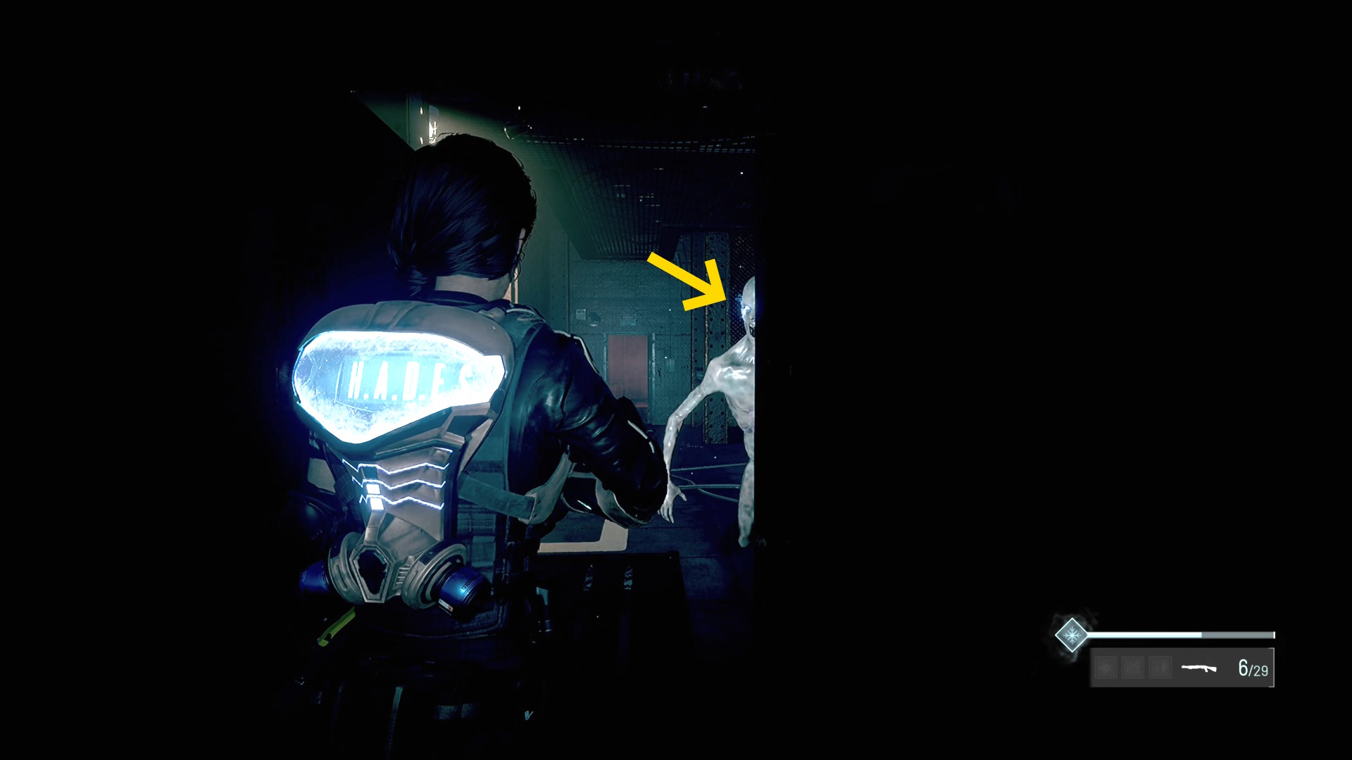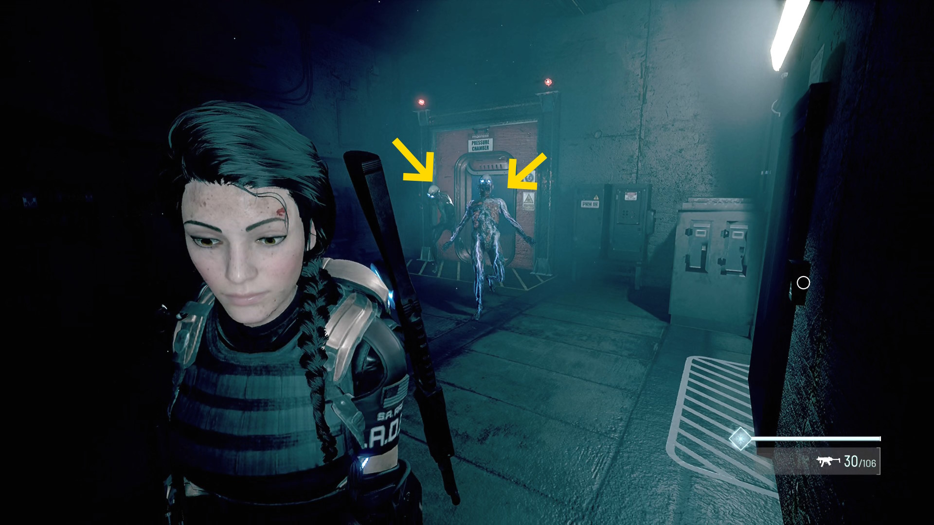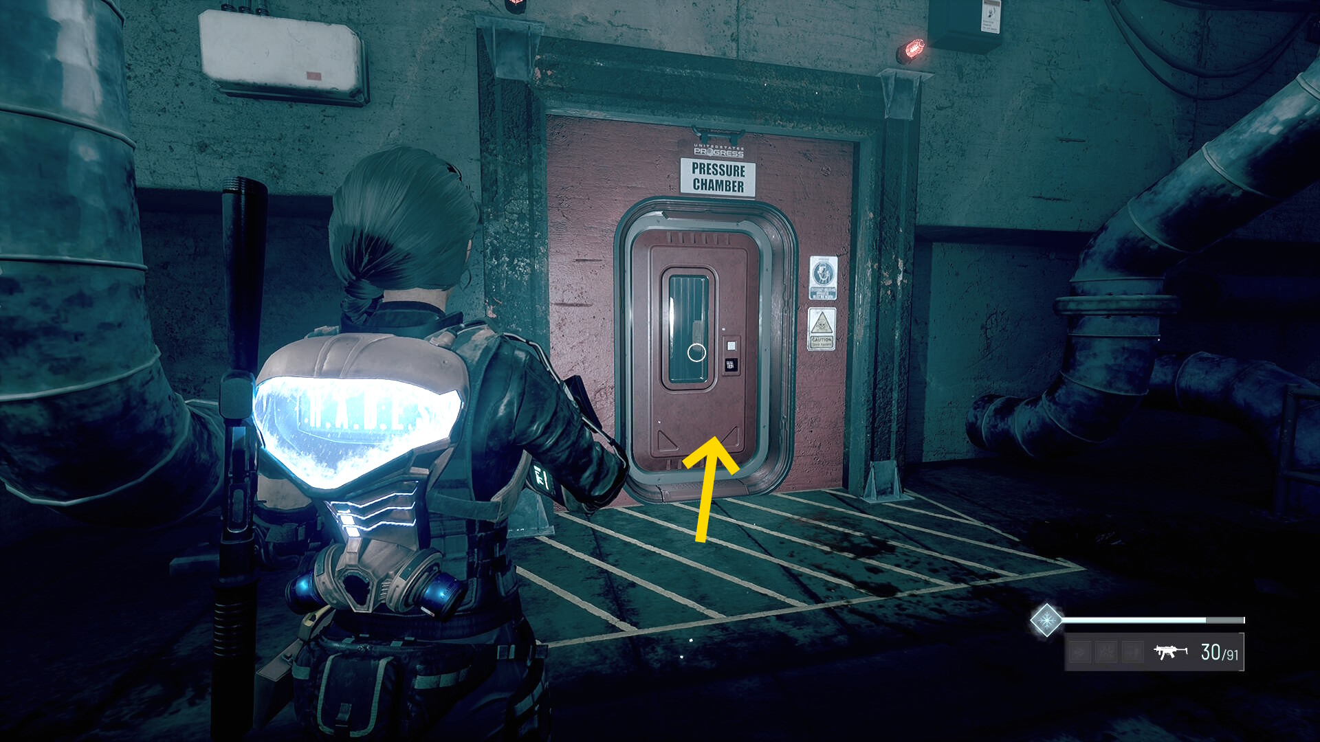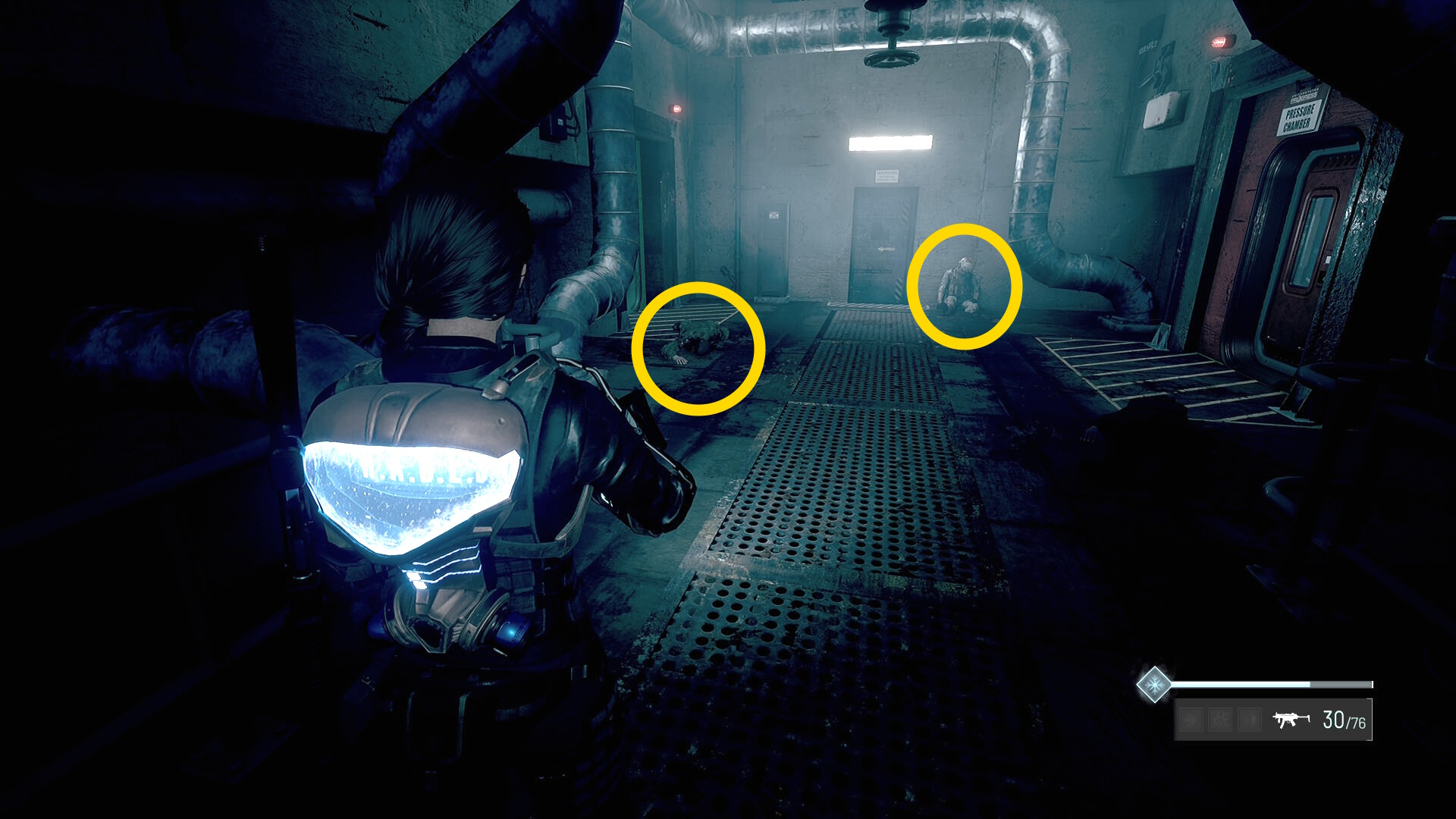 - 与圧室に入るとデコイが2体出現するので、すぐに引き返して廊下で2体を迎撃