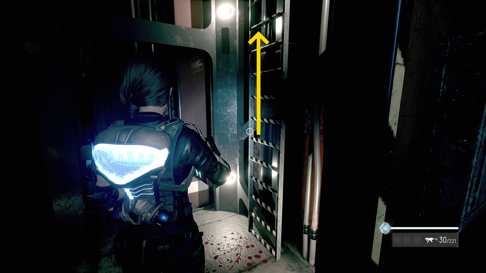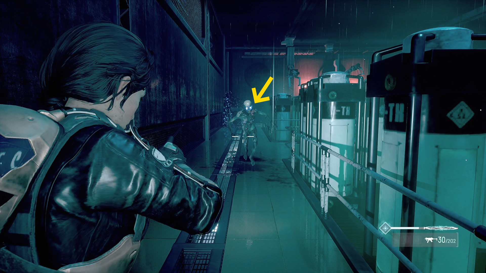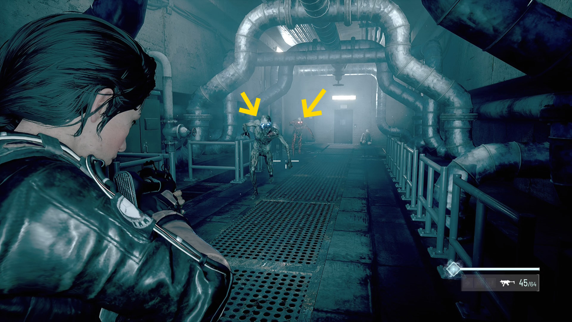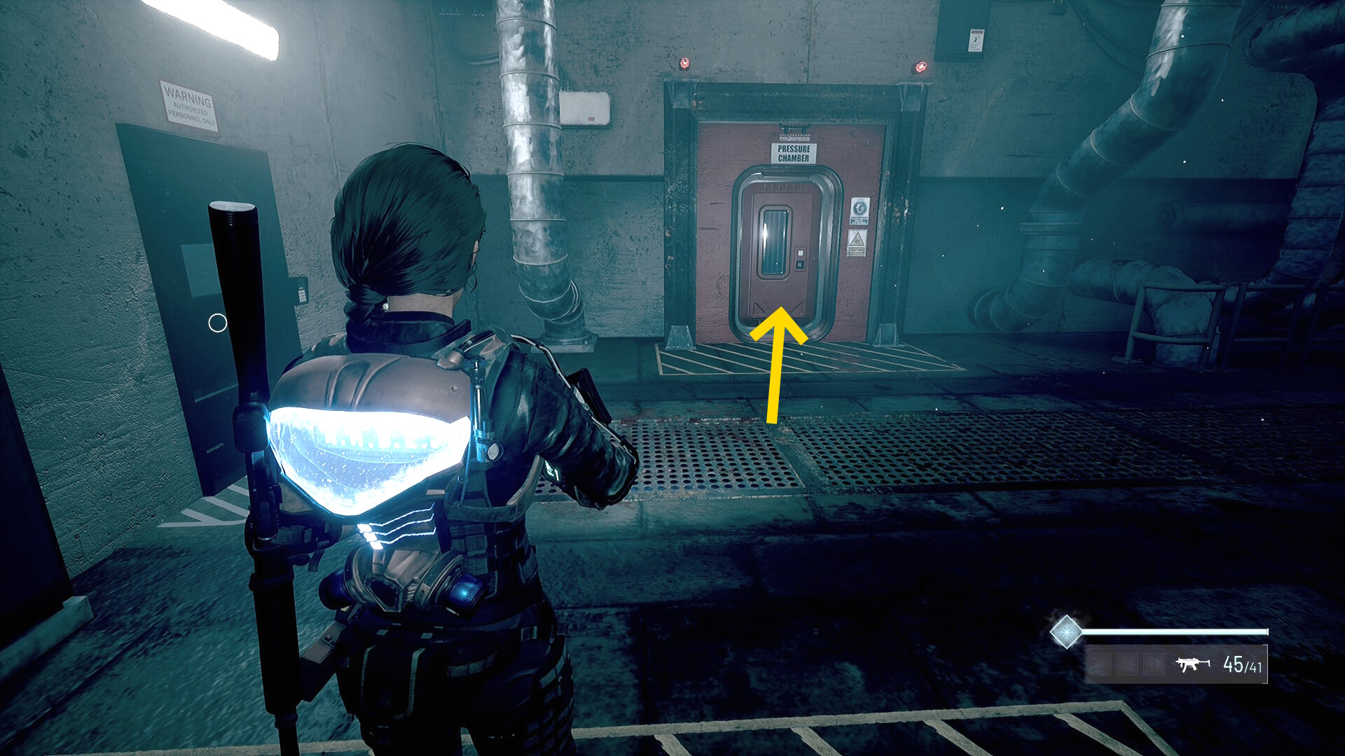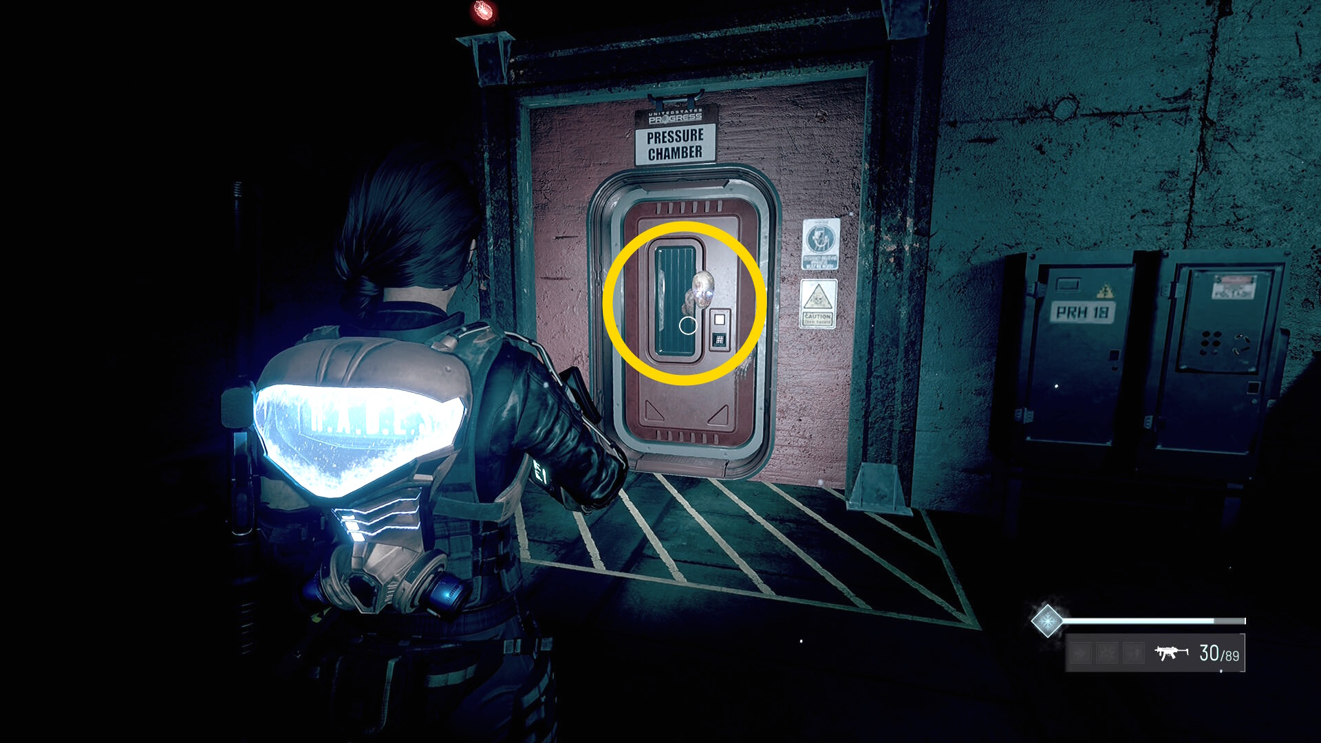 - 与圧室に入るとデコイが2体出現するので、すぐに引き返して廊下で2体を迎撃