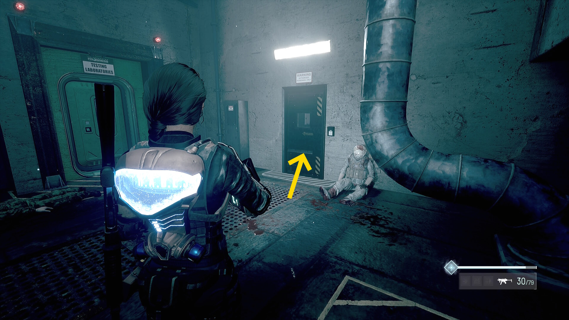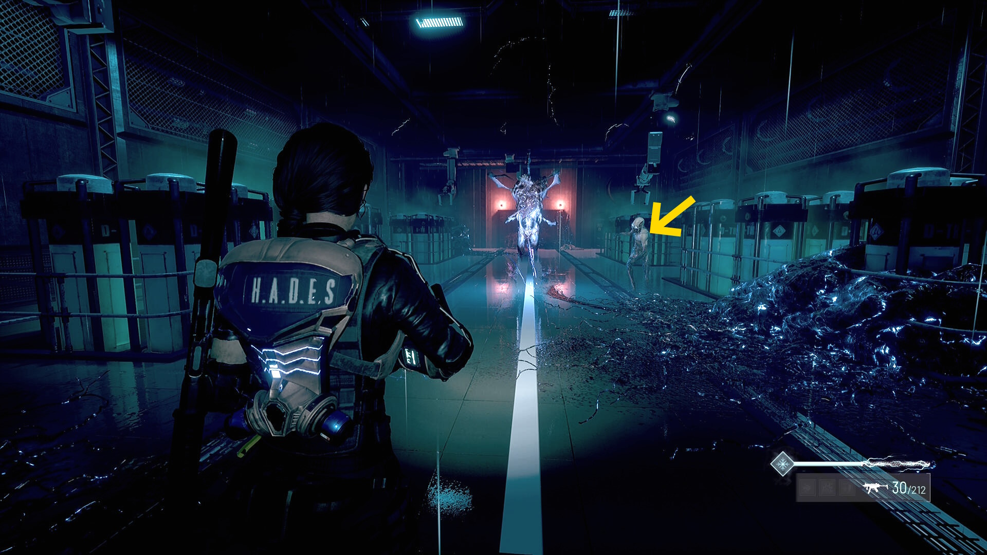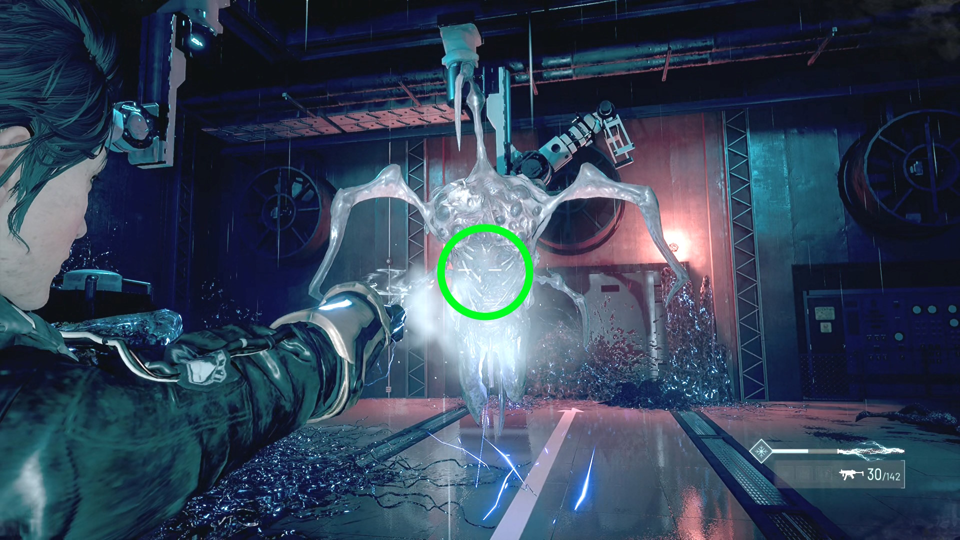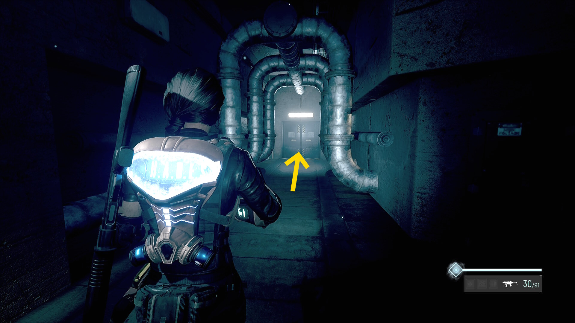- 与圧室に入るとデコイが2体出現するので、すぐに引き返して廊下で2体を迎撃