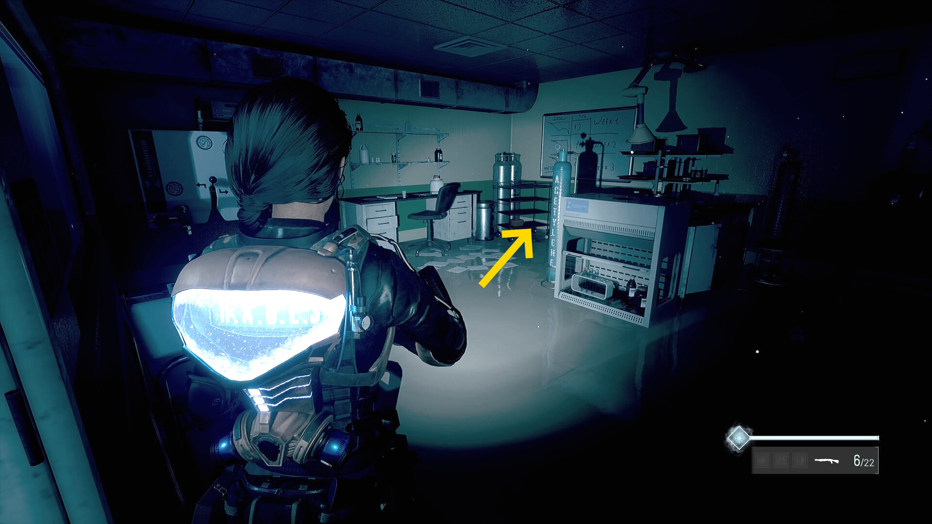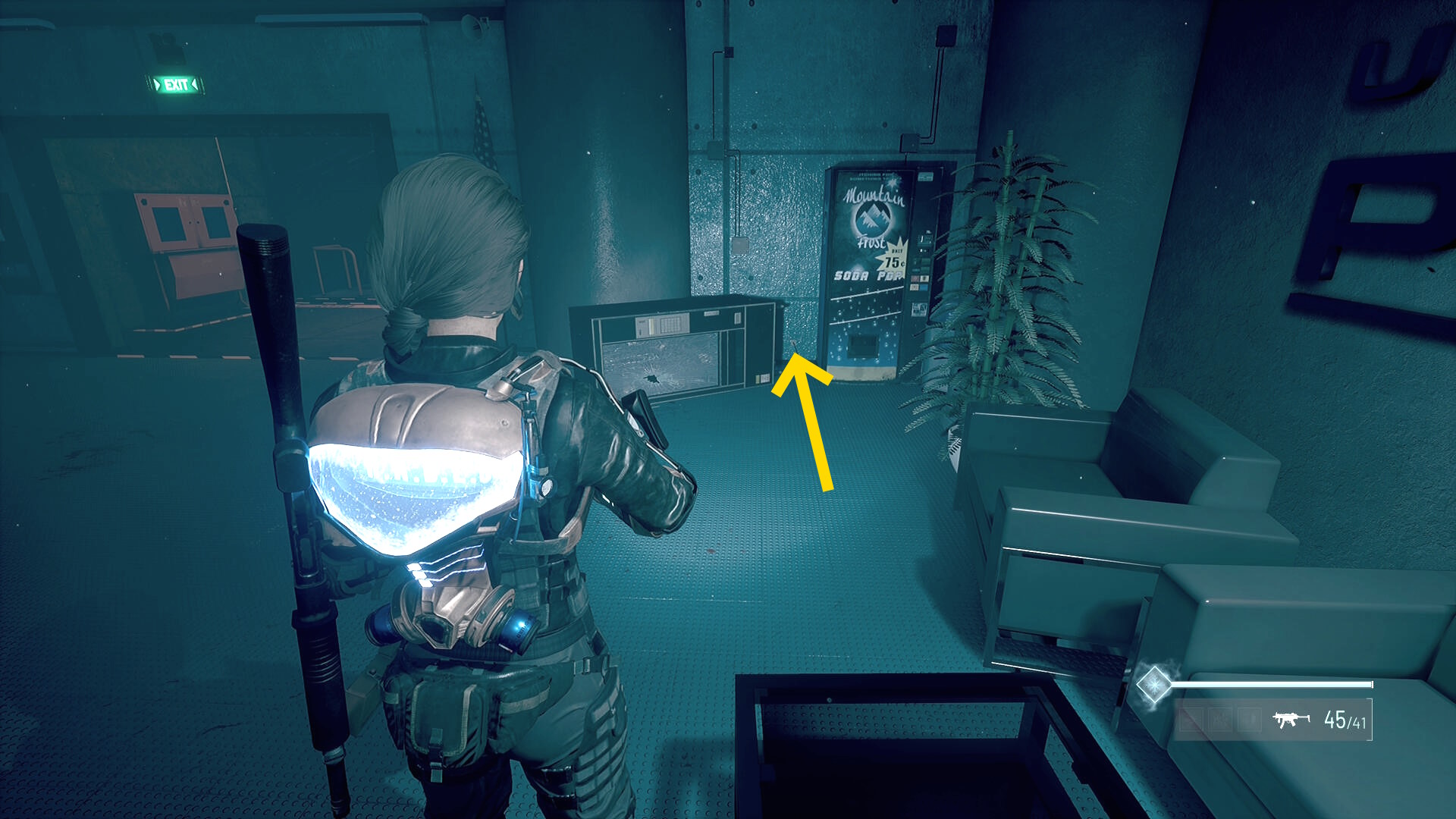 - 部屋の中には左の椅子に マシンガンの弾、右の椅子に フロストグリップ燃料カートリッジ がある