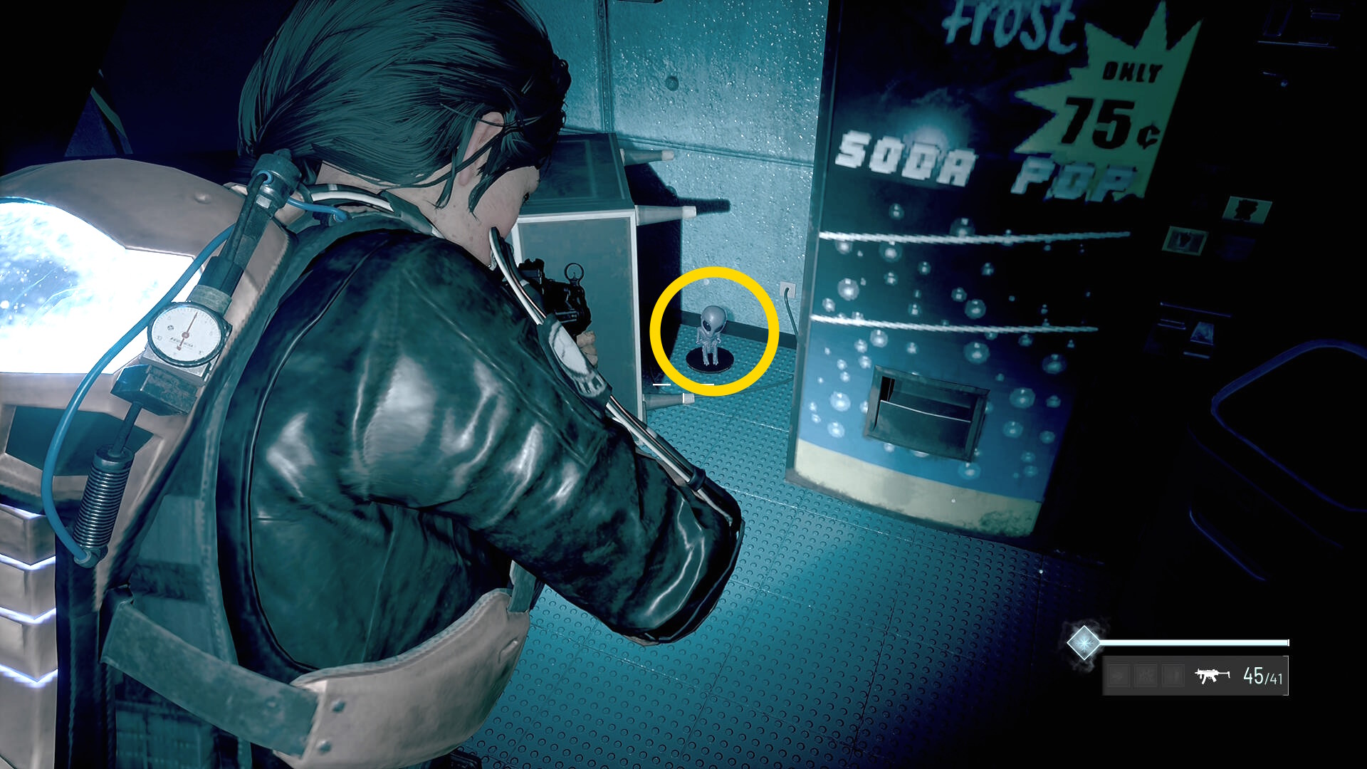 - 右奥の足元に扉が開いた戸棚があり、その中に ハーヴ(エイリアンの収集物:7/20)