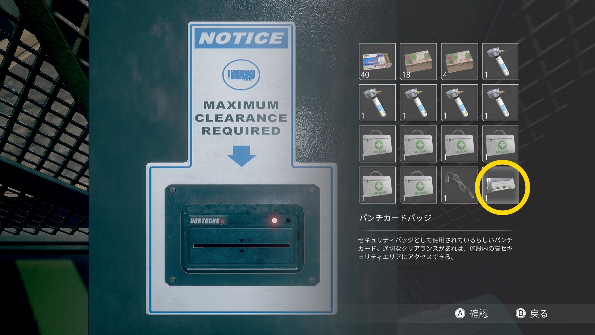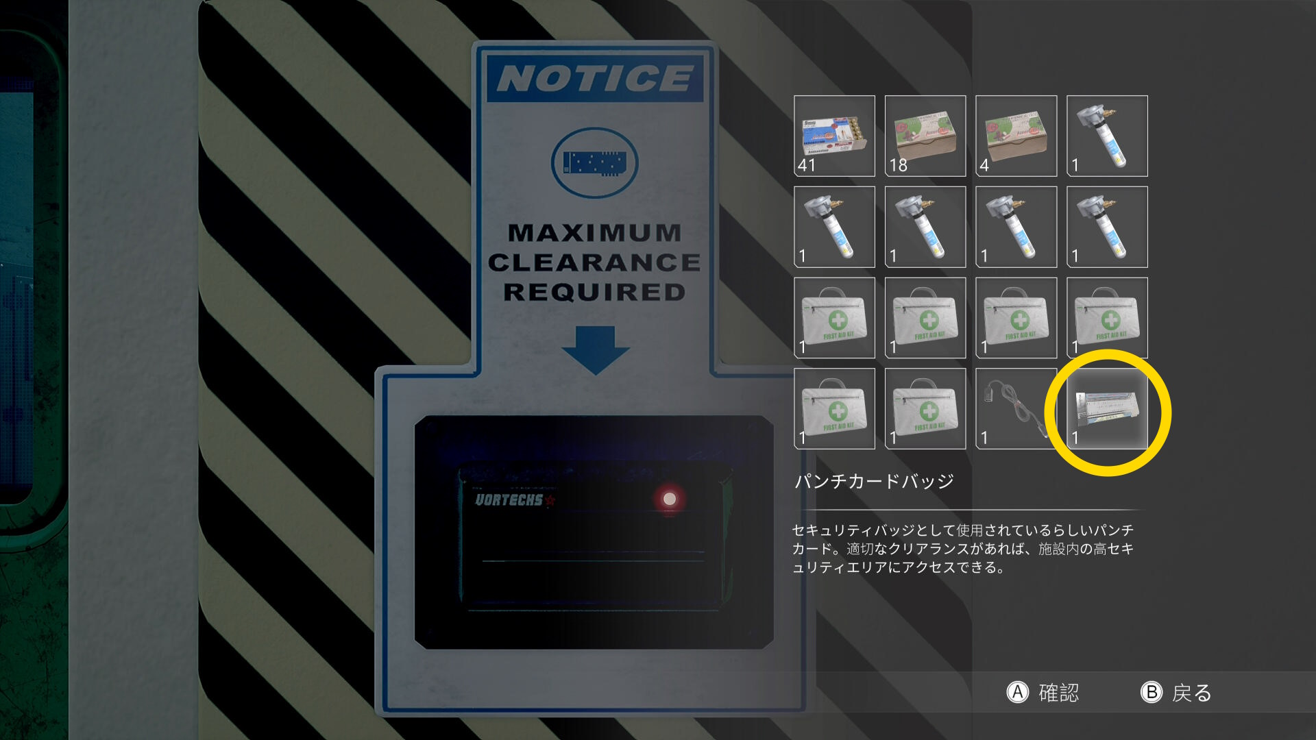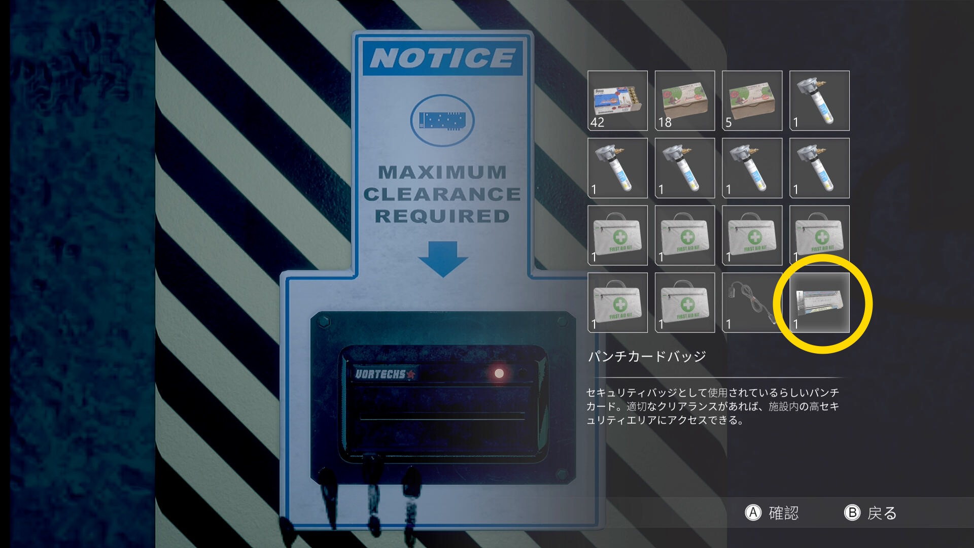- フェンス状ドアの右側、キーカードスロットから パンチカードバッジ を回収