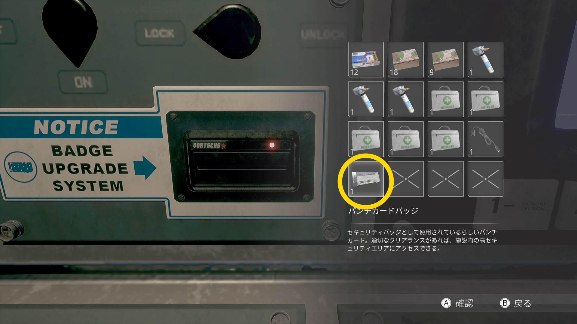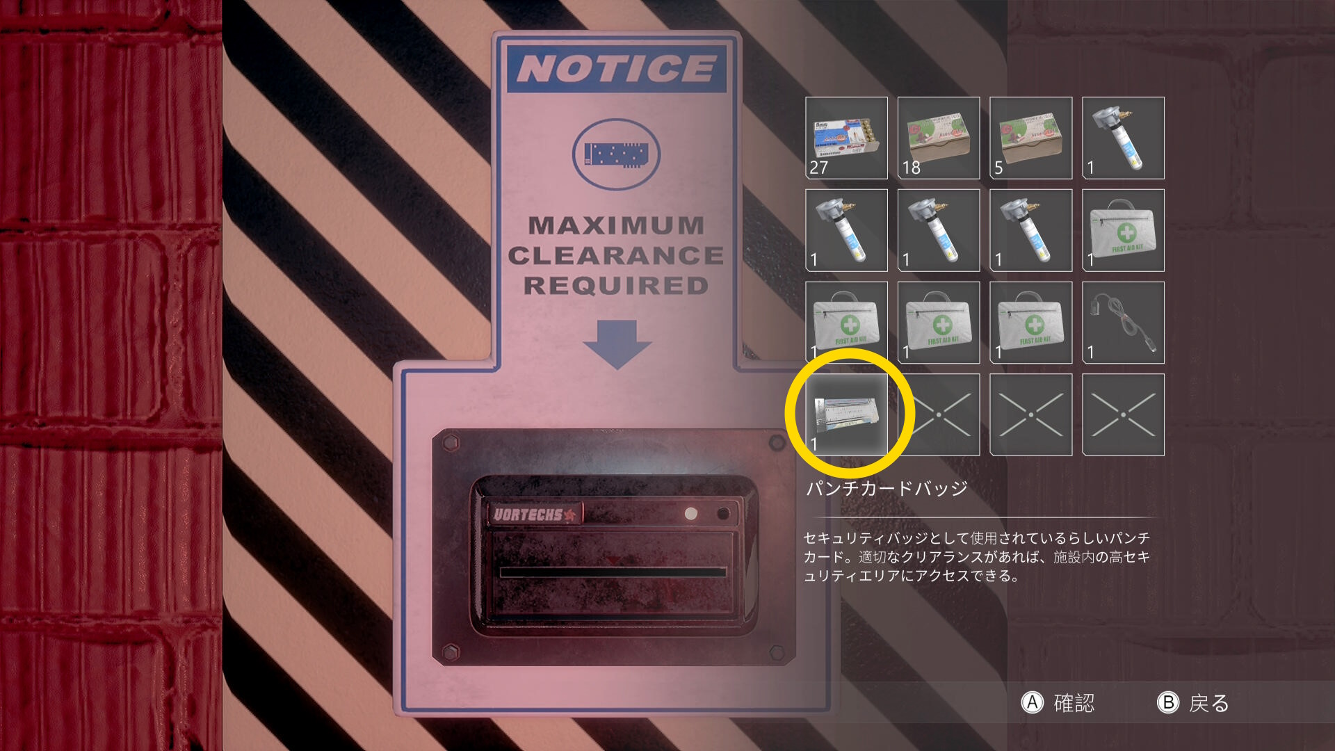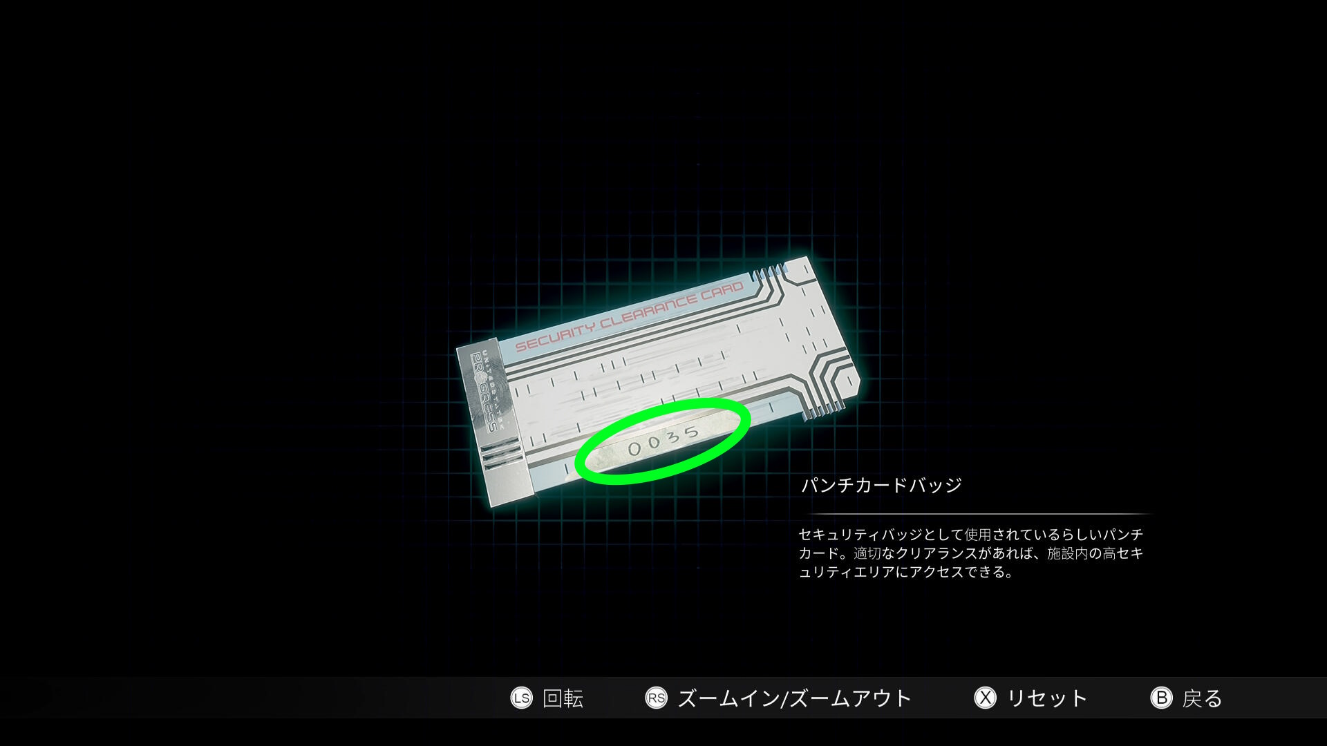 - フェンス状ドアの右側、キーカードスロットから パンチカードバッジ を回収