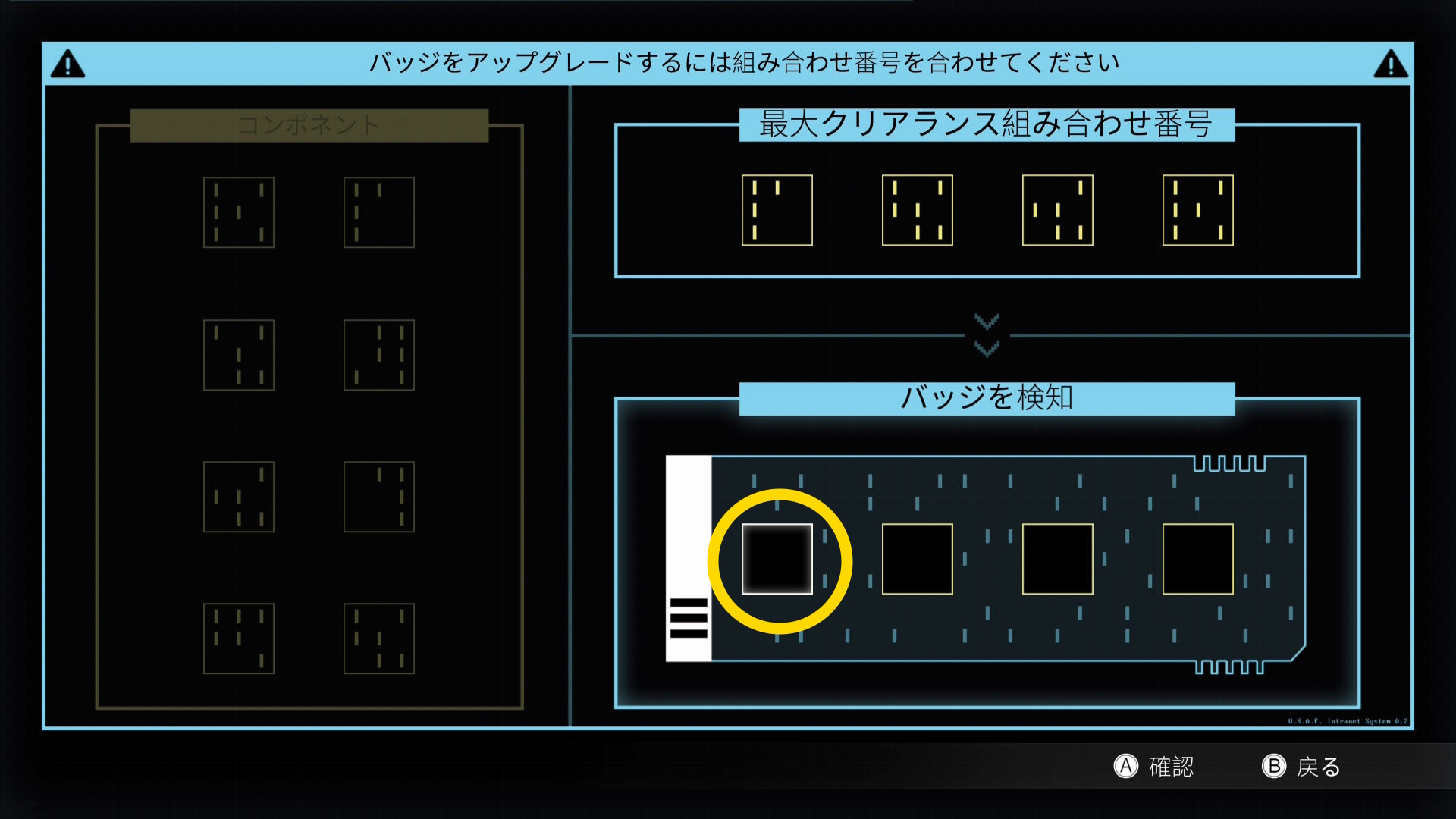 - 画面が替わり、バッジをアップグレードするには組み合わせ番号をあわせる必要がある
