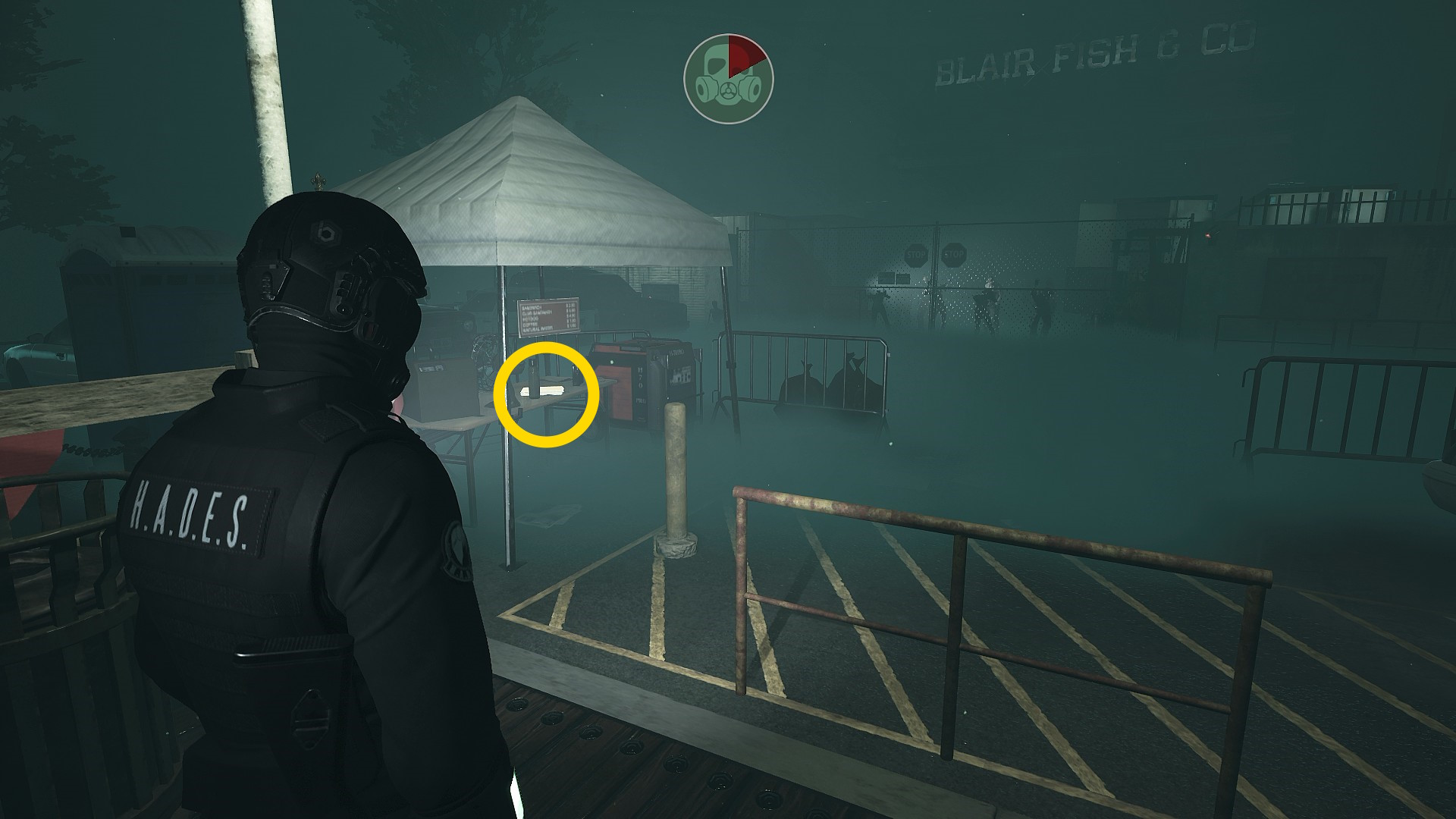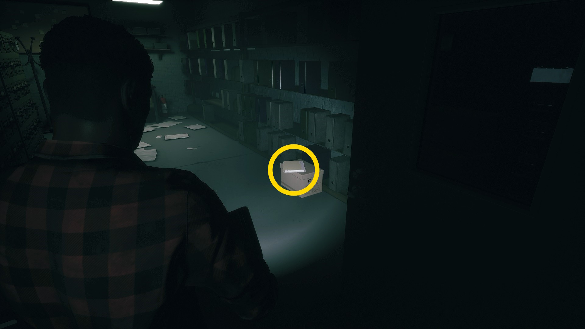 - 遺体安置所を出ると目の前の段ボール箱の上に Dr. Silberman Log(音声ログ:3/3)なお、右からゾンビ1体が来ているので注意