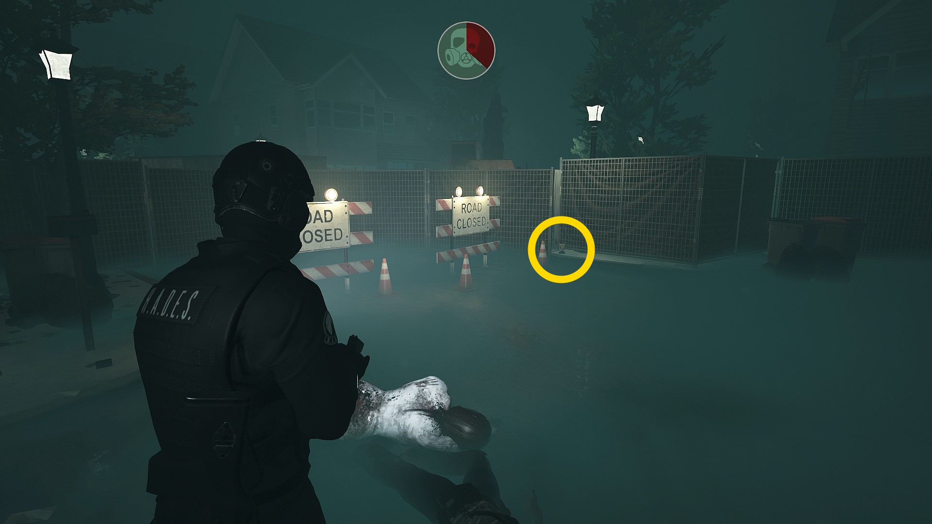 - 最終的には突き当り(バスが横向きになって塞いでいる)、左側の家に入るがゾンビが非常に多く、すべて対処しているとライフも弾薬も酸素も足りなくなるので、基本的にはゾンビは無視しながら進む
