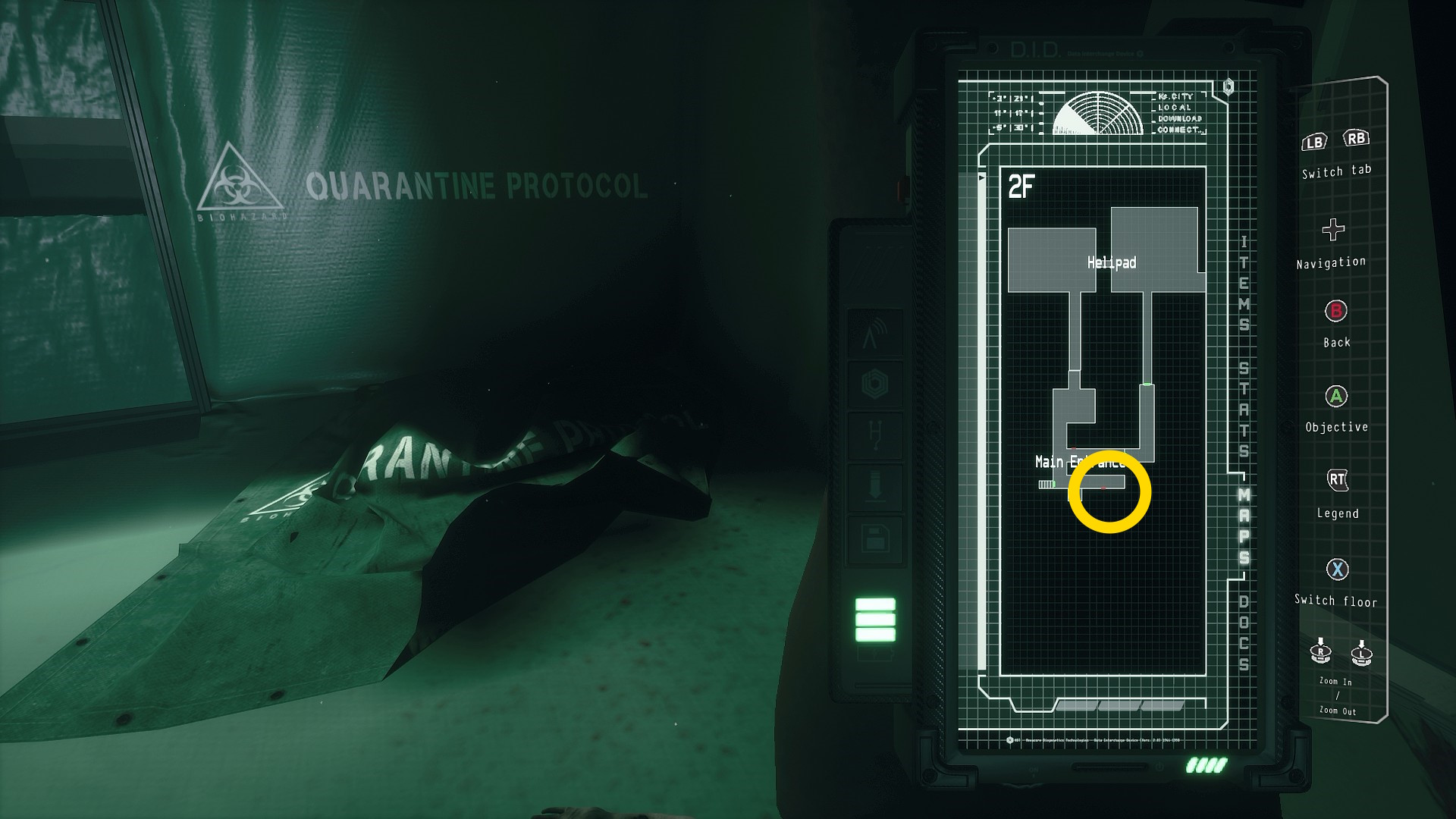 - 中に入り、すぐ右に Atherton 医師の死体があり、左腕から Dr. Atherton( ID タグ:2/2)を回収する