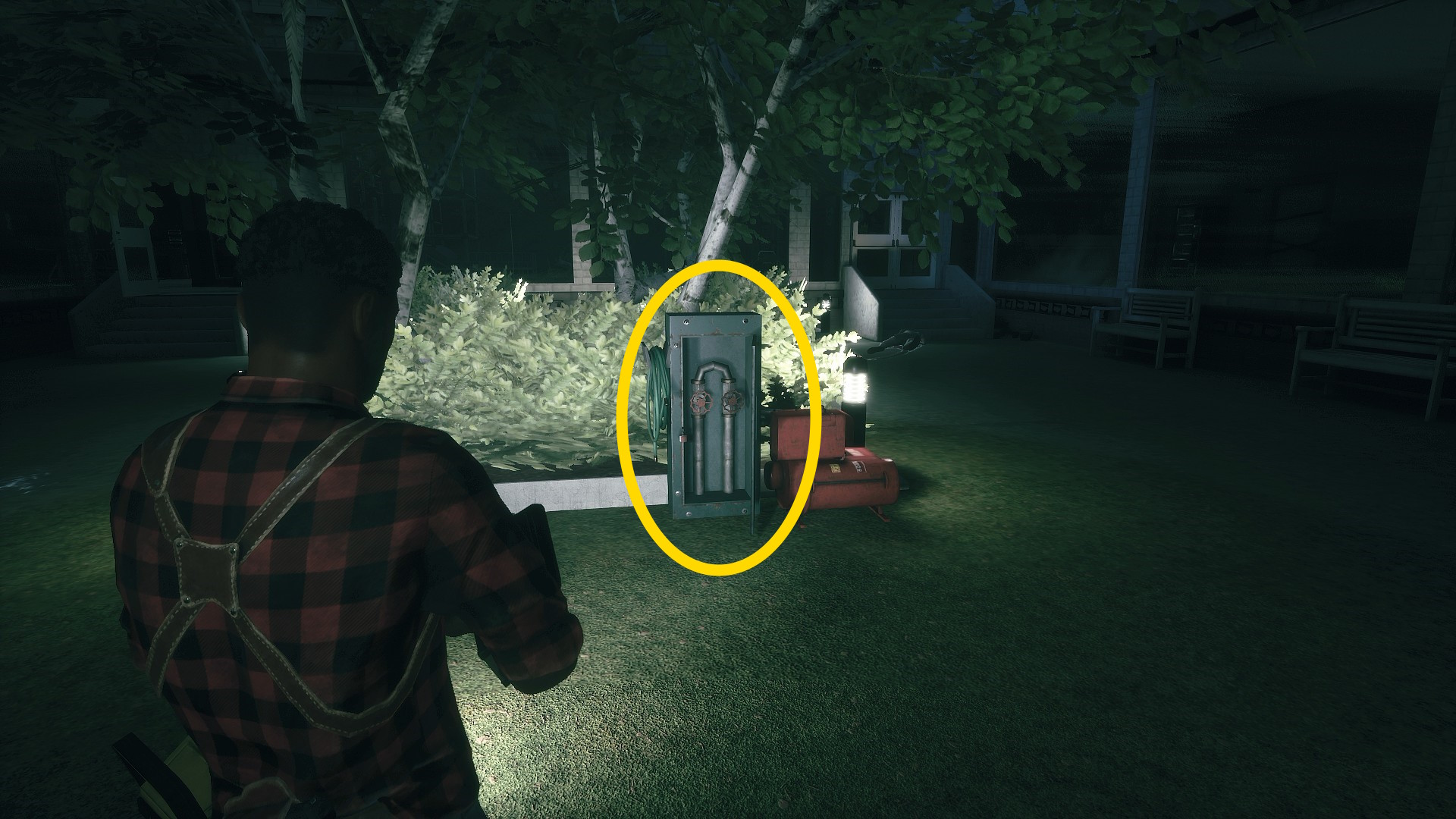 - 開始したら自宅の左側面を抜けて裏庭に出る(特に説明はないが十字パッド上で懐中電灯が点けられる)