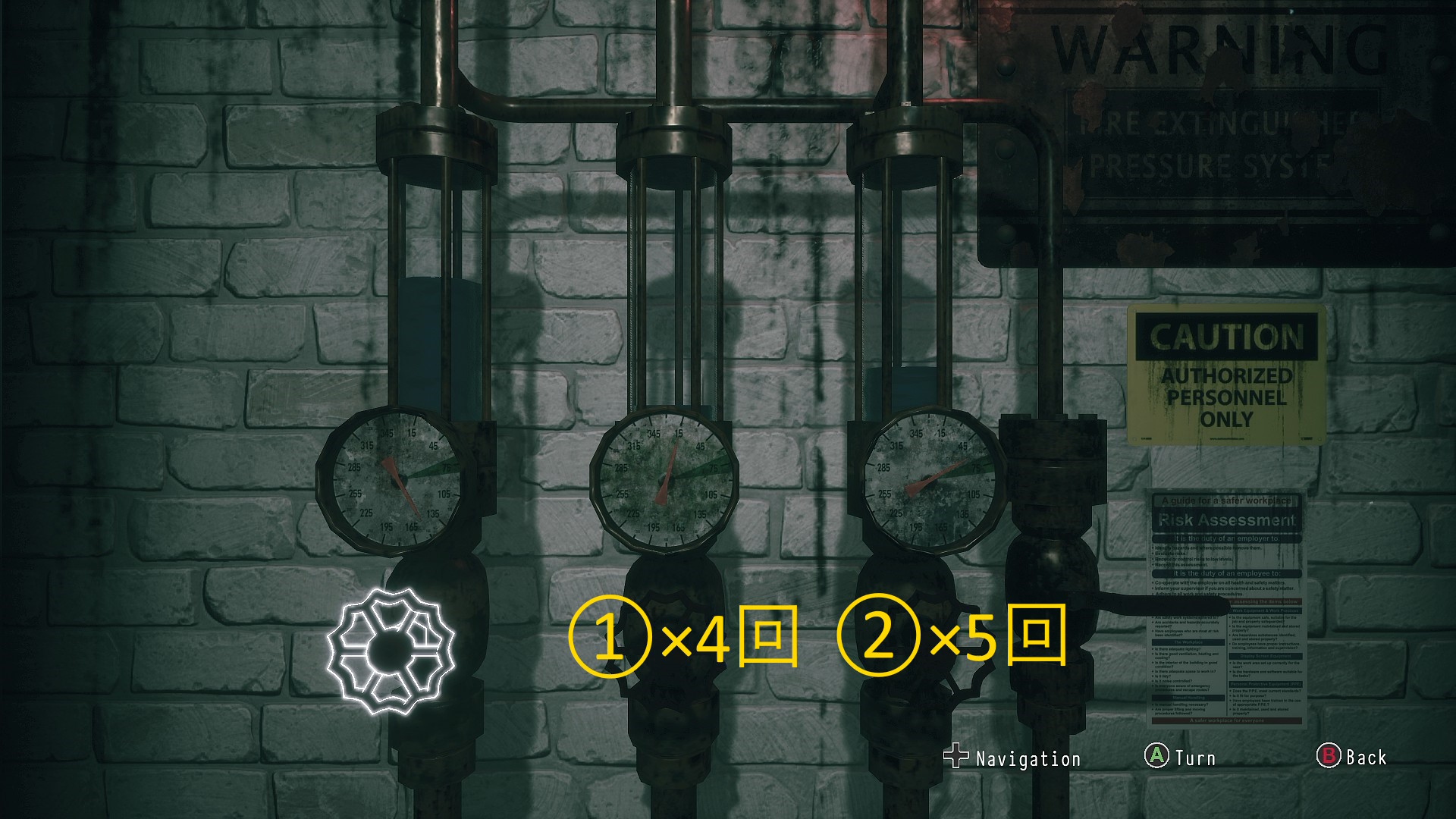 - ランドリーに入ったら右を向き、バルブを嵌めてパズルを解くことになる
