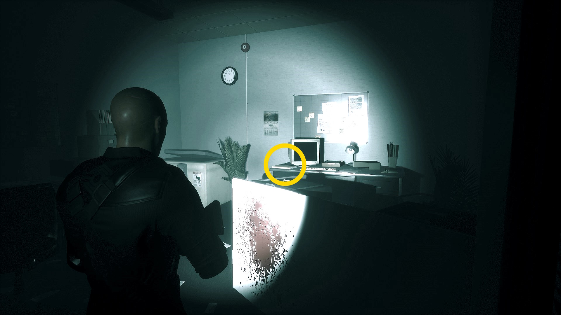 - Meeting Room を出たら左に進み、Supervisor Room へ。なお、その手前右側のトイレには洗面台に精神安定剤あり