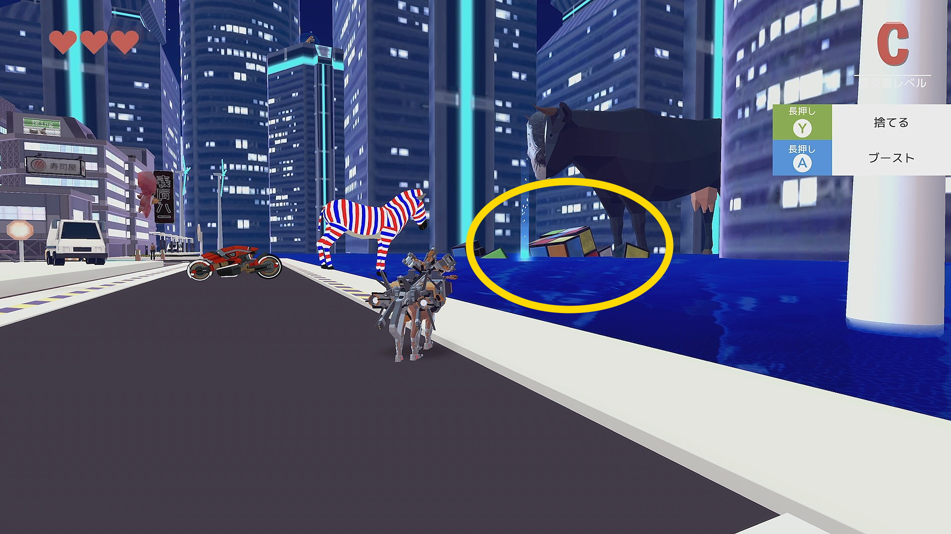 - 破壊を続けて、鹿災害レベルを A にしておく(イッヌのホログラムが出現するカットシーンを観ておく)