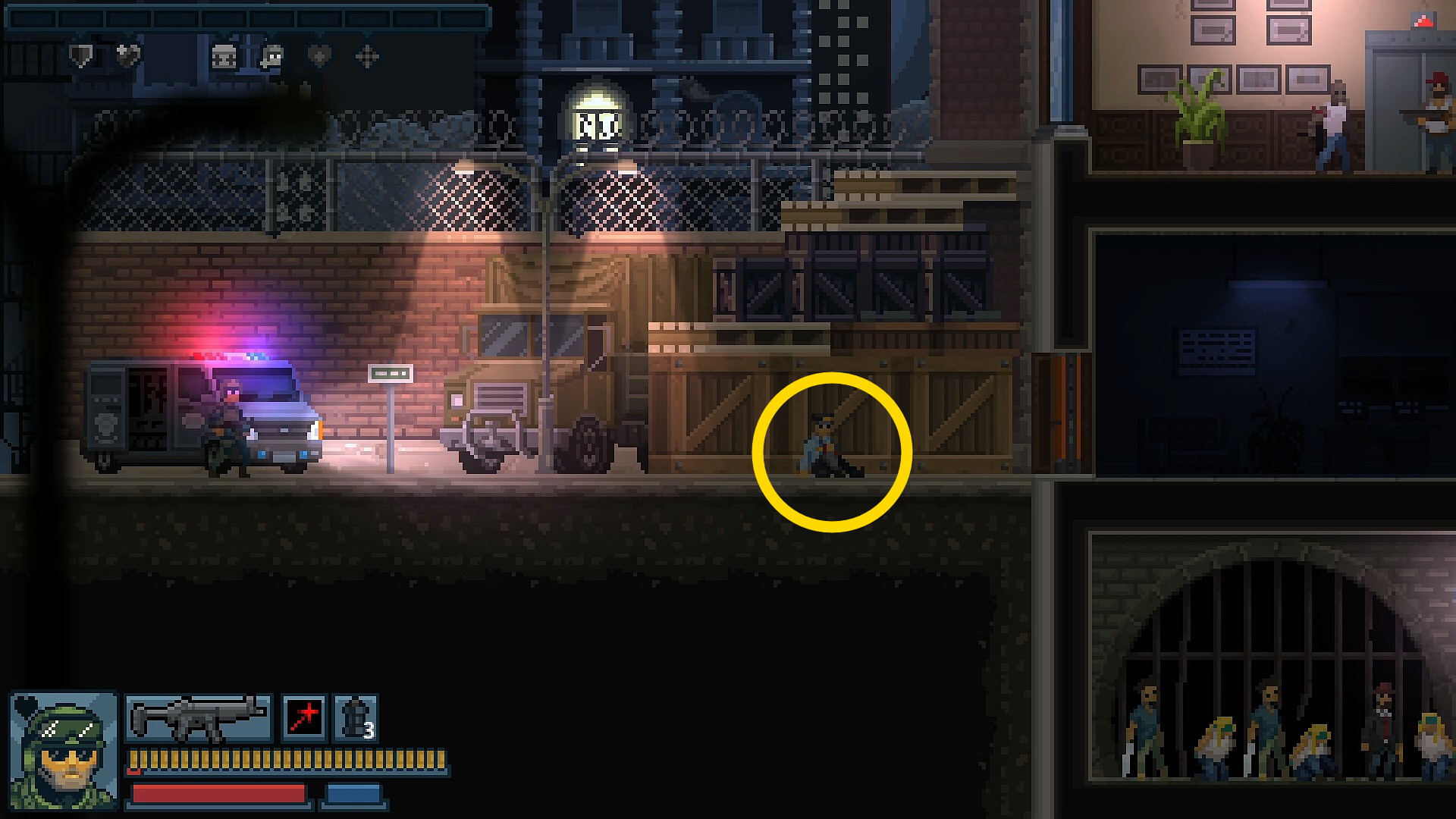 - 地下左側に足を踏み入れると鉄格子から3人の敵が出現(スナイパーサポートでハットらを始末したあと人質を解放しに向かう場合は注意)