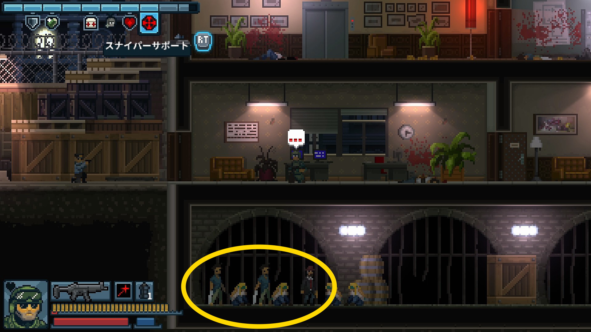 - 最上階の4人はスナイパーサポートで数を減らすと安全に制圧できる