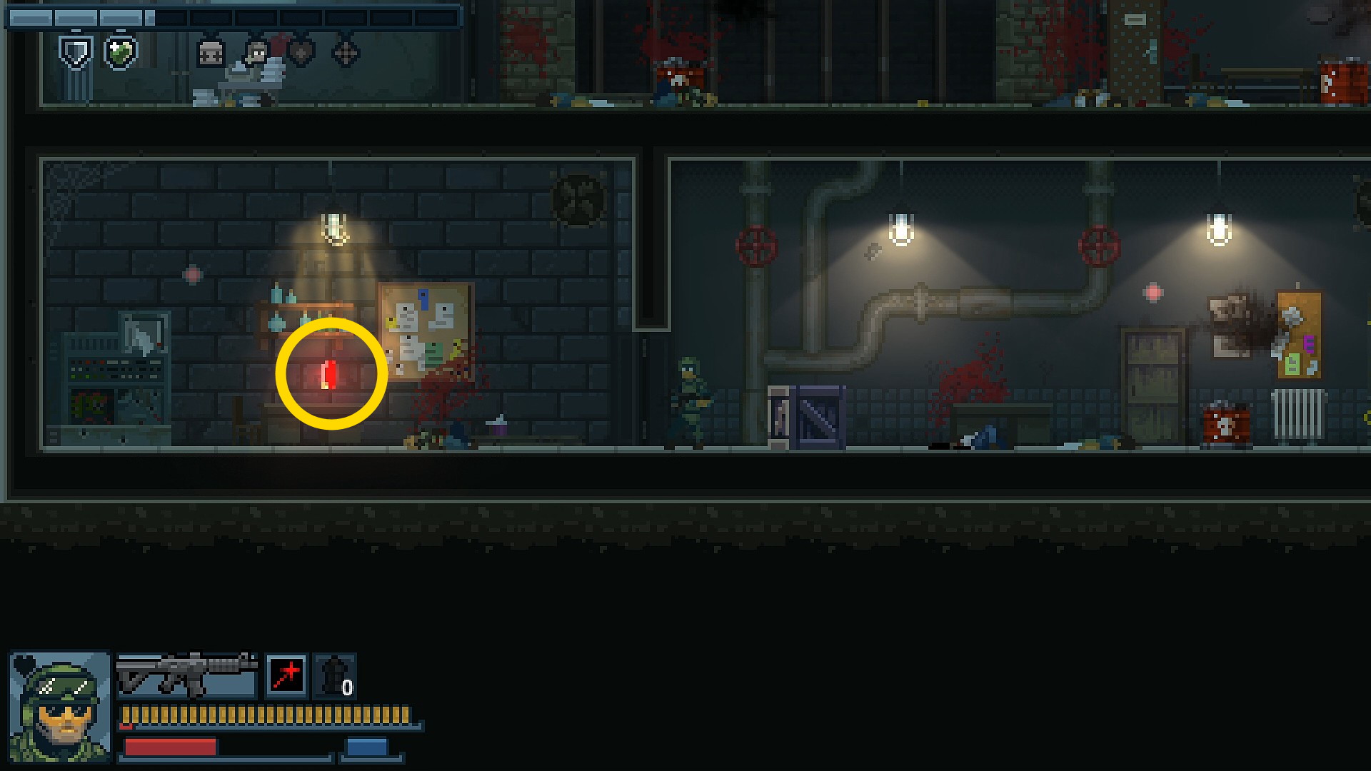 - カードキーを回収した帰り、パトランプが点灯するドア(全5箇所)からナイフ持ちと雑魚敵が1人ずつ出現するので注意