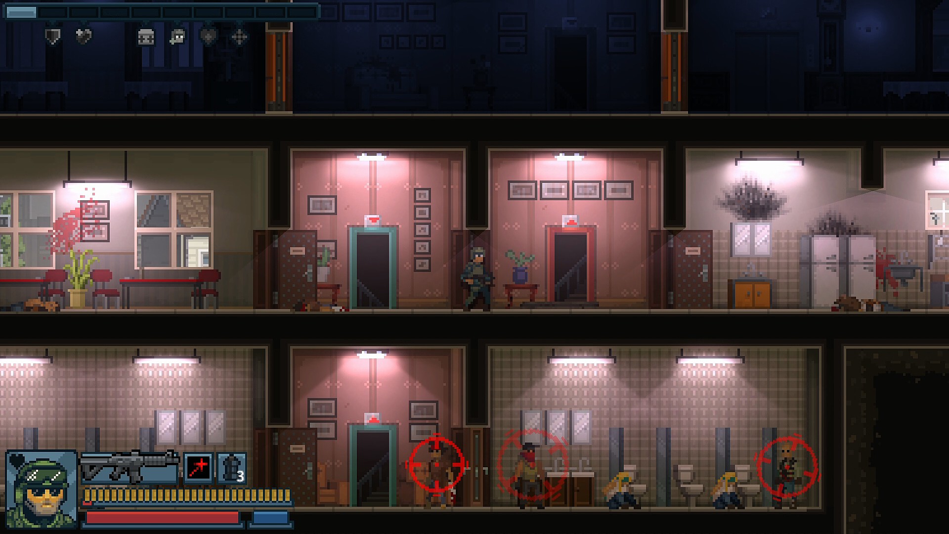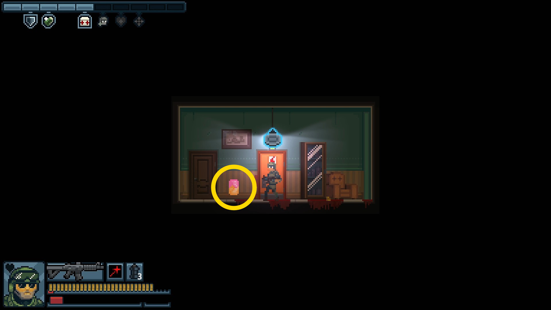 - 1階の敵を殲滅したら、地下の敵をスナイパーサポートで減らすとラクになる
